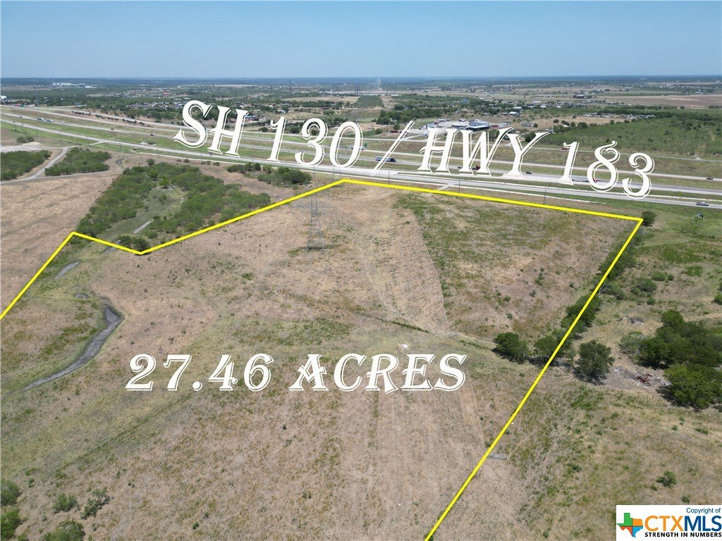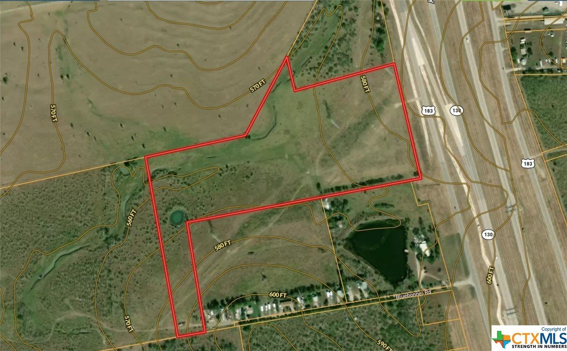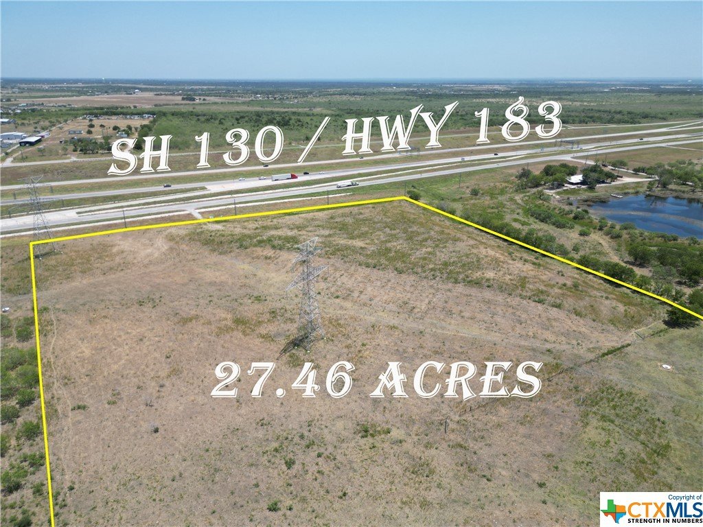 27.46 Acres on Hwy 183 S (SH 130) approximately 8 miles north of Lockhart. Near Hwy 21 and Hwy 183 intersection. 3 water meters and a driveway / entrance already in place. Outside of city limits and ETJ. Property slopes down towards the back, but has a nice level (5+/- acres) build site at the front along the highway that is perfect for your commercial or industrial uses. Approximately 20 min drive to Austin / ABIA, Tesla, and 30 min drive to San Marcos or Bastrop. Adjacent property to the south also available for sale under a separate listing.