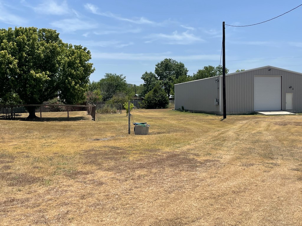 Awesome property on half acre lot with 40 x 60 custom metal building with 2 lift doors, one on each side. This 2400 sq. ft. building is 14ft on the sides and 20ft in the center. Building has upgraded metal beams and is also insulated. What a great space for a Barndominium, storage, RV, boat, or possible business use.(check city zones). Bathroom in place with a shared Sump pump with adjacent properties to access city sewer. City water available but needs its own meter. Property is fenced to back. Huge shade tree on the side. Quiet peaceful neighborhood. Amazing property with so much potential!