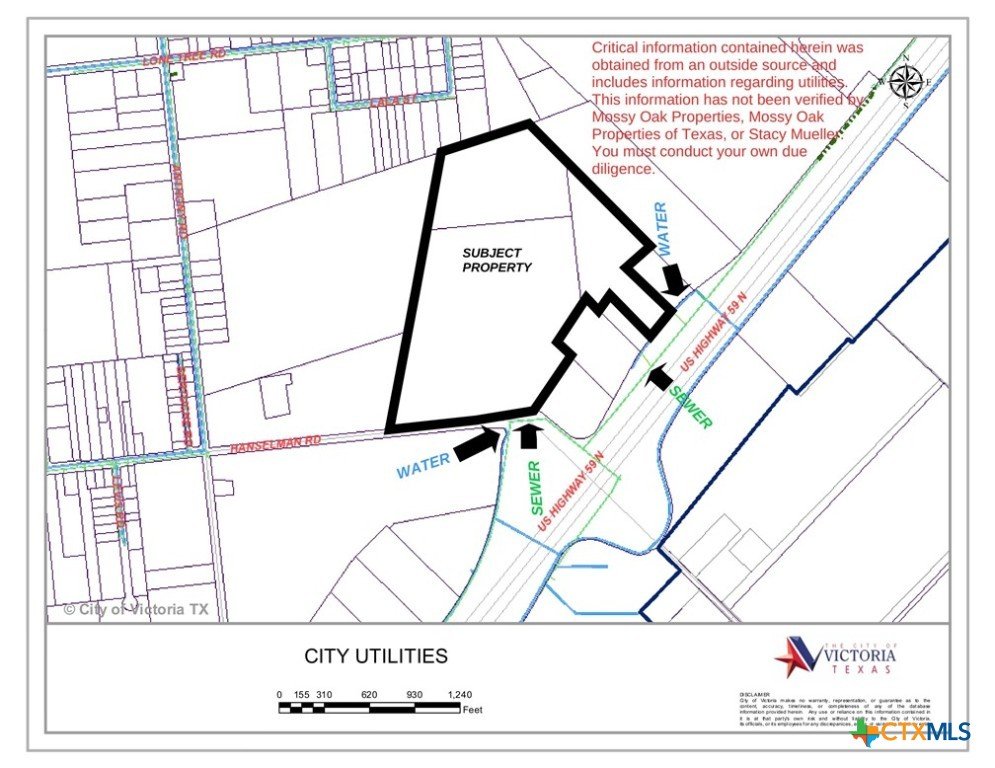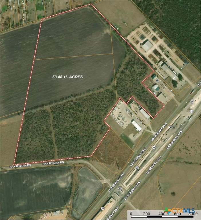 **PRICE ADJUSTMENT** This expansive 53.48 +/- acre parcel of prime land in Victoria, Texas, presents a unique and valuable opportunity for commercial development. With outstanding visibility and direct access to both US Hwy 59 N and Hanselman Rd, the property benefits from high-traffic exposure, making it ideal for a range of commercial ventures. The land boasts significant road frontage and easy ingress/egress, positioning it perfectly for retail, industrial, or mixed-use development (subject to zoning approval). Currently 90% cleared and level (with active farming in place), this property offers a near-ready canvas for development with minimal preparation required. Its strategic location places it within close proximity to key commercial centers and growing residential communities, ensuring strong potential for future growth. City utilities are available at the property lines, further enhancing its development appeal. With no existing structures, the property is ready for immediate development or investment, making it an excellent choice for developers or businesses looking to expand in this rapidly growing area. Additionally, the proximity to major transportation routes makes it an attractive option for logistics, distribution, or manufacturing operations. Seize the opportunity to invest in this high-visibility, high-traffic location, offering easy access to major highways and significant exposure to passing traffic. Whether you’re looking to build or invest, this property offers limitless potential in one of Victoria’s most promising and accessible regions.