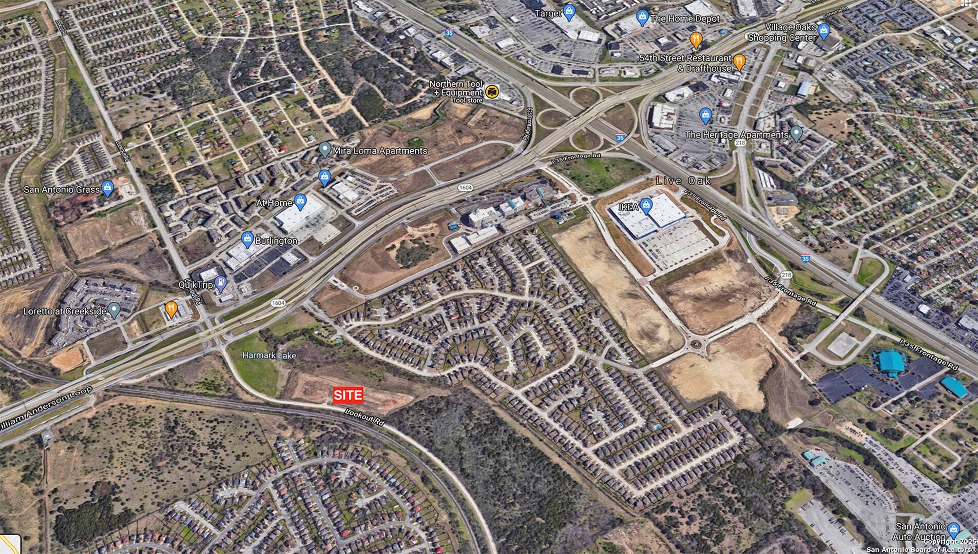 Prime commercial lot available for sale in the City of Live Oak; behind the intersection of Loop 1604 and Lookout Rd. This is of the last large pieces of undeveloped land in the City of Live Oak. 9.1 acres behind the intersection is available immediately for sale. This land is ideal for Multifamily development and will accomodate 22 units per acre for R-5 zoning (Apartment/Multifamily). Per city of Live Oak, Multifamily housing is allowed in a B-3 zone through a specific use permit or through a rezoning to a planned unit development, the density can be allowed to increase from 22 to 25 units per acre. Additional benefits are that the new owner will get rights to use the 12.1 acre drainage easement next to this site that can be used for hiking trails, greenbelt, and should help with water detention and development. Prospective buyers should retain an independent engineer to verify the location, accessibility and capacity of all utilities. The site is located just minutes from Live Oak Town Center at the high-traffic NE San Antonio intersection of Loop 1604 and IH-35, surrounded by major draws including South Texas' only IKEA, RBFCU, and The Forum at Olympia Parkway. The area features strong demographics with a population of over 200,000 and average household income above $79,000 within a 5-mile radius, along with 110,000+ vehicles per day on Loop 1604 and proximity to top national retailers; the property also includes access to a 12.1-acre easement for recreational use.