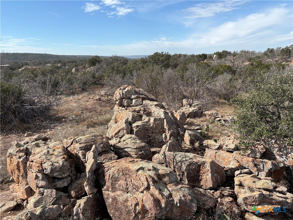 VIEWS GALORE! Hill Country acreage with granite outcroppings offers rugged beauty, featuring granite boulders amidst native oaks trees and rolling terrain, providing spectacular panoramic views of Packsaddle Mountain and Inks Lake. A blend of wooded areas and grassy draws create a unique recreational or residential paradise near all of the Highland Lakes, wineries, taverns and much more.