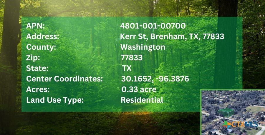 Located in the heart of Brenham, TX, this 0.33-acre residential lot on Kerr St offers a fantastic opportunity to build your dream home or invest in a growing community. With close proximity to city parks, local attractions, and essential amenities, this property combines convenience with small-town charm. Don't miss out on this well-located residential lot in Brenham, TX. Contact us today to learn more or schedule a site visit.