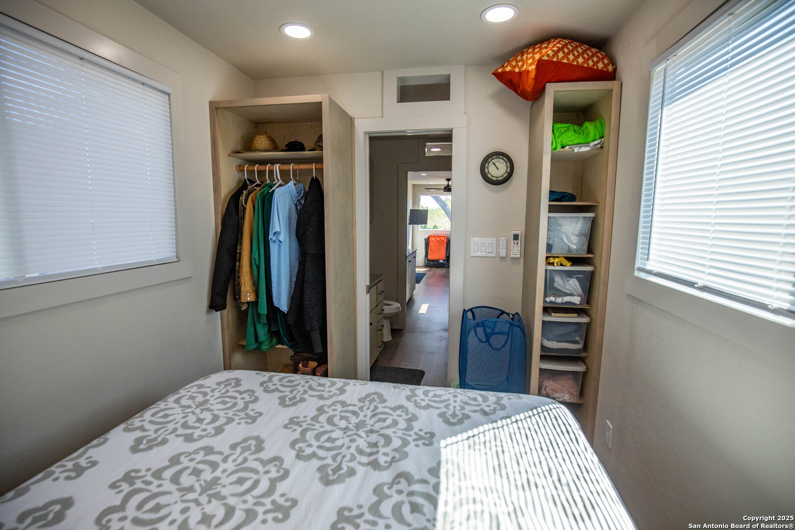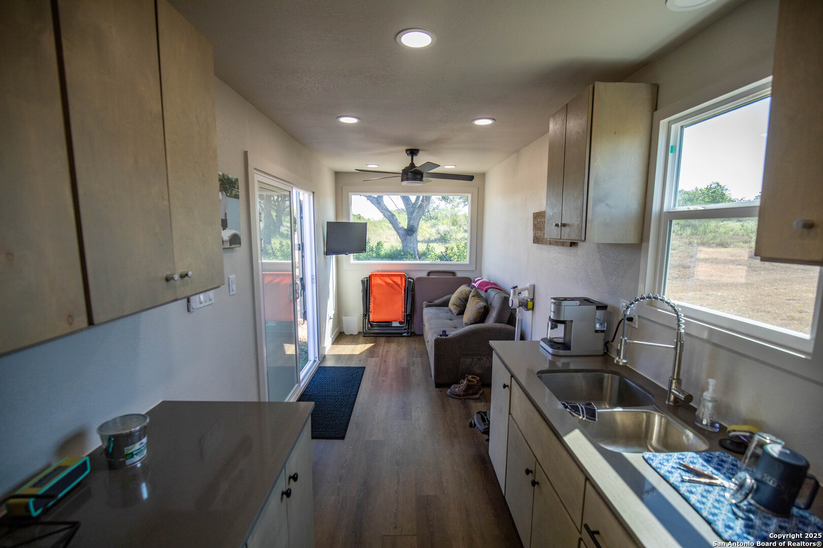 Spanish Moss Oak Ranchito is 109.03 acres of oak-covered Texas countryside with a turnkey setup for ranching, hunting, or weekend escapes. Located on Stratton Road between Cuero & Yoakum in DeWitt County, the property features ancient live oaks, post oaks, cedars, and dense underbrush that provide excellent wildlife habitat. Strong perimeter fencing, a stock tank, native grasses, and a seasonal creek in the northwest corner support both cattle and game. Improvements include two fully finished container homes with bedrooms, showers, TVs, mini-splits, and unique touches, such as a bay window and a rooftop viewing deck. A brand-new water well and wellhouse, along with electricity and a meter, are in place, and the property is WiFi-ready (Starlink-capable). A luxurious hunting blind and two easy-fill corn feeders also convey. Spanish Moss Oak Ranchito offers direct road frontage yet remains private and secluded. Ag-exempt with sandy loam soil, abundant shade, and thriving wildlife, it's ready for immediate enjoyment. Community: Nestled between Cuero ("Turkey Capital of the World") and Yoakum ("Leather Capital of Texas"), the area offers small-town charm, local dining, shops, museums, rodeo events, and essential services. San Antonio, Austin, and the Texas Coast are all within easy driving distance. **Minerals:** Owns partial. None convey.