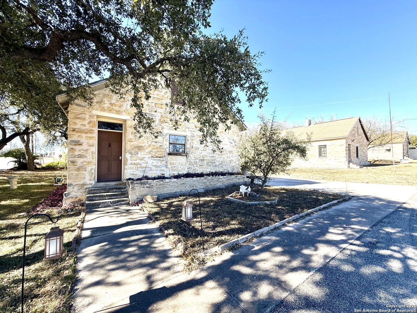 Located in the gated community of the Historic Fort Clark Springs, feast your eyes on this 1886 immaculately remodeled property that was once the mess hall for the US Cavalry of Fort Clark. The recently repointed 18" thick limestone exterior offers superior insulation for the southwest Texas summers. As you enter you are greeted with an open floor plan that boasts a stunning remodeled kitchen with custom cabinets and solid quartz counter tops amongst a newly installed large kitchen island. The properties recent updates consist of newly constructed interior walls, tongue and groove flooring throughout and updated bathrooms and plumbing. Along with the 2 additional bedrooms the master-suite is a luxury of its own. High ceilings, deep jamb depth sun windows, a separate seating area or office space and a prime large walk-in closet are just a few of the key points of the space. There is a large storage room located off the back of the master as well as an additional one located off the very back of the home. The attic space has the potential to also be a separate living area that could make for a loft or guest space. This property would make for a wonderful family home or a prime investment for a vacation spot for the returning hunters, bird watchers, historians, etc. The large patio slab and green space along the exterior is a perfect addition for an evening sitting by the fire and enjoying the surroundings of all the Fort has to offer. The 9th largest spring fed pool in Texas, an 18-hole golf course and clubhouse, a plethora of hiking and biking trails, the Las Moras creek, a 24-hour fitness center are just a few of the amenities Fort Clark Springs has to offer. Schedule your showing today for this beautiful gem!