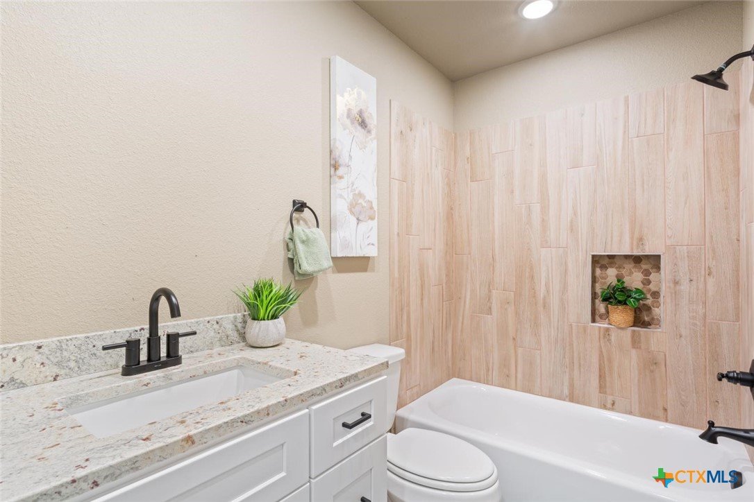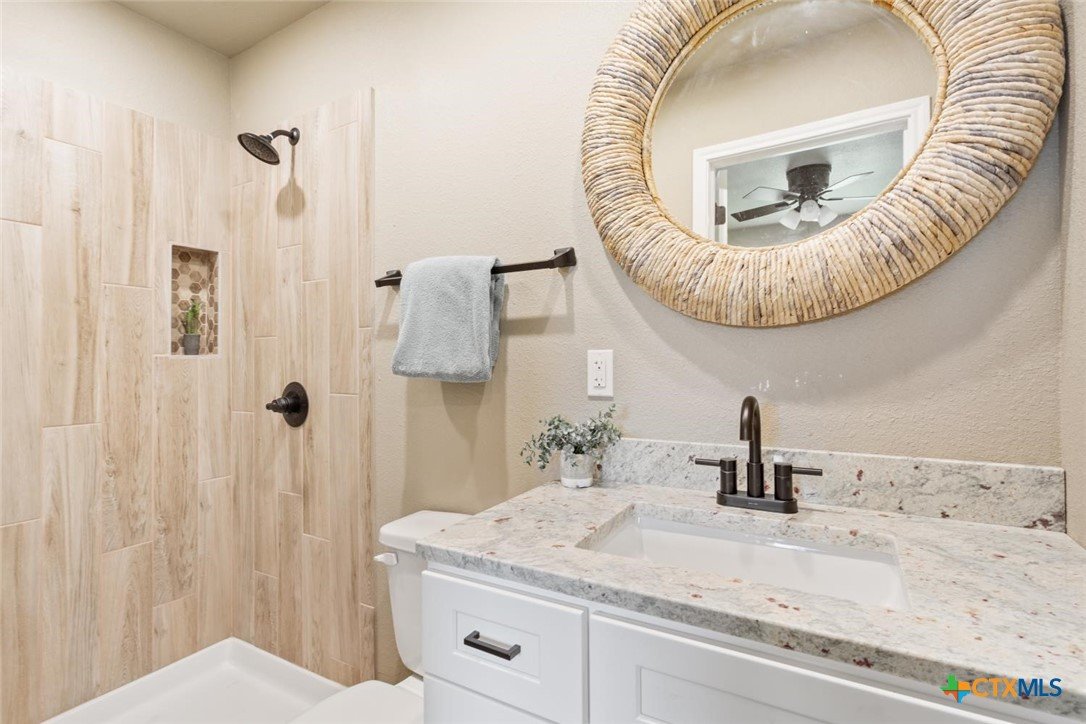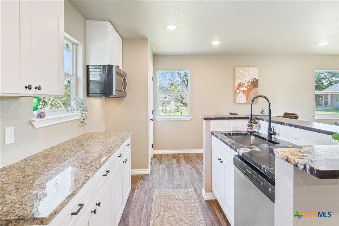 Belton ISD. This new/rebuilt construction has great amenities. 3/2 plus a storage building. Outside the home has a great back deck and giant covered front porch. This home is on a corner lot. The kitchen features granite counters, custom cabinets, range, dishwasher and microwave. Home has no carpet. The windows are all new vinyl. Nice shower and tub/shower combo with ceramic tile. This home is in a great Morgans Point location.