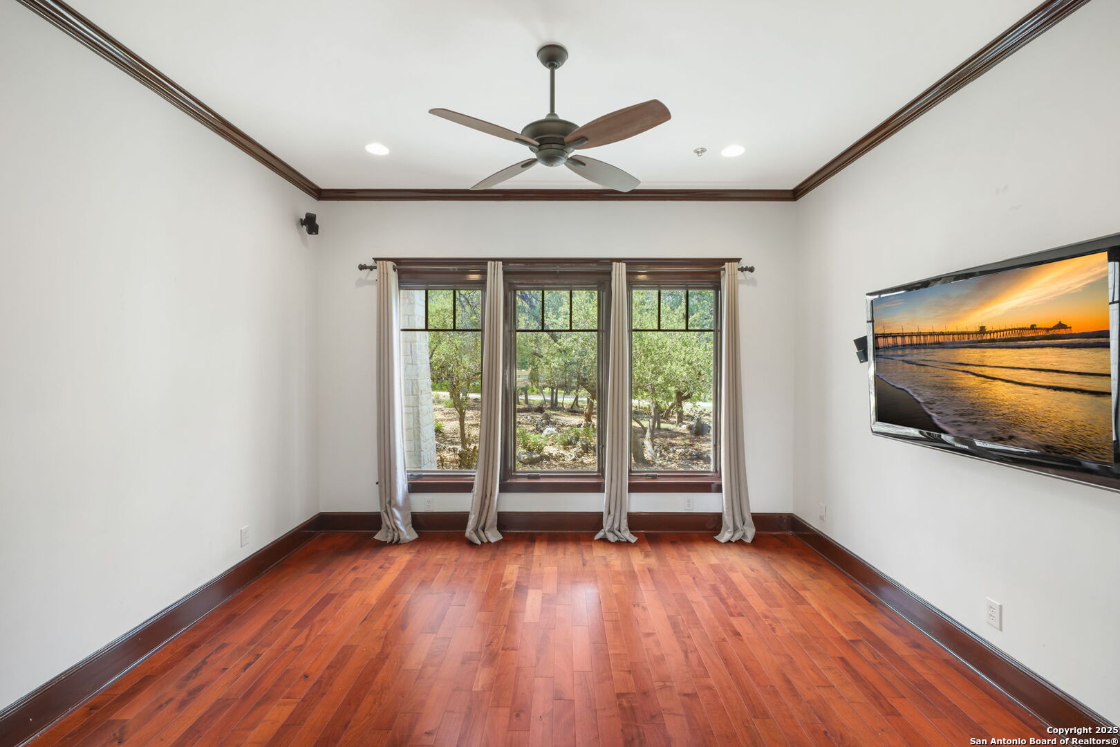 For those who appreciate refined design and exceptional woodwork, this one owner masterpiece offers a captivating blend of sophistication, comfort, and creativity. From the moment you step inside, you're greeted by a sense of grandeur that sets the tone for the entire home. Step into a light filled, airy interior, soaring two story ceilings and dramatic arched transitions framed with deep molding. Serene California-style walls and custom shelving add both tranquility and function, while painted wood vaulted lap board ceilings infuse every space with warmth and character. The home features two spacious living areas, a media room, a dedicated office, and a mudroom. Three bedrooms are located downstairs, each with its own private bath, while the upstairs loft serves as a fourth bedroom complete with its own bath and closet. A butler's pantry with sink and wine fridge enhances entertaining, and outside, a built-in sink with gas hookup makes grilling easy and enjoyable. Set on a beautifully shaded 1.5 acre corner lot, the property includes a circular drive, an oversized garage, and an attached carport. This residence is a rare blend of architectural elegance and thoughtful craftsmanship, ready to welcome its next chapter.