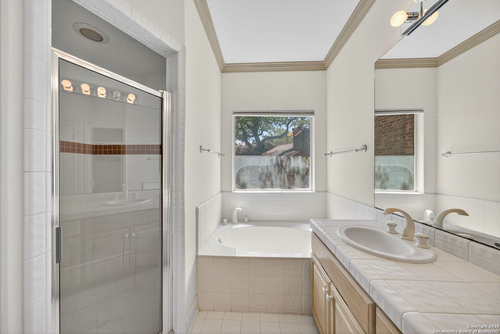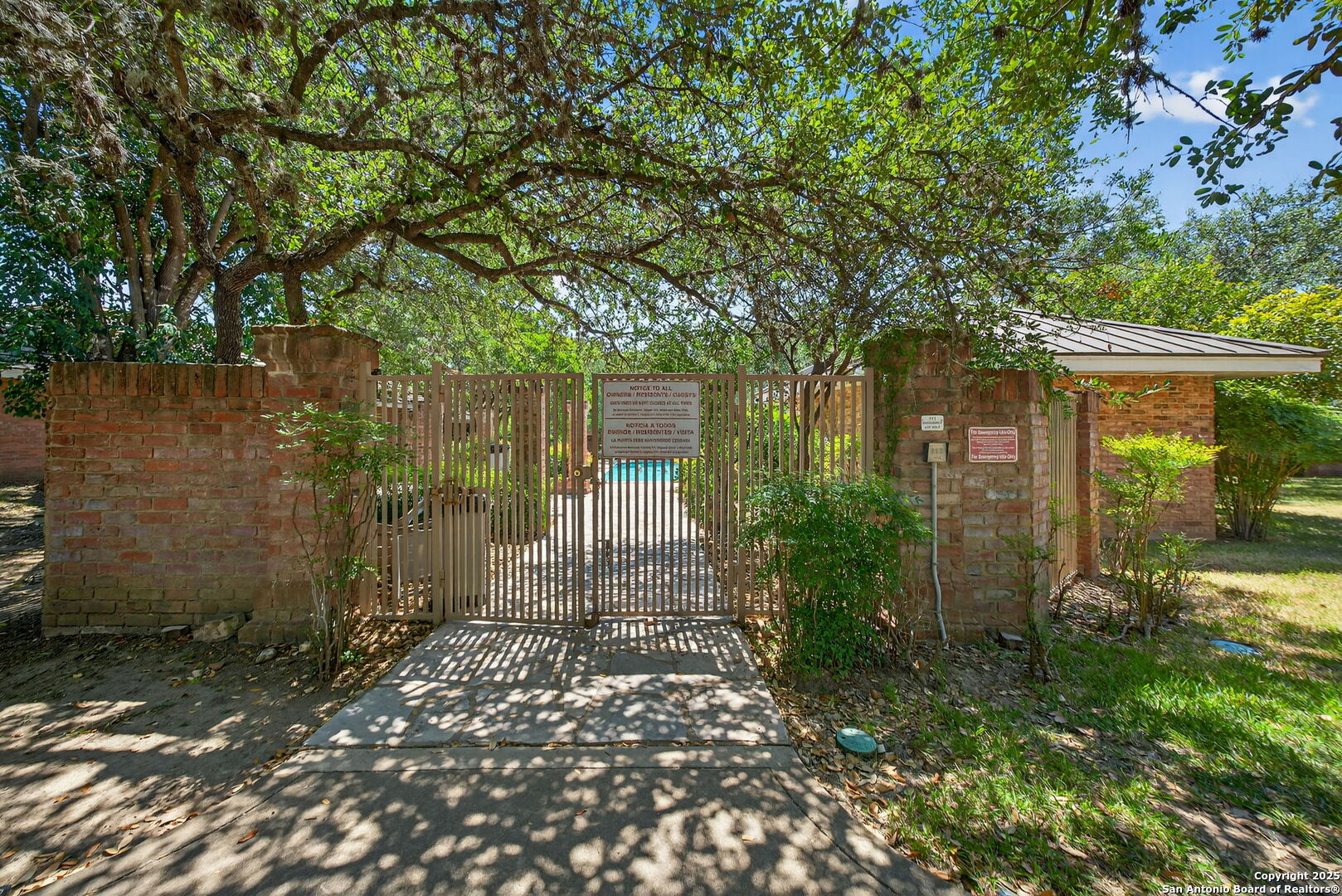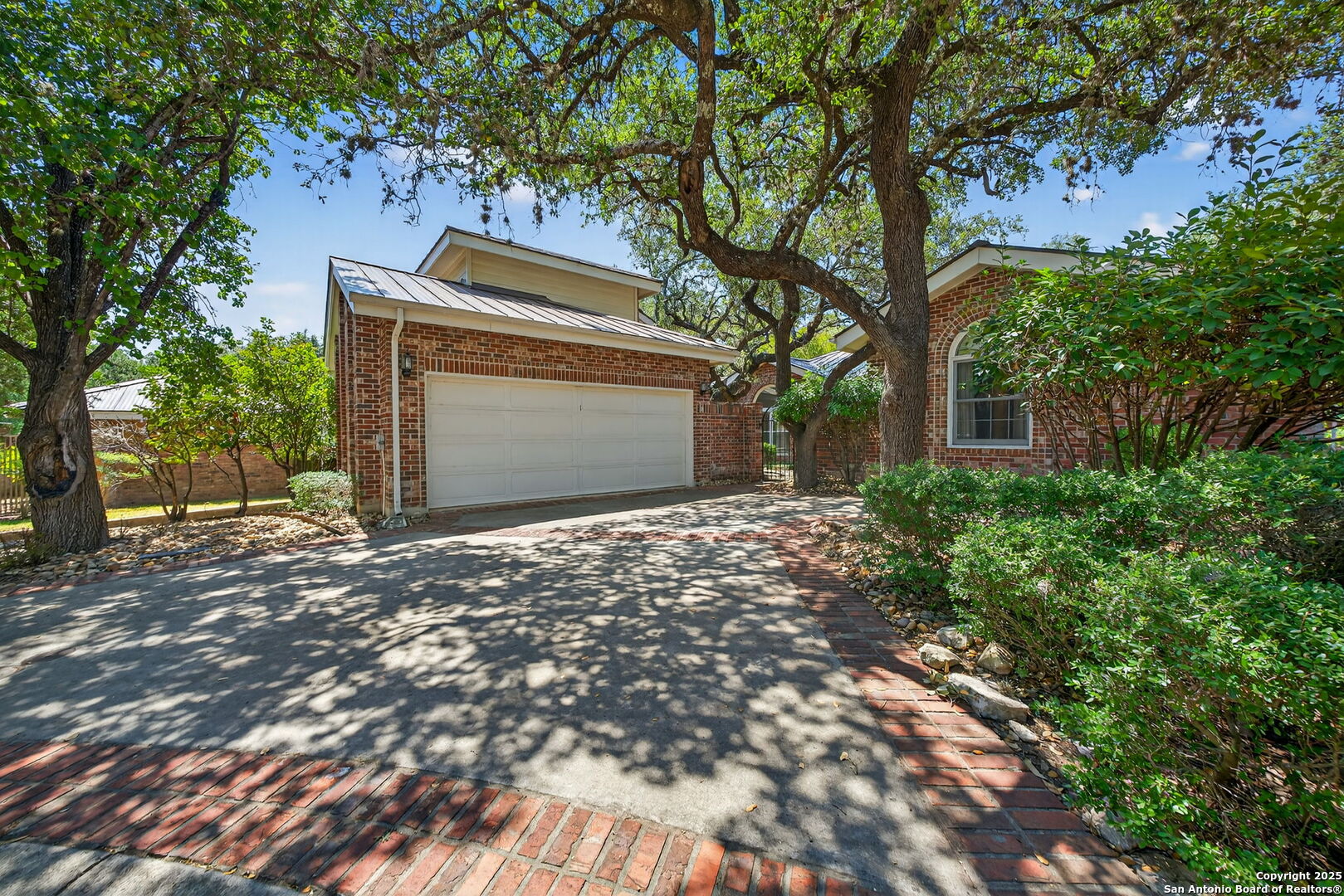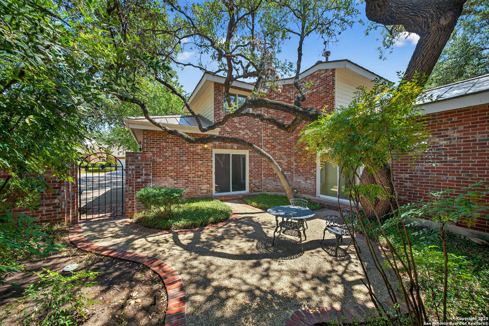Stunning 4-bedroom, 4-bath home in the sought-after Elm Creek subdivision. This property features two private courtyards surrounded by mature trees, creating serene outdoor spaces. Inside, enjoy high ceilings and abundant natural light throughout. The luxurious primary suite includes a spacious walk-in closet, while an upstairs suite above the garage offers flexibility for use as an office or media room. Additional highlights include a durable metal roof and a community pool located just steps away.