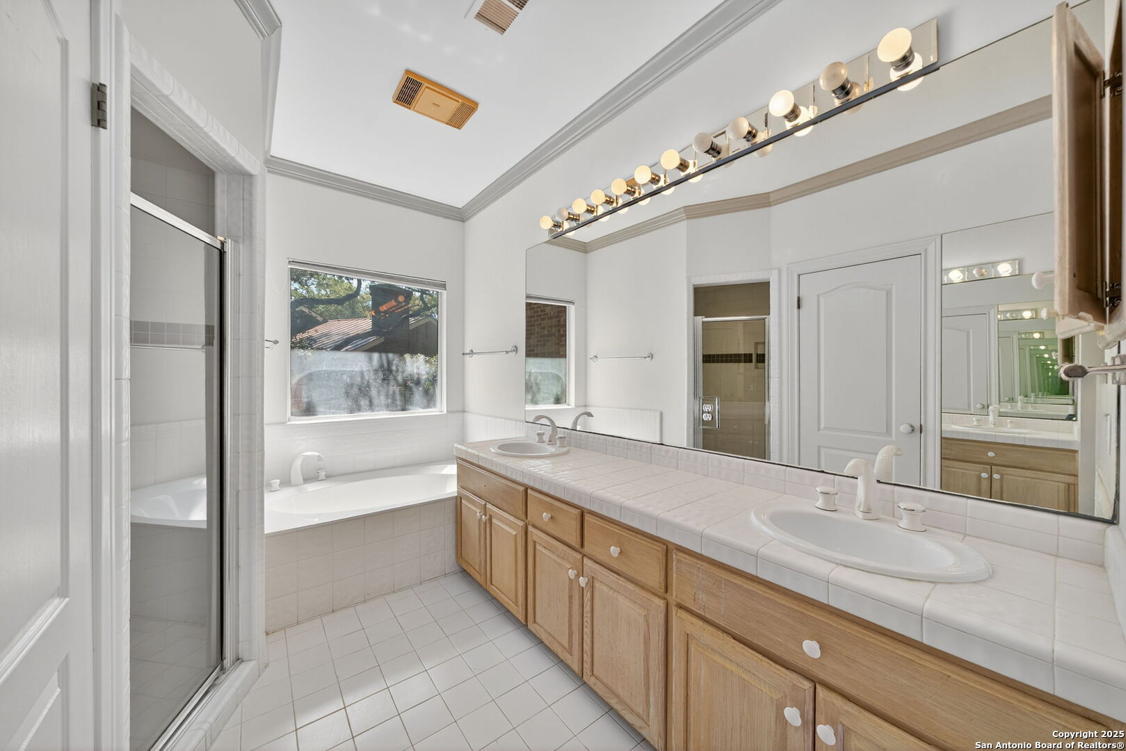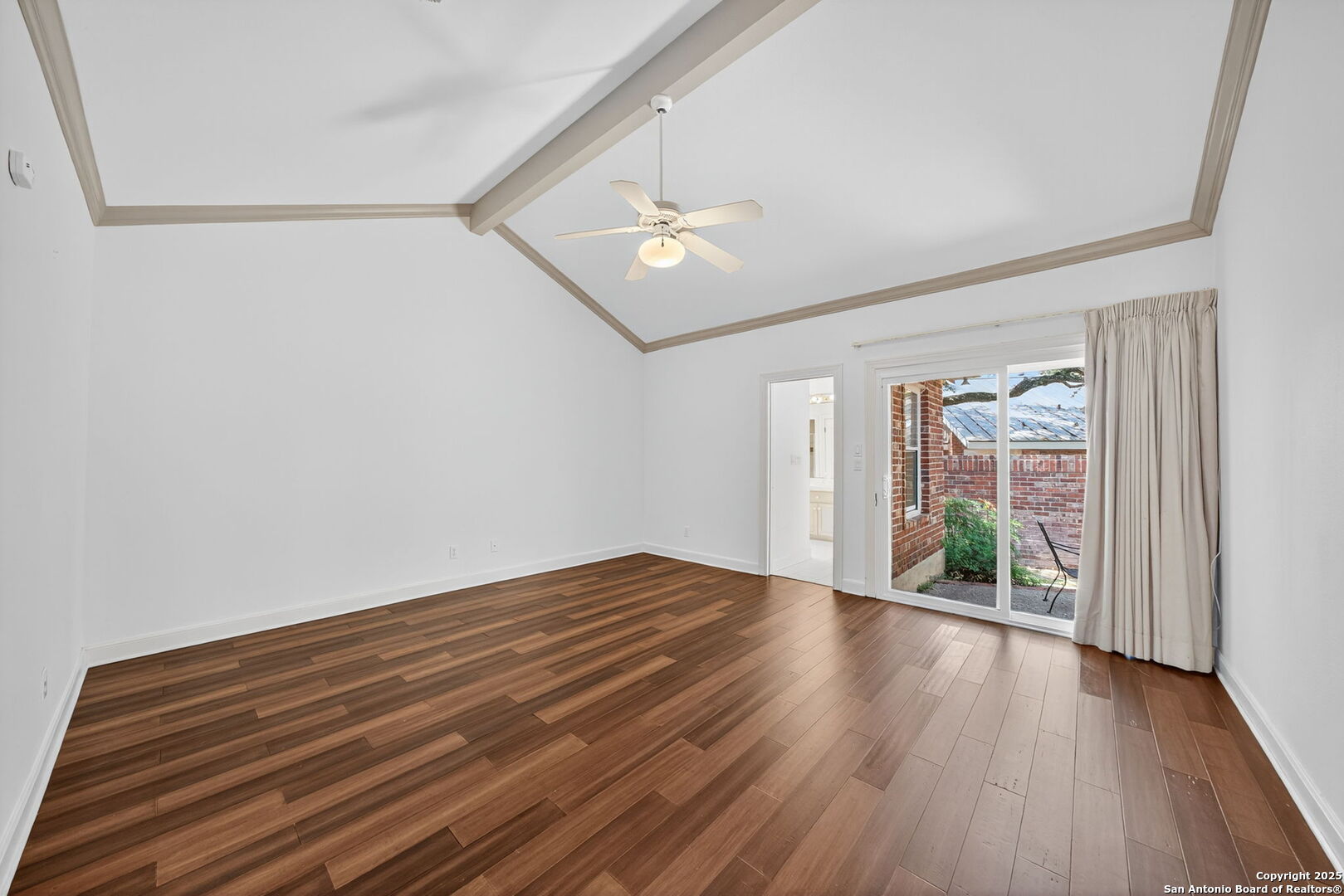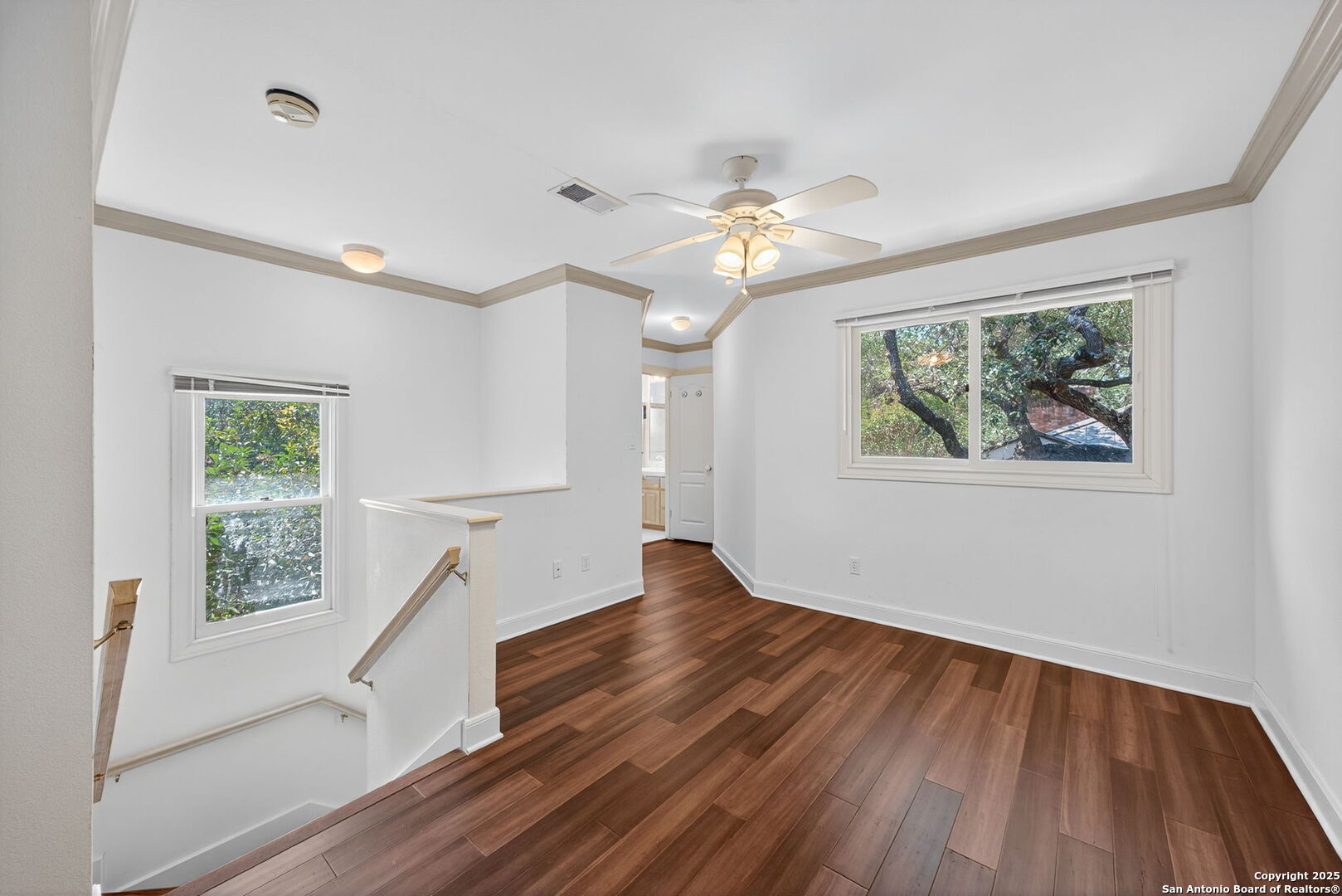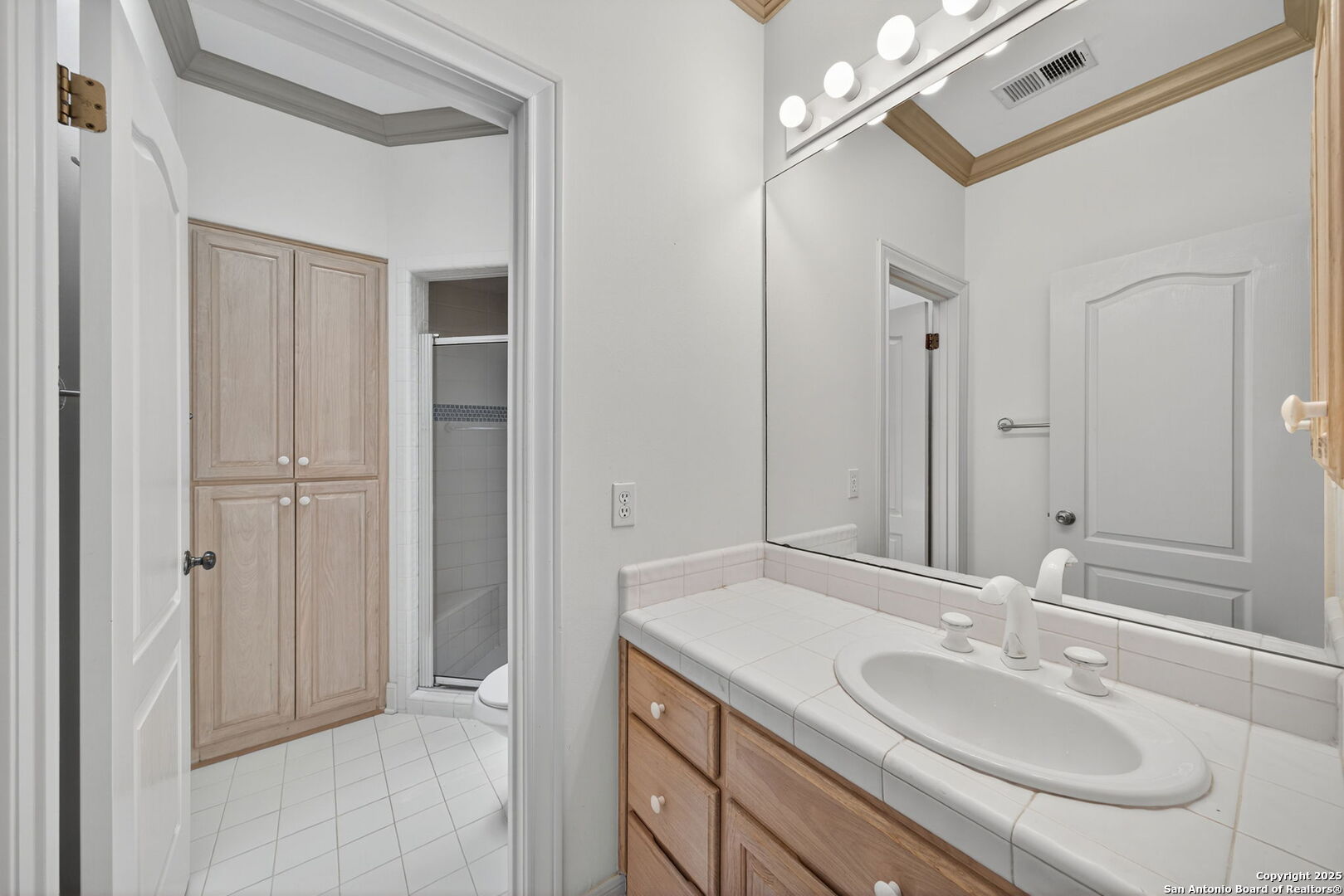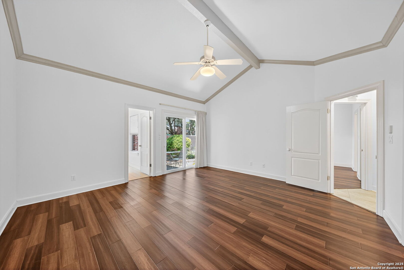 Stunning 4-bedroom, 4-bath home in the sought-after Elm Creek subdivision. This property features two private courtyards surrounded by mature trees, creating serene outdoor spaces. Inside, enjoy high ceilings and abundant natural light throughout. The luxurious primary suite includes a spacious walk-in closet, while an upstairs suite above the garage offers flexibility for use as an office or media room. Additional highlights include a durable metal roof and a community pool located just steps away.