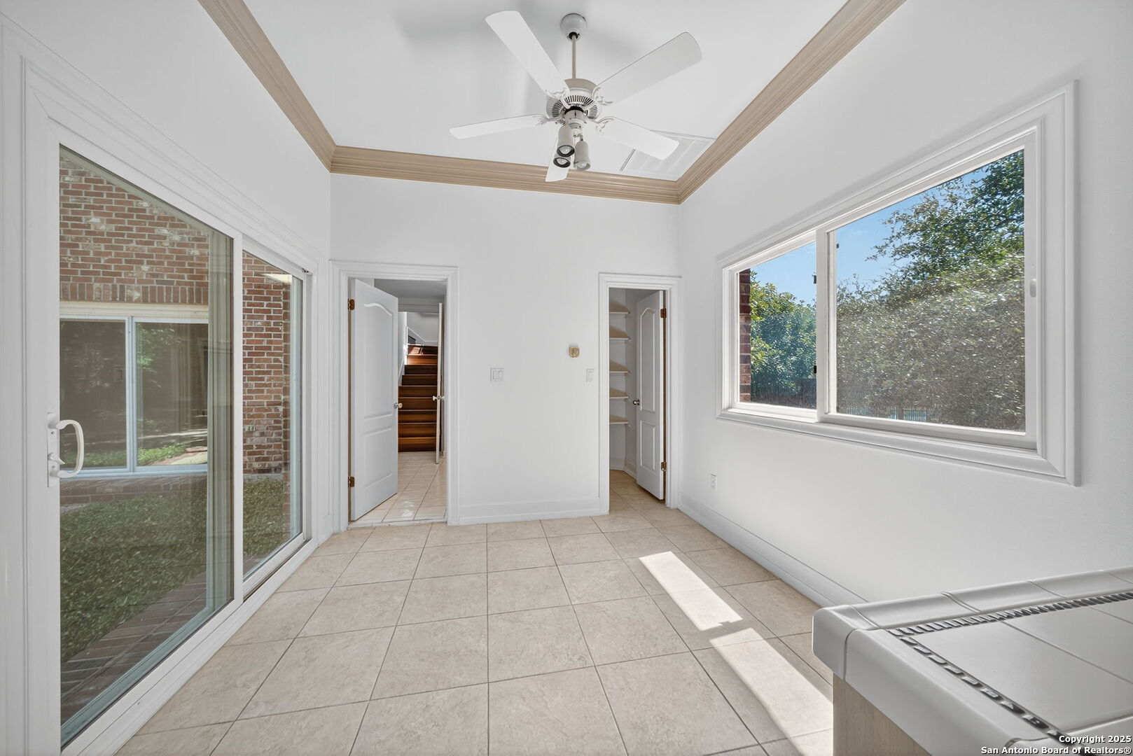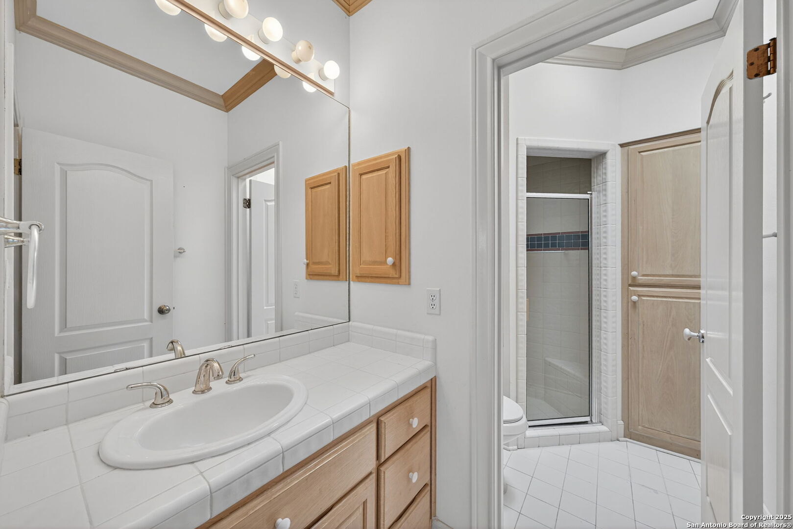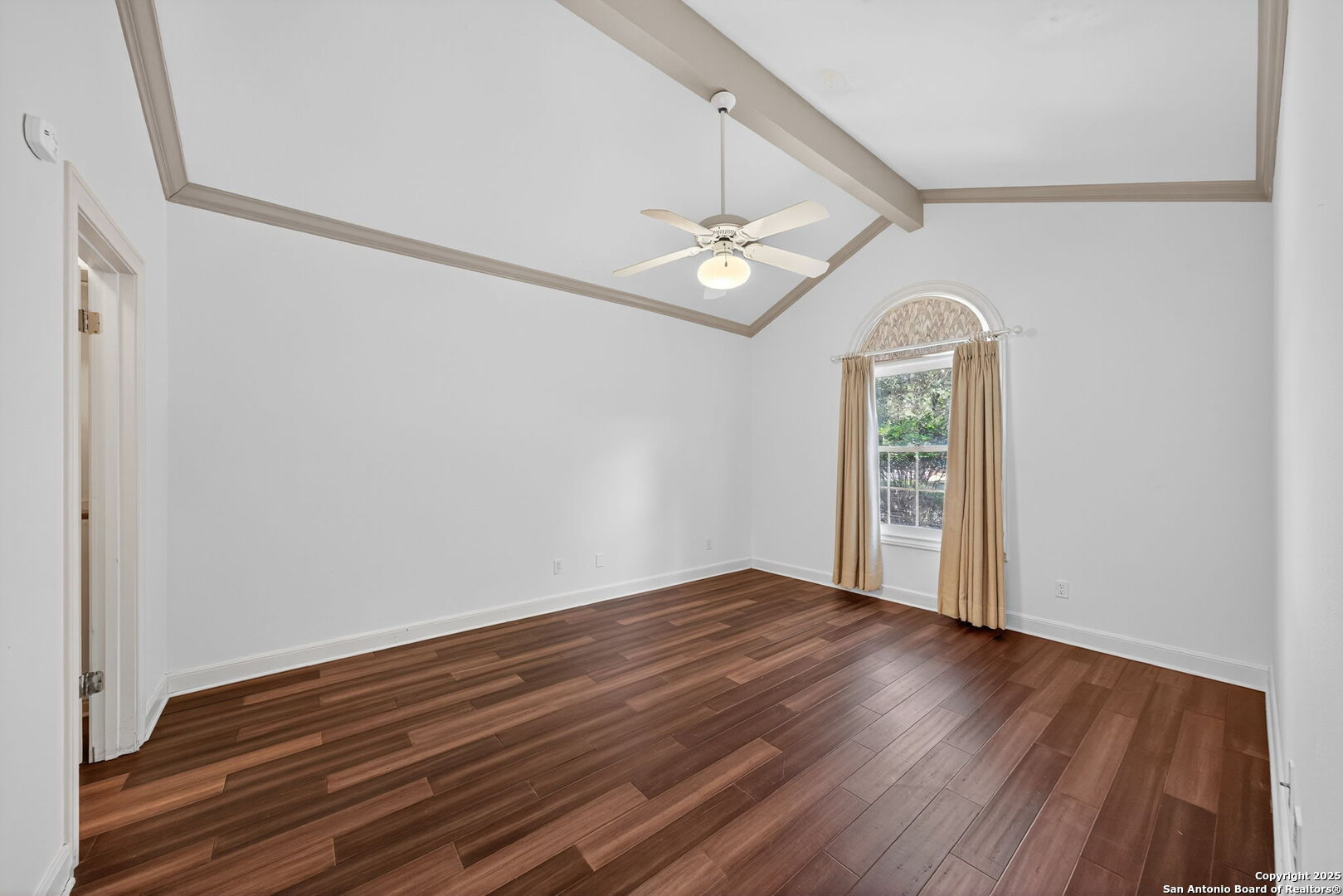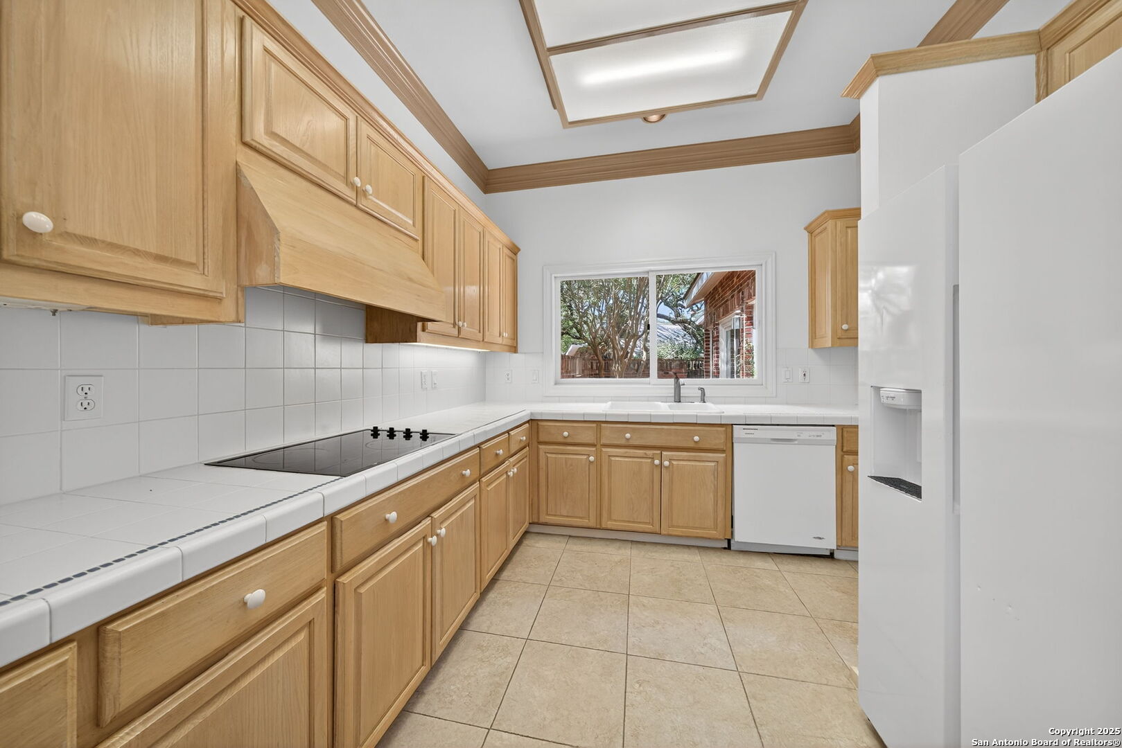 Stunning 4-bedroom, 4-bath home in the sought-after Elm Creek subdivision. This property features two private courtyards surrounded by mature trees, creating serene outdoor spaces. Inside, enjoy high ceilings and abundant natural light throughout. The luxurious primary suite includes a spacious walk-in closet, while an upstairs suite above the garage offers flexibility for use as an office or media room. Additional highlights include a durable metal roof and a community pool located just steps away.
