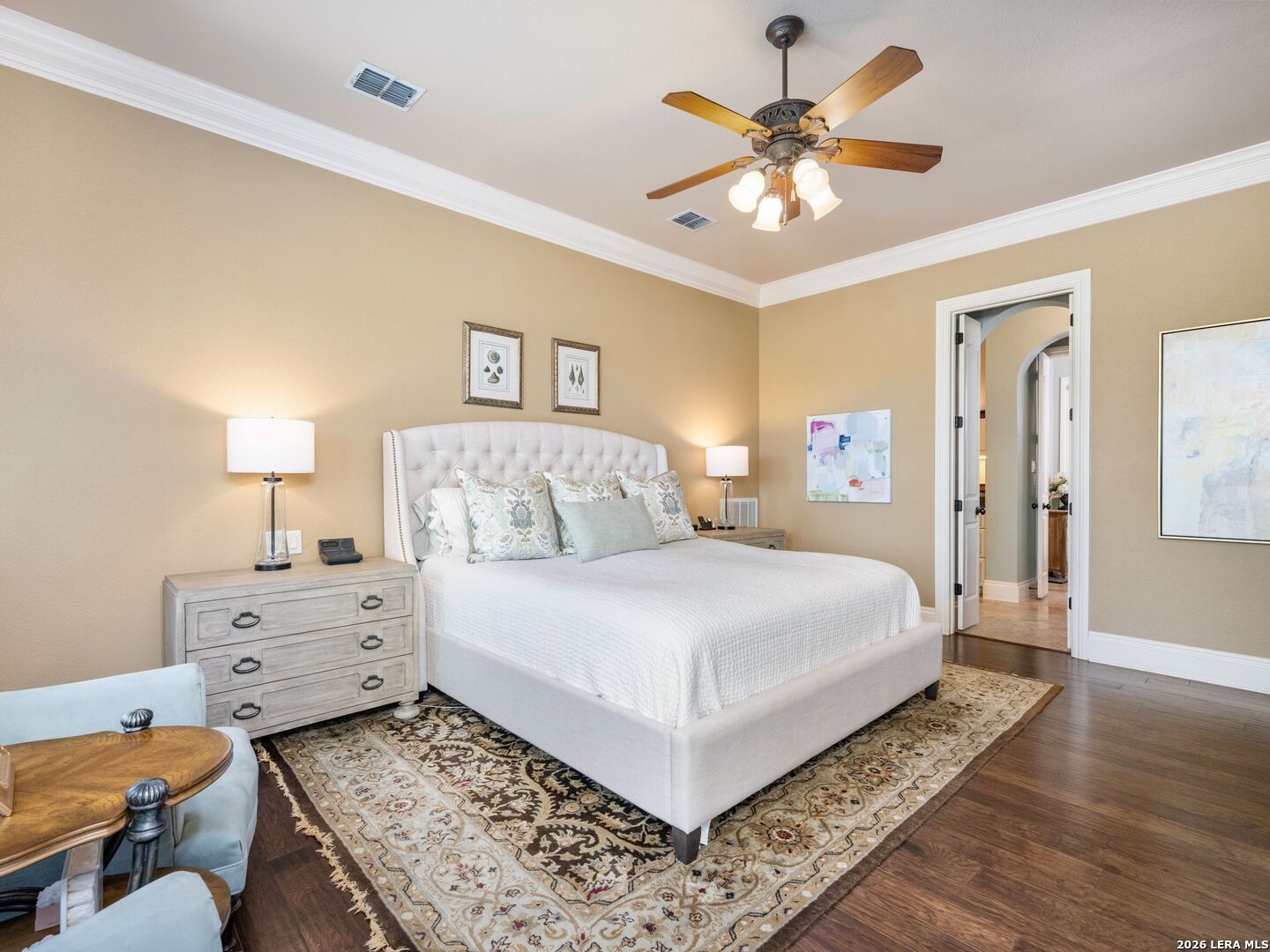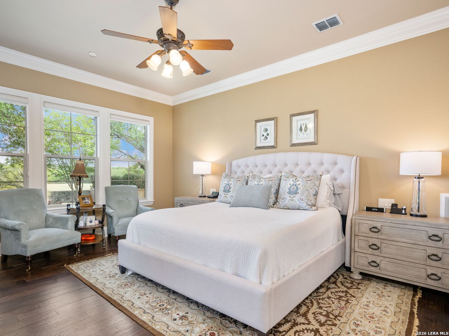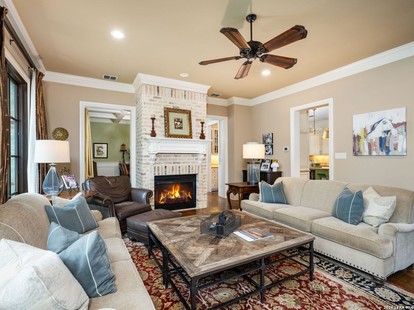 Positioned within The Waters at Deerfield and backing directly to the neighborhood park, this custom-built residence offers a well-balanced layout with an emphasis on natural light, functionality, and consistent finish selection throughout. Interior spaces are connected in a way that feels intentional, allowing the kitchen, living, and dining areas to interact naturally while still maintaining definition. The kitchen serves as a central gathering point, equipped with professional-grade stainless steel appliances, gas cooking, double ovens, and a large island with bar seating, all opening to the main living areas. A floor-to-ceiling fireplace anchors the family room, adding structure to the space without disrupting the overall openness. The primary suite is positioned for privacy with direct patio access and a well-appointed bath featuring clean lines and a more relaxed, spa-like atmosphere. Upstairs, three additional bedrooms are paired with a loft and game room, creating separation from the main level while still offering flexibility for a variety of uses. Outdoors, the property benefits from a setting that extends beyond the lot itself, with the rear boundary opening to the neighborhood park for added space and privacy. A pool and spa are supported by a covered patio, summer kitchen, and multiple seating areas, allowing the outdoor spaces to function as a true extension of the home. Residents of The Waters at Deerfield have access to community amenities, including a pool, tennis courts, sports court, playground, and clubhouse.