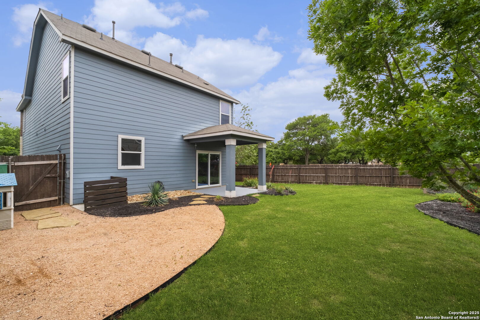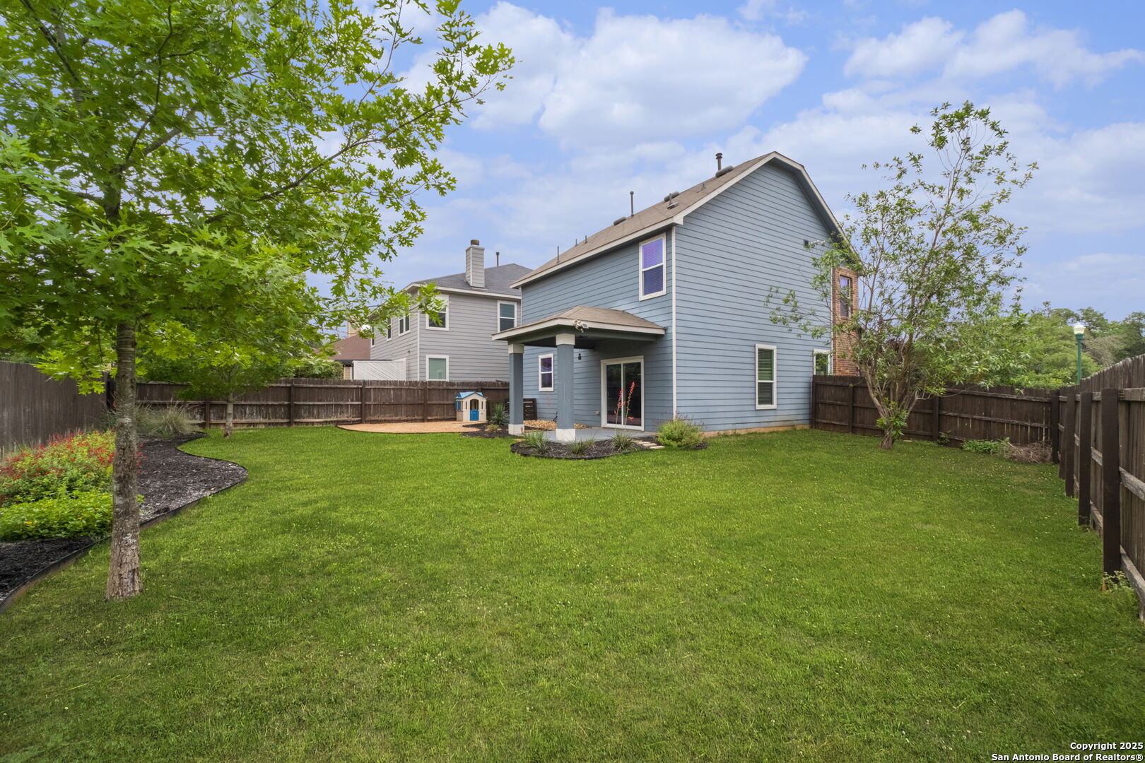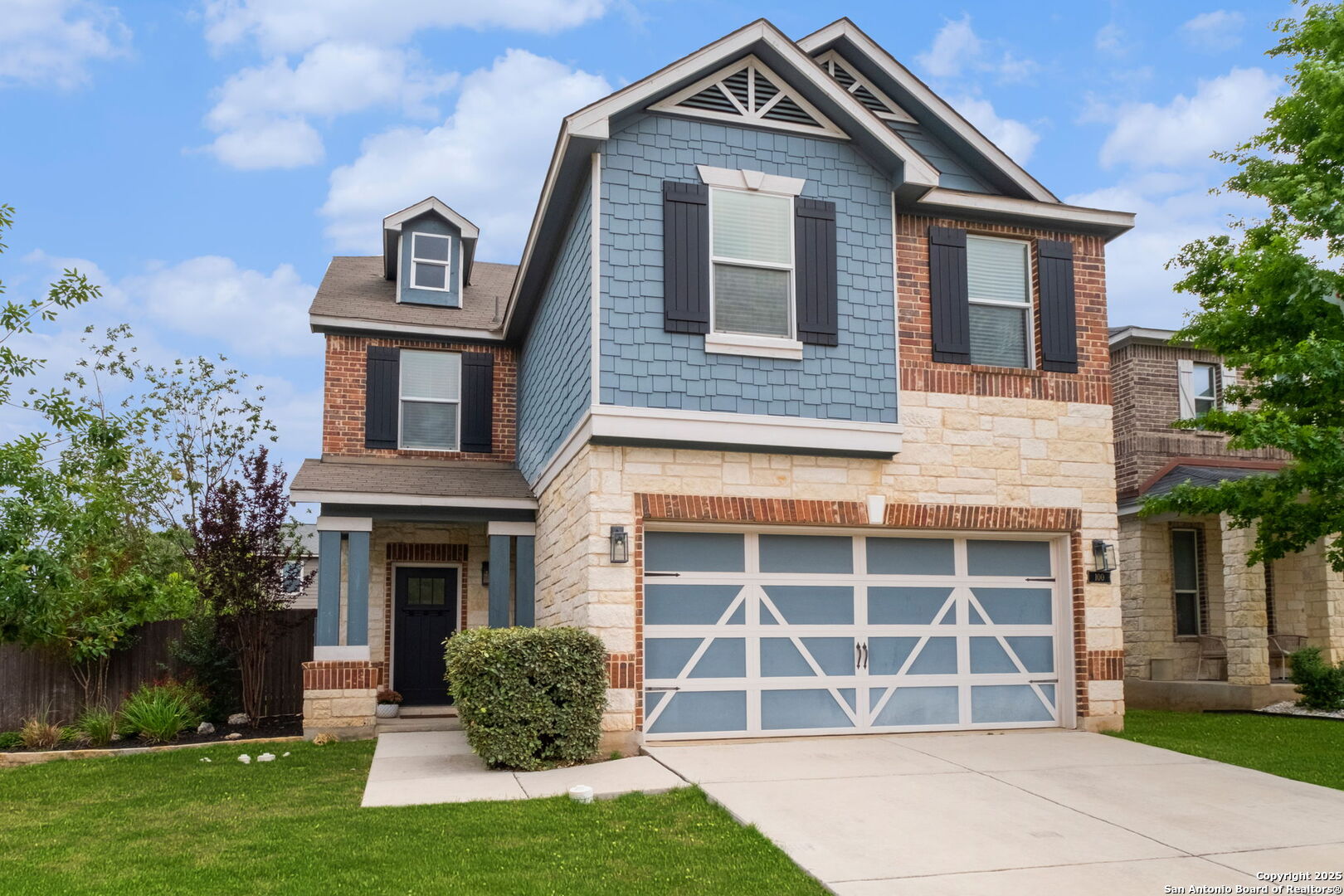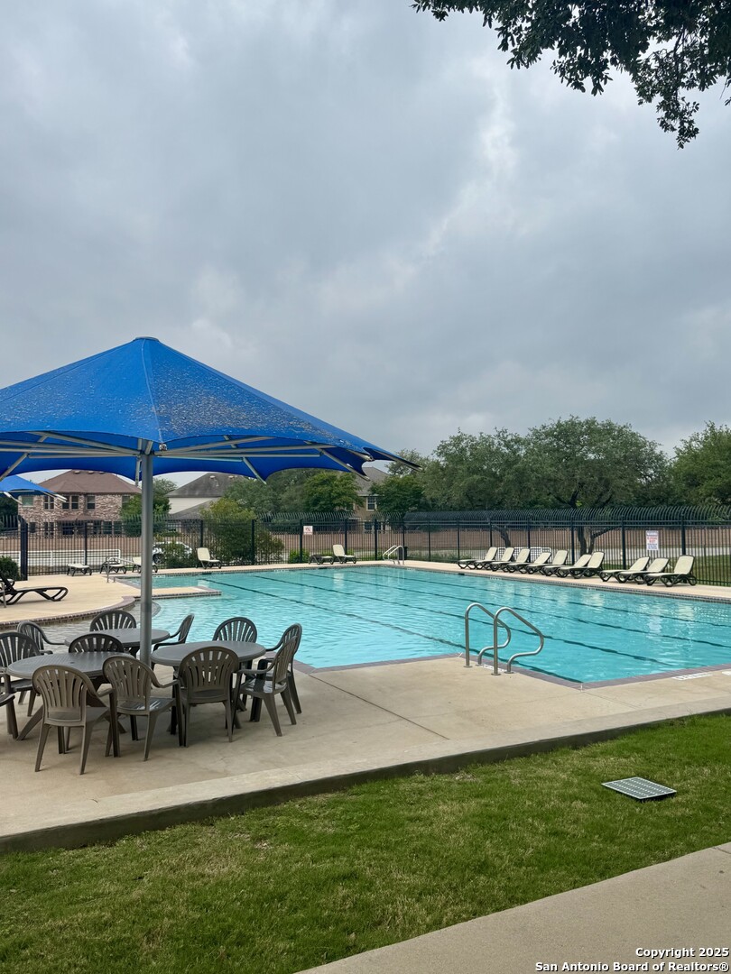 This pristine home is a must see! Located in the desirable community of Herff Ranch, this inviting home features an open floor plan with neutral paint and lots of natural light. Situated on a corner lot, you'll fall in love with the curb appeal of this beautiful home! Upgraded lighting thru-out. Step in the front door to an open area that features a shiplap accent wall and overlooks the lushly landscaped backyard complete with a spacious covered back porch. LVP flooring thru-out downstairs. The kitchen includes lots of cabinets, stainless steel appliances, granite counters, and a classy subway backsplash. There is a cute 1/2 bath downstairs for guests as well as a laundry room with great storage! Upstairs includes all bedrooms, each with spacious closets, along with a flexible landing space ideal for a game room, or secondary living area. Double doors lead into the primary bedroom complete with a ceiling fan and a large walk in closet. The primary bath has double sinks and a combo shower/garden tub. This home has been upgraded and well maintained by the owners. Overhead garage storage. Enjoy community amenities like walking trails, a pool, park, and sports courts.Walking distance to Champion HS and Cibolo Creek Elementary. A delight to show!