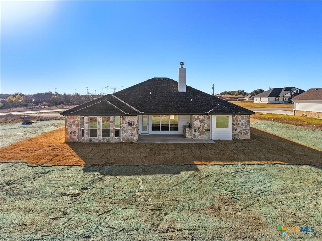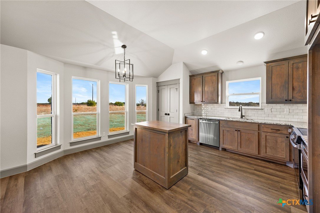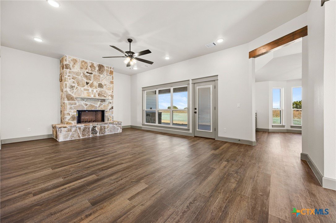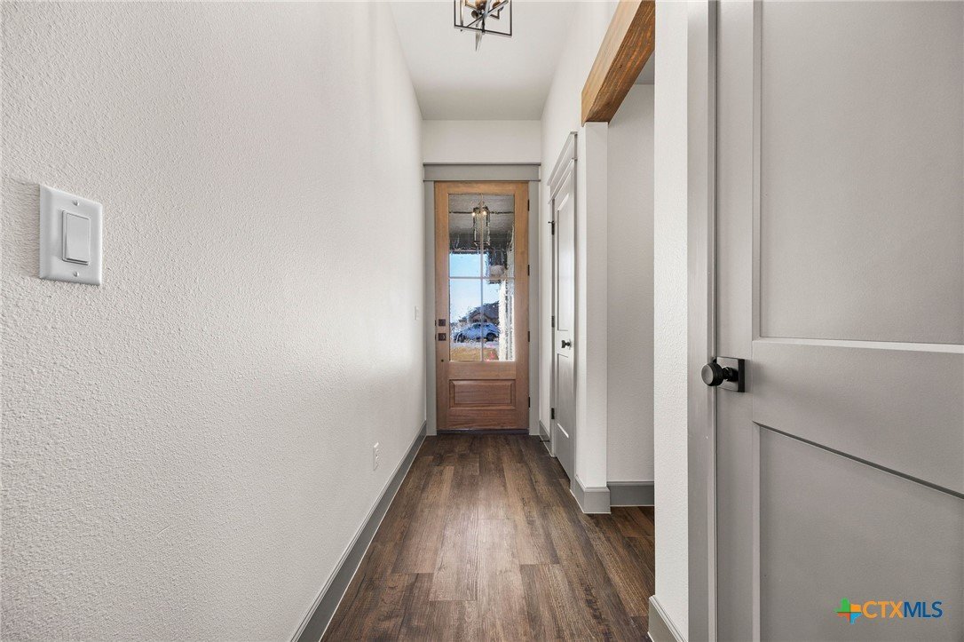 Welcome to this beautiful 4-bedroom, 2-bath Hill Country–style home set on 1.73 private acres. As you enter, you’re greeted by a stunning wood and glass front door, along with both a storage closet and coat closet for convenient organization. Inside, the home offers high ceilings, Douglas fir headers, luxury vinyl plank flooring, walk-in closets and ceiling fans in every room. The layout includes a formal dining room plus a breakfast area for everyday meals. The kitchen features granite countertops, custom Knotty Alder cabinetry, buffet, a Wi-Fi–enabled range, dishwasher and a Café microwave. The living room is anchored by a grand stone wood-burning fireplace, creating a warm and inviting space. The primary suite includes double sinks, a separate shower, a garden tub, and spacious walk-in closets. The laundry room provides a raised platform for the washer and dryer as well as an additional laundry closet. Additional features include a water-heater tank booster, booster pump to maintain water pressure while sprinklers run, kitchenette on the back patio, and a conventional septic system. Located on 1.73 acres, this property offers privacy, space, and classic Hill Country charm—ideal for anyone looking for acreage and room to spread out.