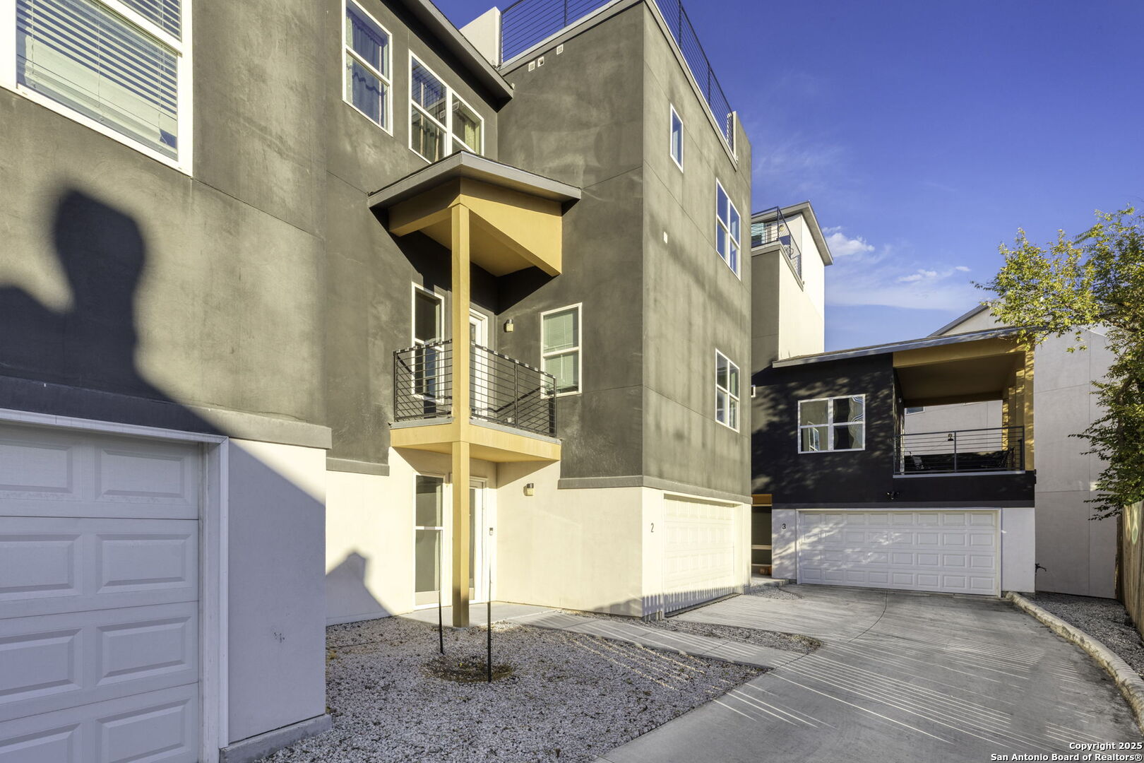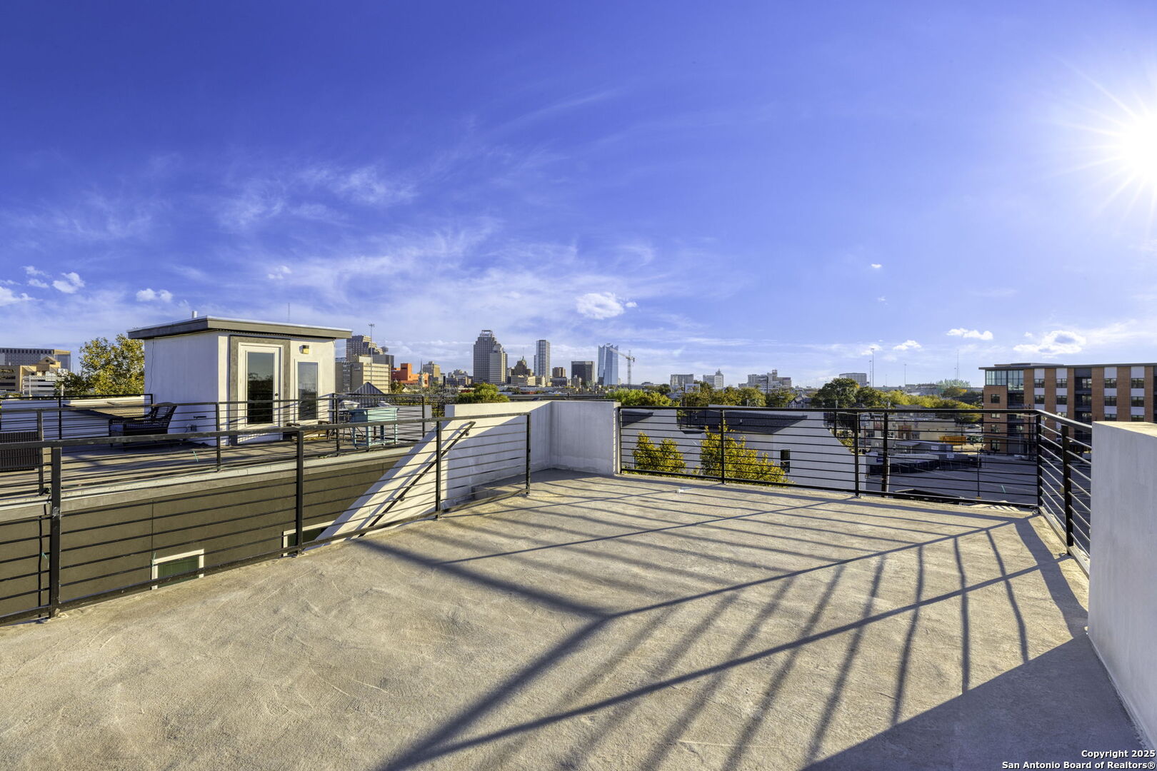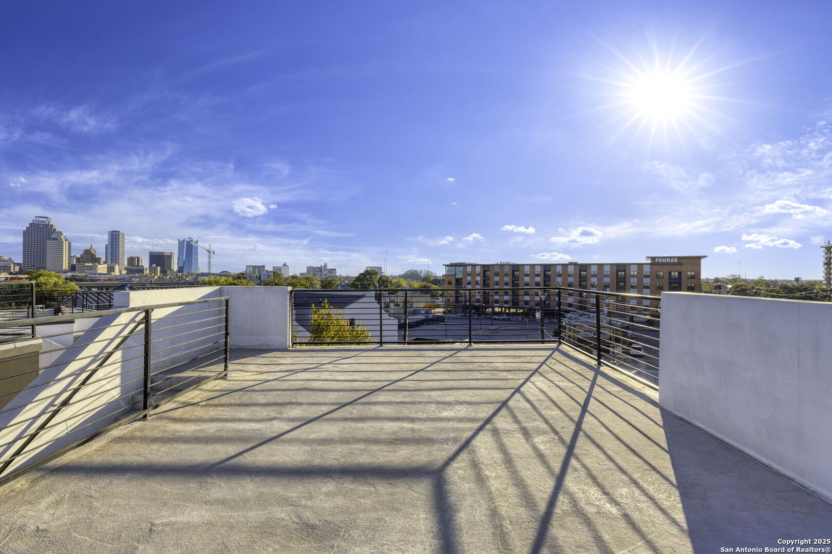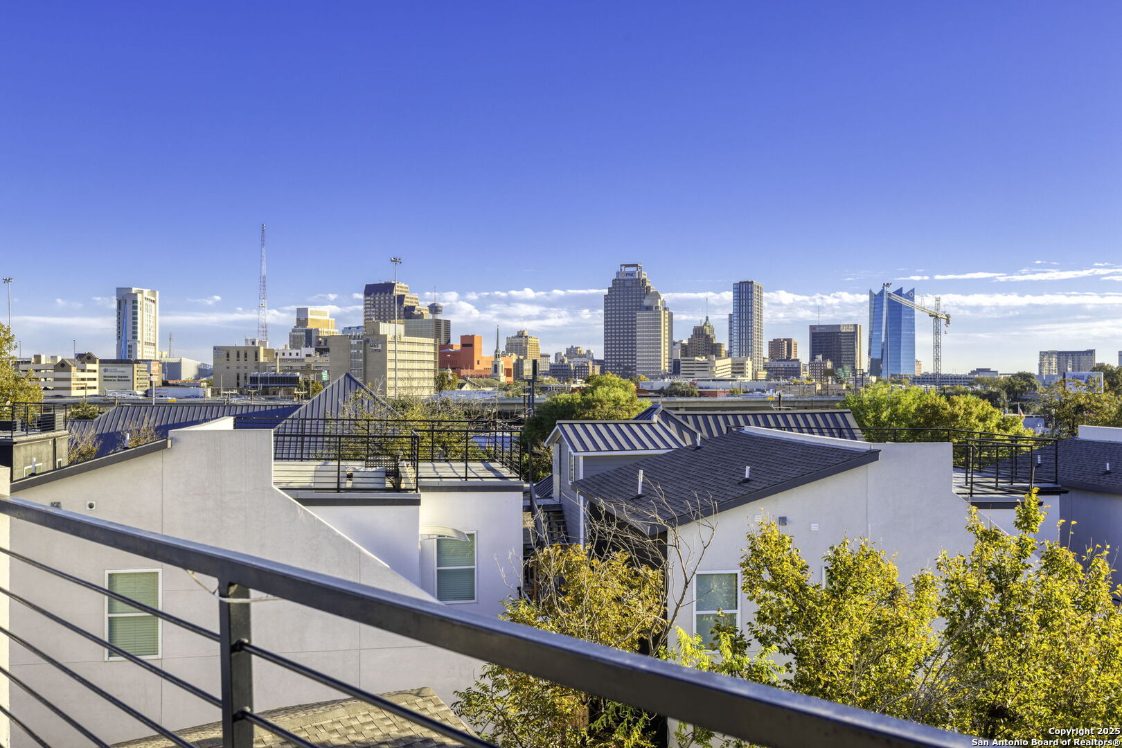 Live at the center of it all in this jaw-dropping urban luxury home-complete with your own Private ROOFTOP terrace boasting 360 skyline views of Downtown San Antonio. Modern, sleek, and unforgettable, this 3 bed / 3 bath multi-level stunner is the ultimate city retreat. Step inside to a gourmet island kitchen adorned with sleek granite countertops, custom cabinetry, modern stainless steel appliances, and high-end gas cooking-a chef's dream. Enjoy rich wood flooring, soaring 10-foot ceilings, expansive custom windows, and 2 balconies that fill the home with natural light. Thoughtfully designed with energy-efficient construction, this home also includes a spacious attached 2-car garage and premium contemporary finishes throughout; washer and dryer will convey. Located just south of San Antonio College in the highly coveted Historic Tobin Hill District, you'll live within one mile of The Pearl, the San Antonio River Walk, Tobin Center for the Performing Arts, San Pedro Springs Park, The Alamo, and a curated mix of upscale dining, shopping, and culture. Urban sophistication, unbeatable walkability, and iconic skyline views-this is the heart of San Antonio at your door!