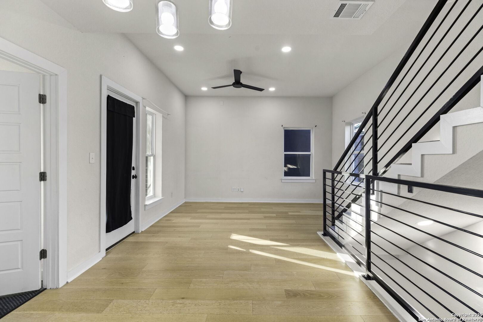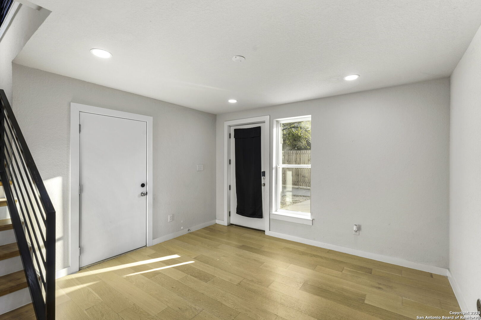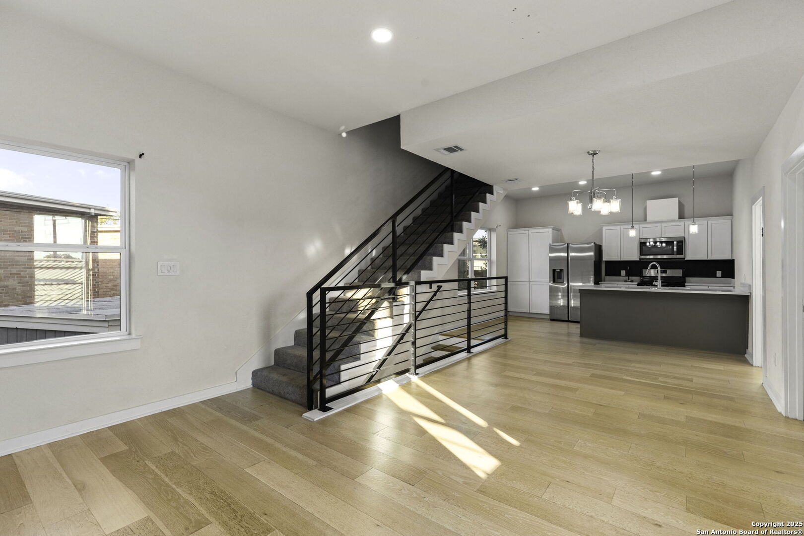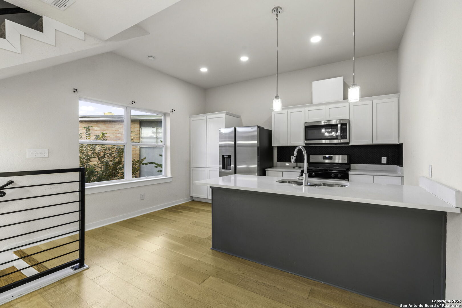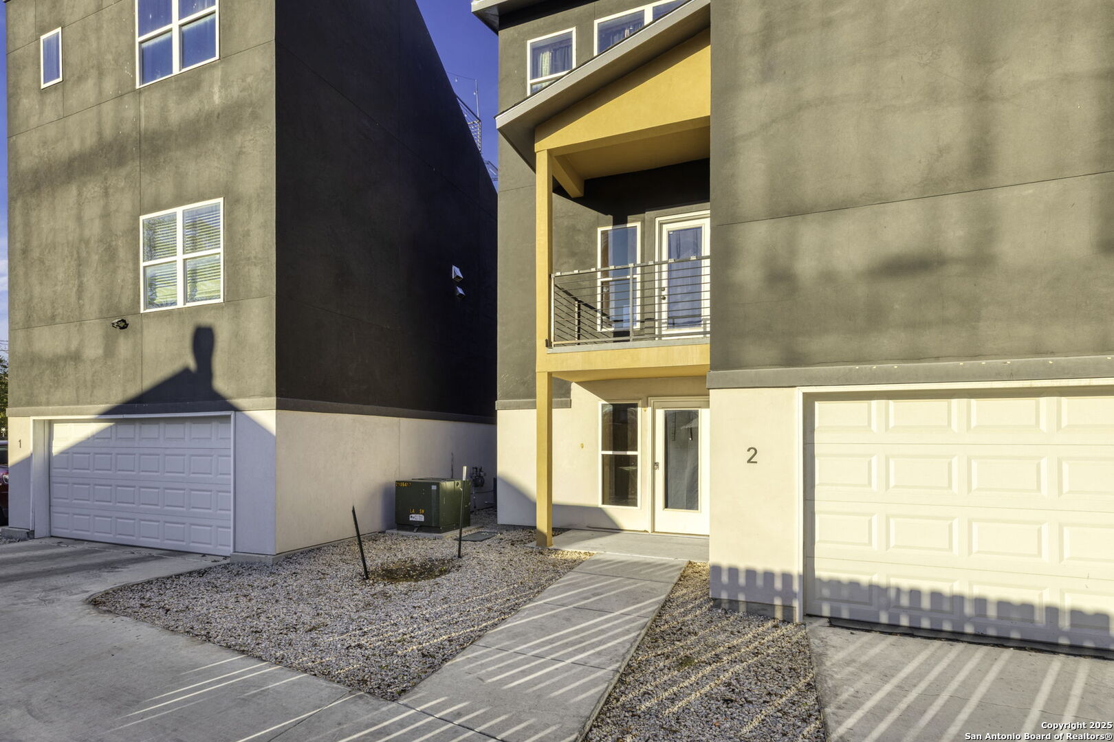 Live at the center of it all in this jaw-dropping urban luxury home-complete with your own Private ROOFTOP terrace boasting 360 skyline views of Downtown San Antonio. Modern, sleek, and unforgettable, this 3 bed / 3 bath multi-level stunner is the ultimate city retreat. Step inside to a gourmet island kitchen adorned with sleek granite countertops, custom cabinetry, modern stainless steel appliances, and high-end gas cooking-a chef's dream. Enjoy rich wood flooring, soaring 10-foot ceilings, expansive custom windows, and 2 balconies that fill the home with natural light. Thoughtfully designed with energy-efficient construction, this home also includes a spacious attached 2-car garage and premium contemporary finishes throughout; washer and dryer will convey. Located just south of San Antonio College in the highly coveted Historic Tobin Hill District, you'll live within one mile of The Pearl, the San Antonio River Walk, Tobin Center for the Performing Arts, San Pedro Springs Park, The Alamo, and a curated mix of upscale dining, shopping, and culture. Urban sophistication, unbeatable walkability, and iconic skyline views-this is the heart of San Antonio at your door!