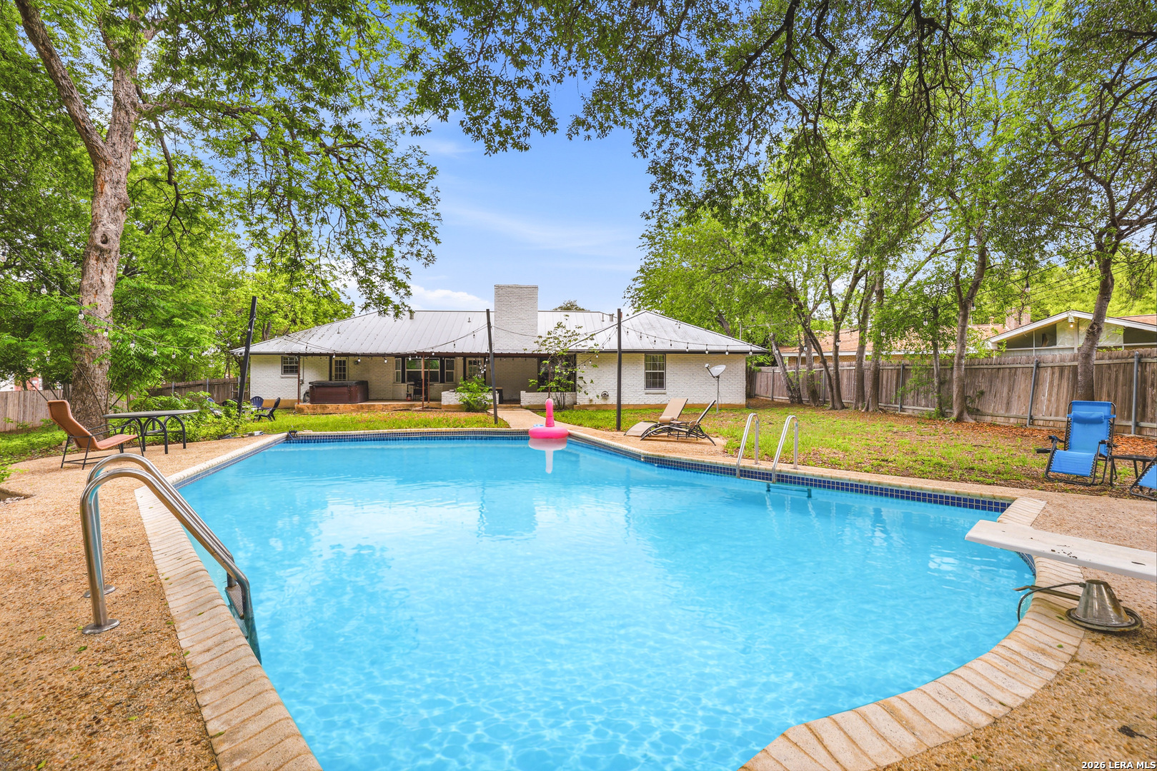 Welcome to this beautifully refreshed corner-lot residence in the heart of San Antonio, where thoughtful updates meet effortless comfort. Designed with both elegance and livability in mind, the home features multiple spacious living areas, allowing for seamless entertaining and everyday ease. Updated fixtures throughout add a refined, modern touch while maintaining a warm, inviting atmosphere. Step outside to your private backyard retreat, complete with a sparkling in-ground pool and diving board, perfect for elevated outdoor living, weekend gatherings, and serene evenings under the Texas sky. The generous corner lot enhances both privacy and curb appeal, creating a true sense of space and presence. Whether you're seeking a primary residence, a second home, or a high-potential investment, this property offers a rare blend of versatility and lifestyle. Experience it in person, schedule your private showing today. Spa/hot tub is not included in the sale. Hot tub and furnishings negotiable.