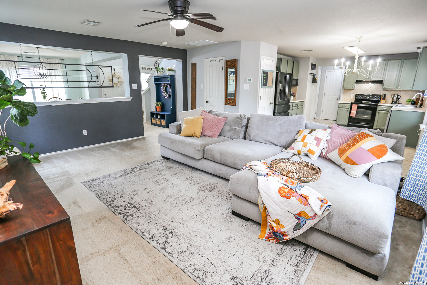 Rare opportunity to own a spacious former model home, offering 4 bedrooms and 2.5 baths, ideally positioned on a desirable corner lot. This well-maintained property showcases a new metal roof, providing long term durability and lasting value. Inside, you'll appreciate the fresh, updated feel with custom paint throughout, designer finished cabinetry and a thoughtfully designed kitchen that opens seamlessly to the main living area. Upstairs, the spacious primary suite features dual closets and beautifully designed bathroom with a double vanity. Step outside to a generously sized yard and a covered patio with extended concrete perfect for entertaining or relaxed everyday living. Experience the comfort, style and functionality this home has to offer - schedule your showing today.