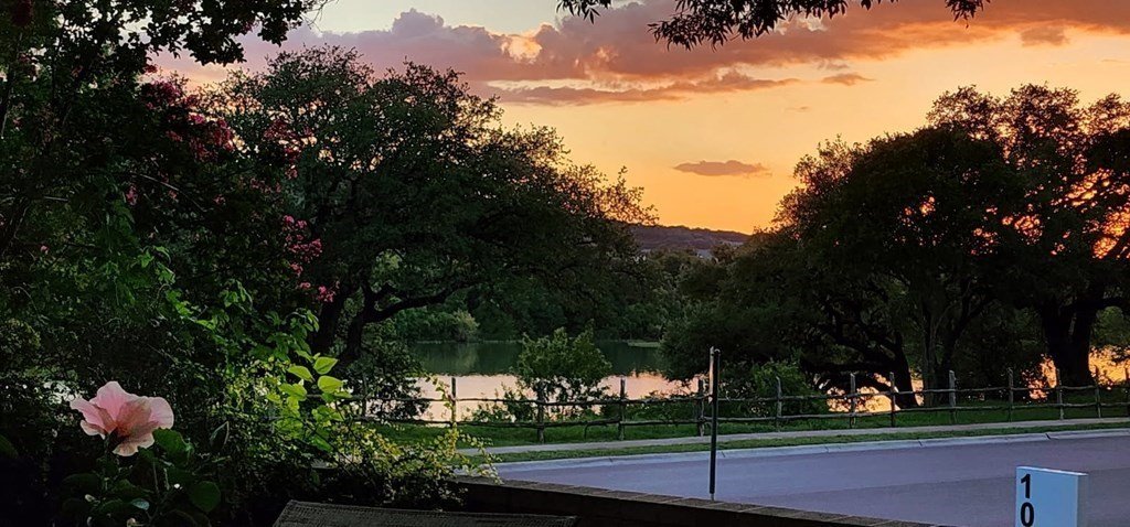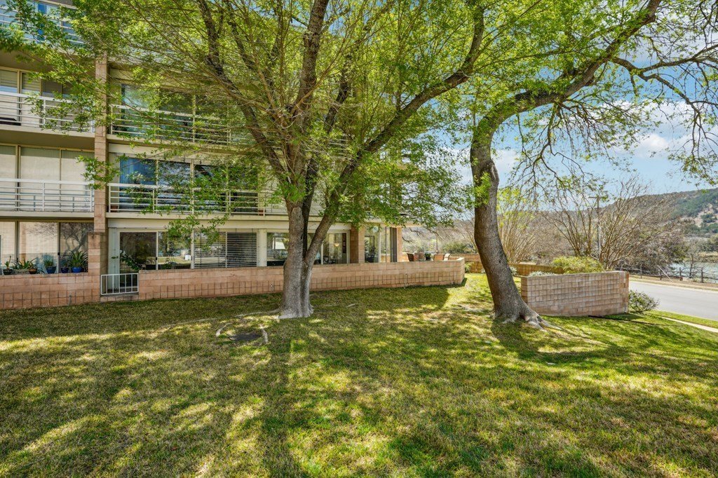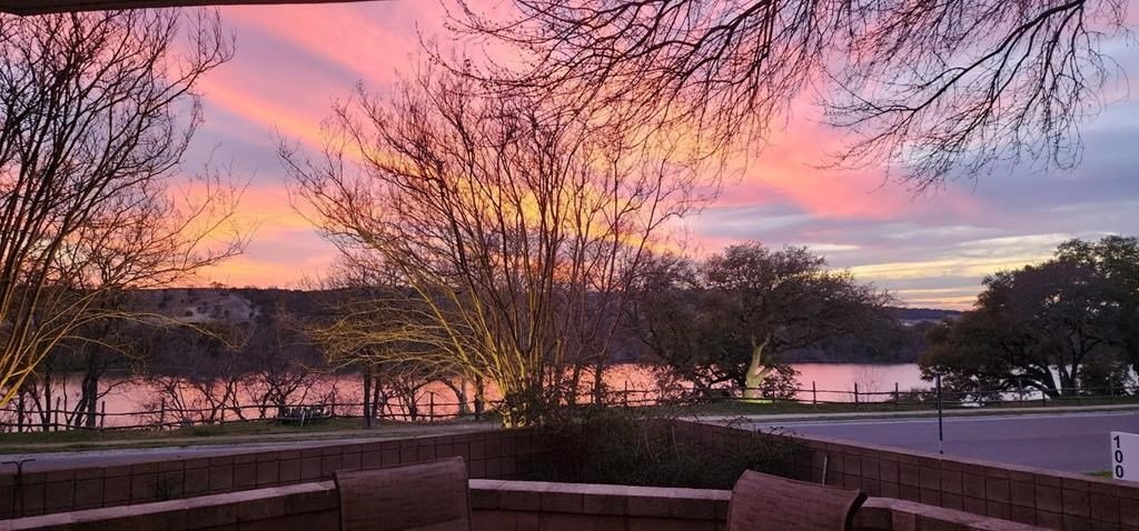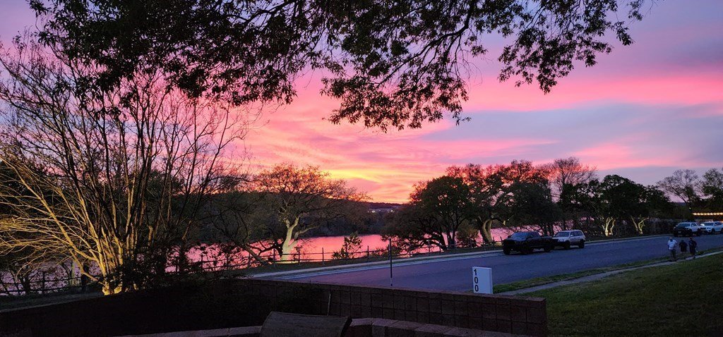 Waterfront Luxury Meets Hill Country Serenity - Rare Corner Unit with Panoramic Views. Experience the ultimate blend of elegance and tranquility in this exceptional ground-level corner residence in the coveted First Tower. Overlooking Nimitz Lake & the Guadalupe River, floor-to-ceiling commercial glass windows wrap around two sides, showcasing breathtaking views from nearly every room of this 1,777 sf home featuring 2 bedrooms & a spacious office. The primary suite offers a luxurious en-suite bath & direct patio access, perfect for relaxing, quiet mornings and gorgeous sunset views. The expansive wraparound patio, complete with a 30' raised planter, is a private outdoor oasis. A secondary bath includes a walk-in tub, enhancing comfort and ADA accessibility. Enjoy resort-style amenities, including a sparkling pool, beautifully landscaped courtyard & well-maintained common areas, as well as effortless, lock-and-leave living with premium features such as an elevator, energy-efficient geothermal HVAC system, and 2 reserved parking spaces with a private storage unit. All this, just steps from Guadalupe Park and River Trail, can be yours. Call today to schedule a showing.