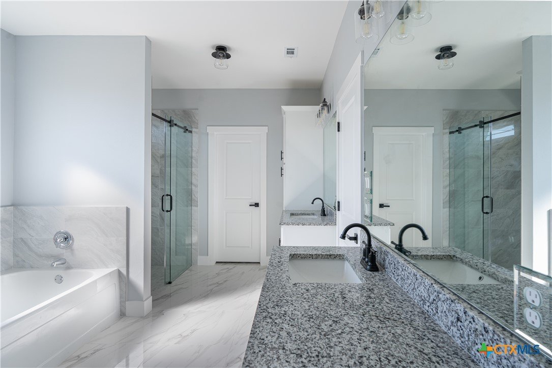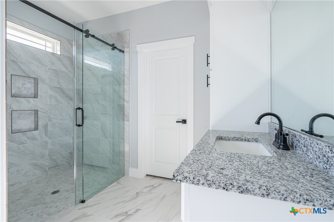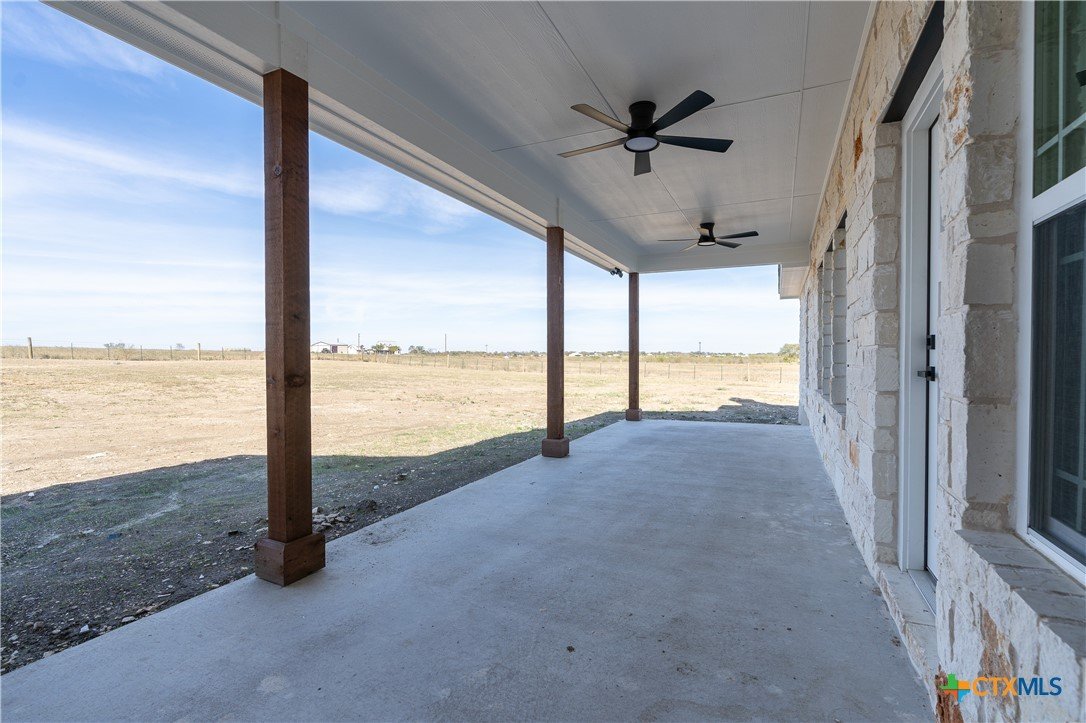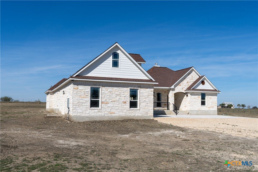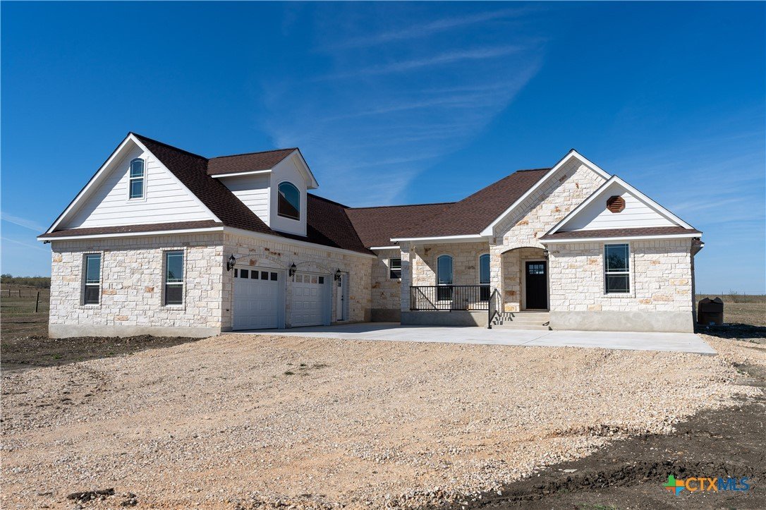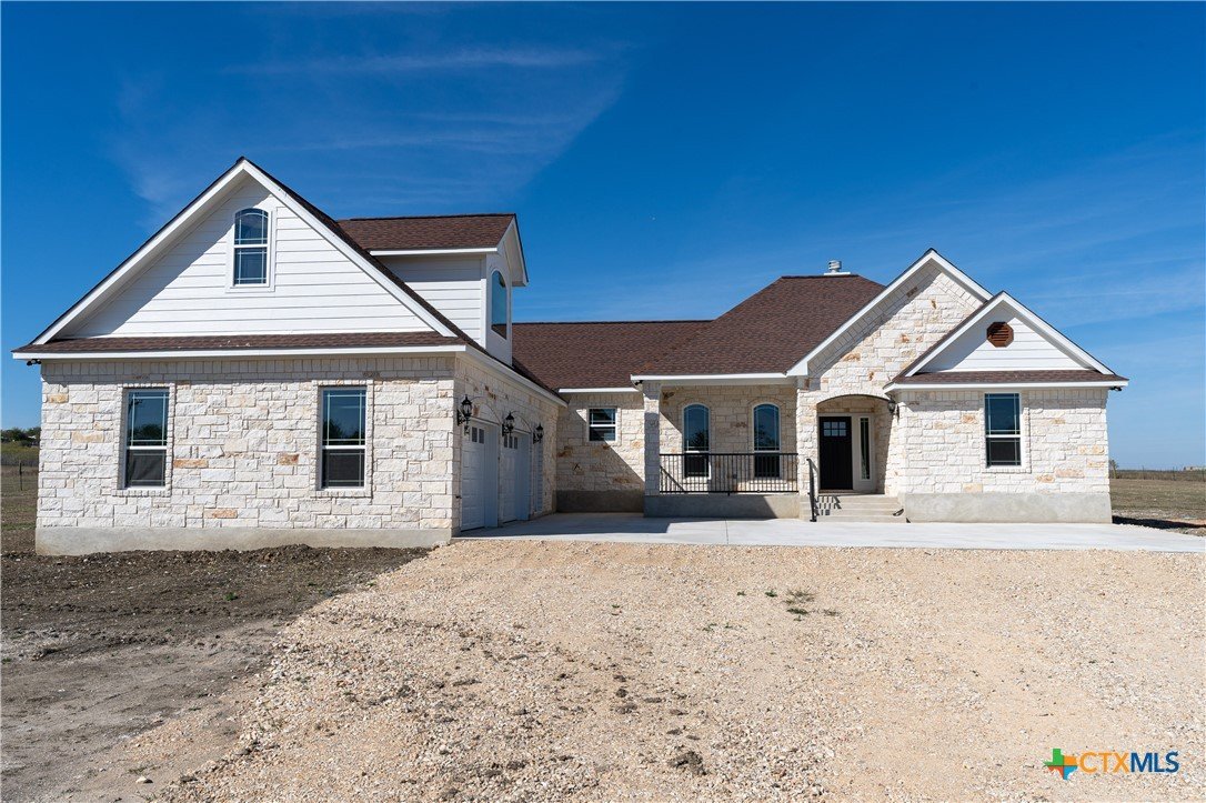 Experience the ultimate in comfort and style with this custom-built, 2024 rock home situated on 2 acres just west of Lockhart. This thoughtfully designed residence offers 4 bedrooms, 3 full baths, and generous living spaces, including 2 living rooms and 2 dining areas. The oversized 2-car garage features automatic openers and a spacious storage closet for added convenience. Relax and take in the picturesque views of the surrounding ranches from the covered front and back porches. The gourmet kitchen is equipped with granite countertops, custom cabinets, a stylish tile backsplash, and an island with a sink, seamlessly connecting to the breakfast area. The luxurious primary suite is a true retreat, featuring two walk-in closets, a large soaking tub, a separate shower, dual vanities, and a dedicated makeup area. The property is fully fenced with a gated entry. Its prime location offers easy access to major attractions, including a 30-minute drive to Austin-Bergstrom International Airport (ABIA), Circuit of the Americas (COTA), and Tesla, as well as a 25-minute drive to the San Marcos Outlet Mall. This home perfectly blends modern convenience with serene countryside living—don’t miss the opportunity to make it yours!
