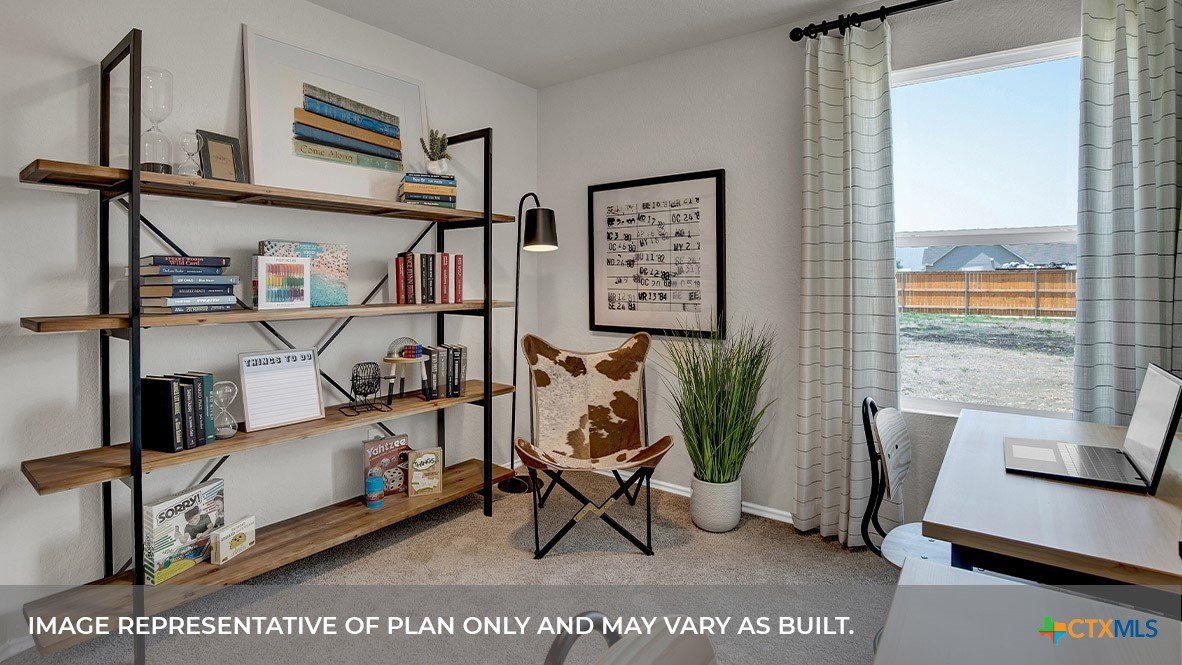 MOVE IN READY! NAVARRO ISD. CORNER LOT! The Lakeway is our most popular floorplan and is available at Swenson Heights in Seguin, Texas. This one-story home offers 2,034 square feet of living space across 4 bedrooms, 3 bathrooms, a study, and 2-car garage. Our homes in Swenson Heights feature farmhouse exteriors. As you enter the home from the covered front porch, you’ll step into the spacious foyer and will find the open study, bathroom 2 and bedroom 2. Use the study as a home office, library, or extra play area for the kids. Stepping further into the home, you’ll discover the dining room, kitchen and family room laid out in an open concept design. Built to make cooking, eating, and entertaining a pleasant experience for family and friends, you’re sure to make many memories in this beautiful space. The kitchen includes granite countertops, a large island facing the family room, a walk-in pantry, stainless-steel appliances and 36’’ upper cabinets. Located privately off the dining room are bedrooms 3 and 4, as well as bathroom 3. The primary bedroom is at the back of the house, off the family room, and includes a private bathroom. This relaxing bathroom space features a 5’ walk in shower, vanity, private toilet area with a door, and a walk-in closet. The utility room is outside the primary bedroom, allowing for the laundry chores to be completed with ease. The Lakeway includes vinyl flooring throughout the common areas of the home, and carpet in the bedrooms. All our new homes feature a covered back patio, full sod, irrigation system in the front and back yard, and a 6’ privacy fence around the back yard. This home includes our America’s Smart Home base package, which includes the Amazon Echo Pop, Front Doorbell, Front Door Deadbolt Lock, Home Hub, Thermostat, and Deako® Smart Switches.