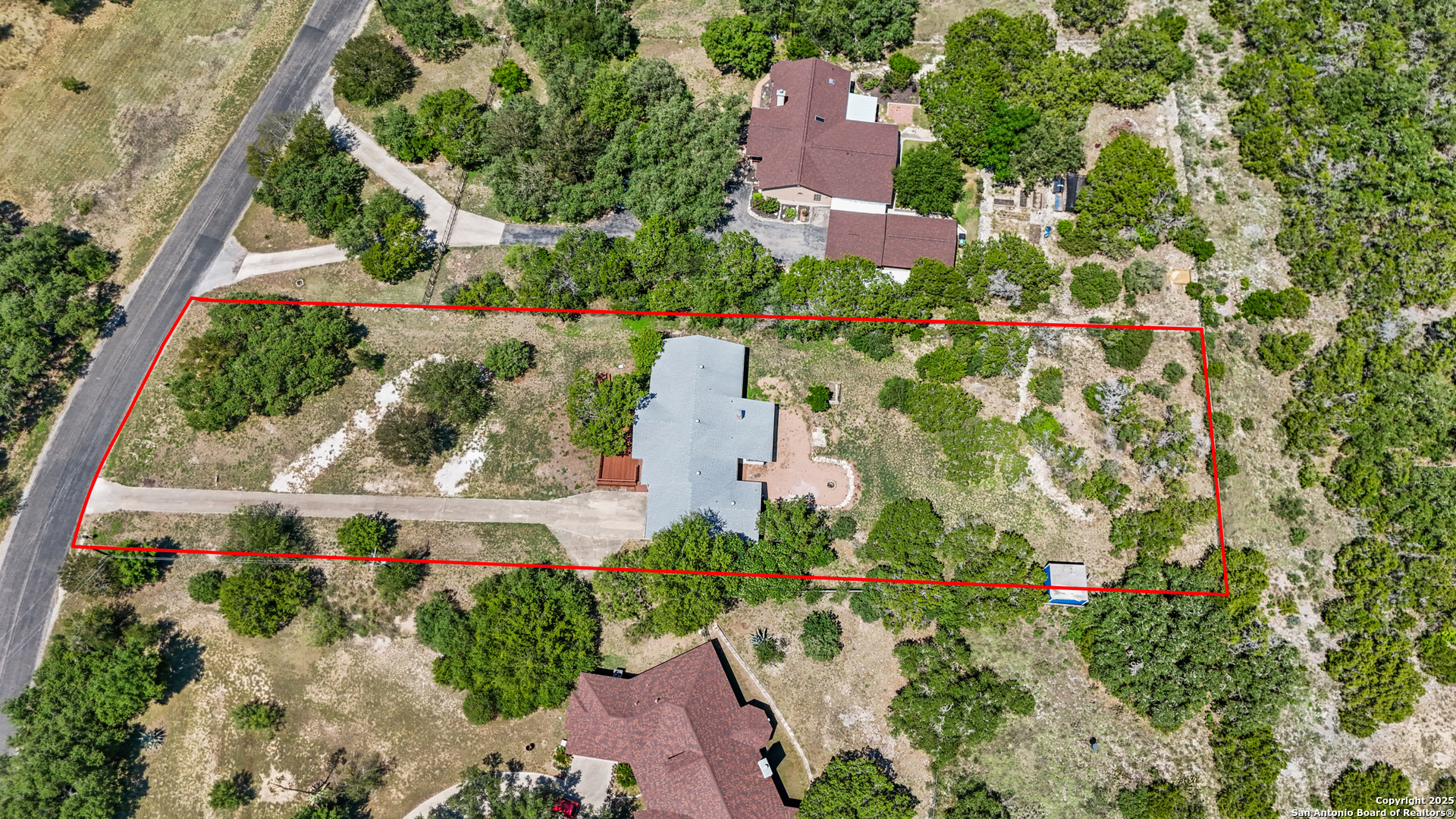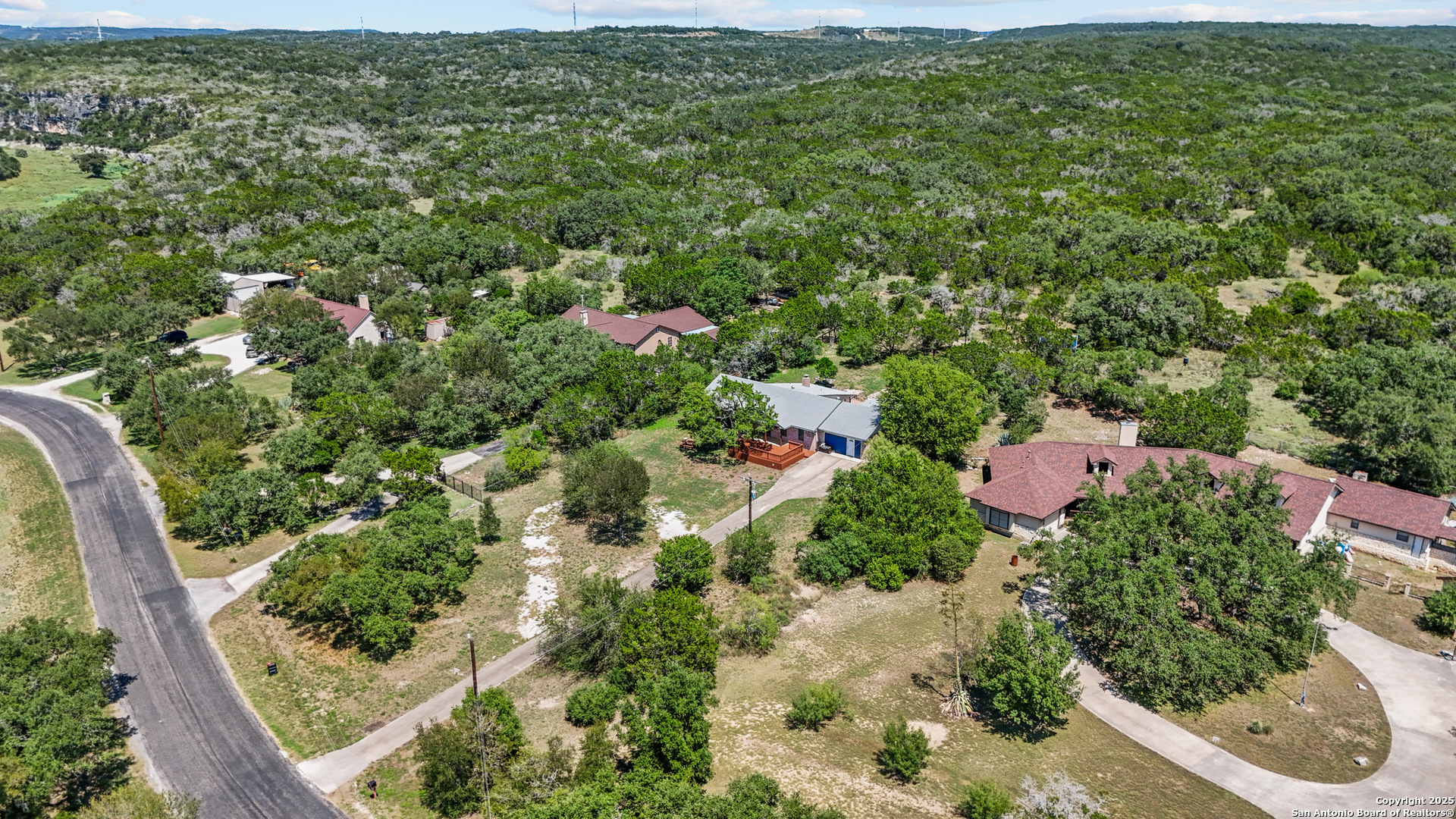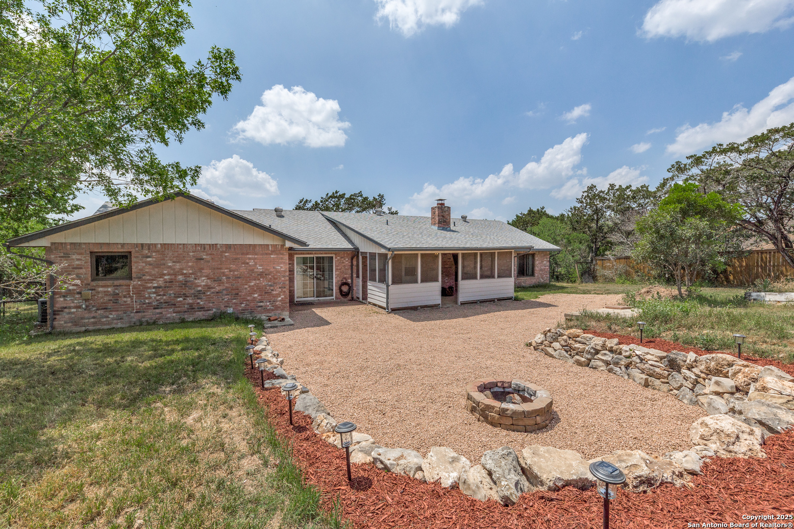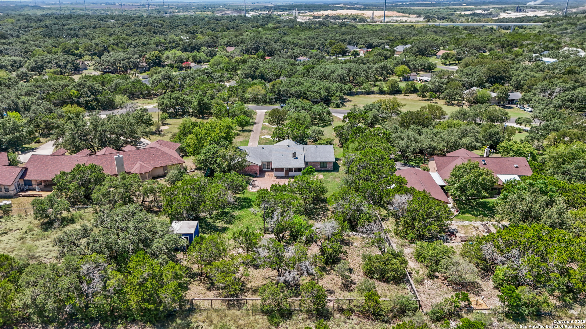 Set on nearly one acre in Geronimo Forest, this charming ranch-style home combines space, privacy, and flexibility - with a beautiful lot that backs to Government Canyon. Inside, you'll find two inviting living areas, a dedicated dining room, and a bright kitchen adjoined with a cozy family room featuring a brick floor-to-ceiling fireplace, adding warmth and charm. The expansive primary suite is a peaceful retreat with a sitting area, cedar-shelved walk-in closet, and an updated bath featuring a dual vanity, garden tub, and separate shower. A well-sized secondary bedroom and bathroom, and a fully converted, air-conditioned garage provide exceptional versatility, where this flex space can serve as a third bedroom, media room, game room, or hobby space. Outdoors, the property truly shines. The screened-in back porch and large covered patio offers the perfect space to relax or entertain, complete with a fire pit and tons of space to put in a pool or create your dream outdoor space. The expansive backyard is ideal for gatherings, gardening, or future additions, and even offers direct access to hiking trails. With no HOA, you can enjoy the freedom to truly make this property your own. All of this in a convenient location near dining, shopping, Lackland AFB, Hwy 211, Loop 1604, and only 5-mins from a new HEB opening this fall. A rare opportunity to enjoy Hill Country living with city conveniences close at hand!