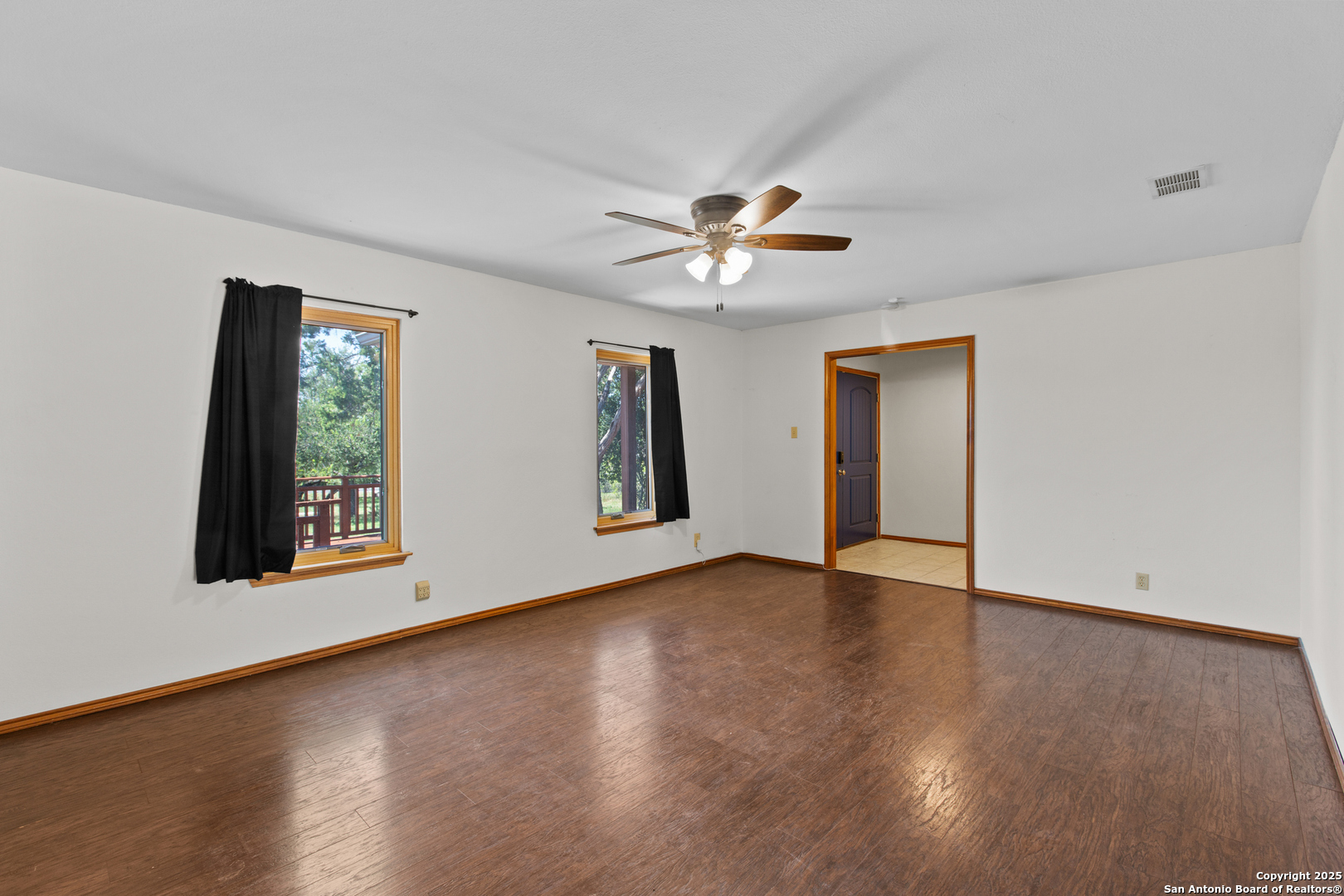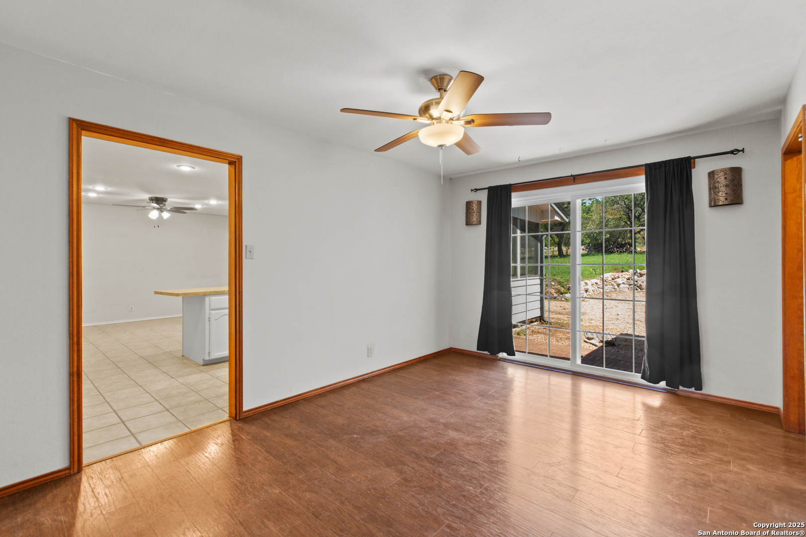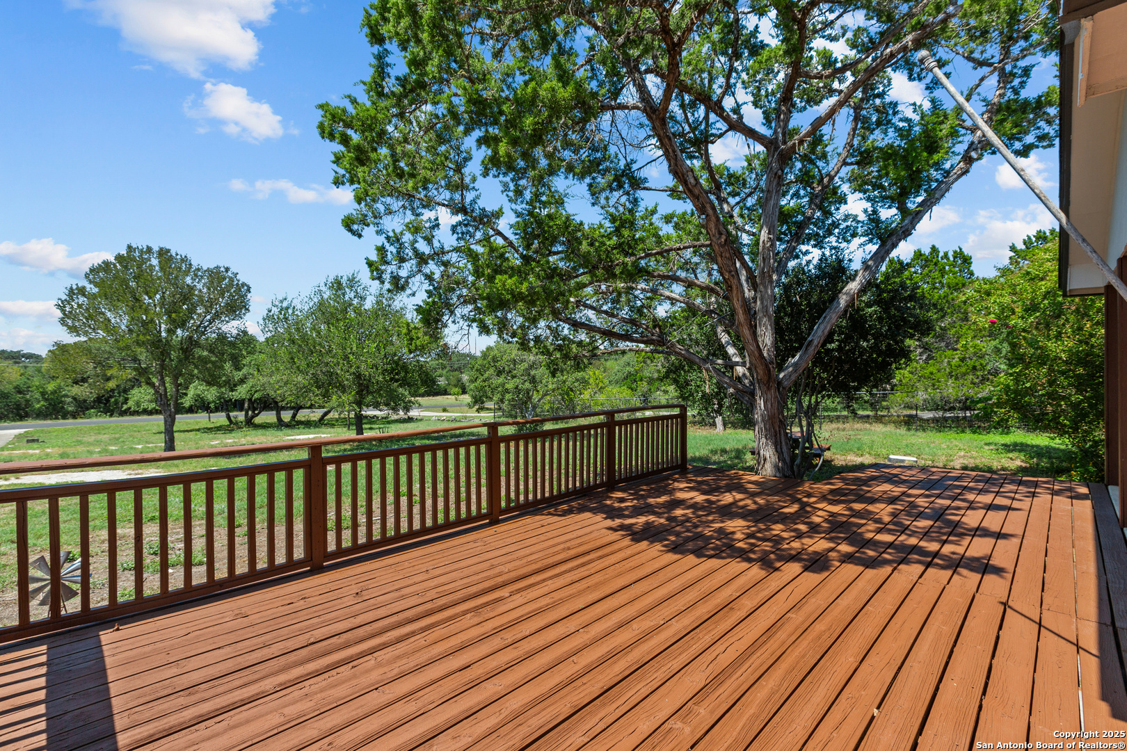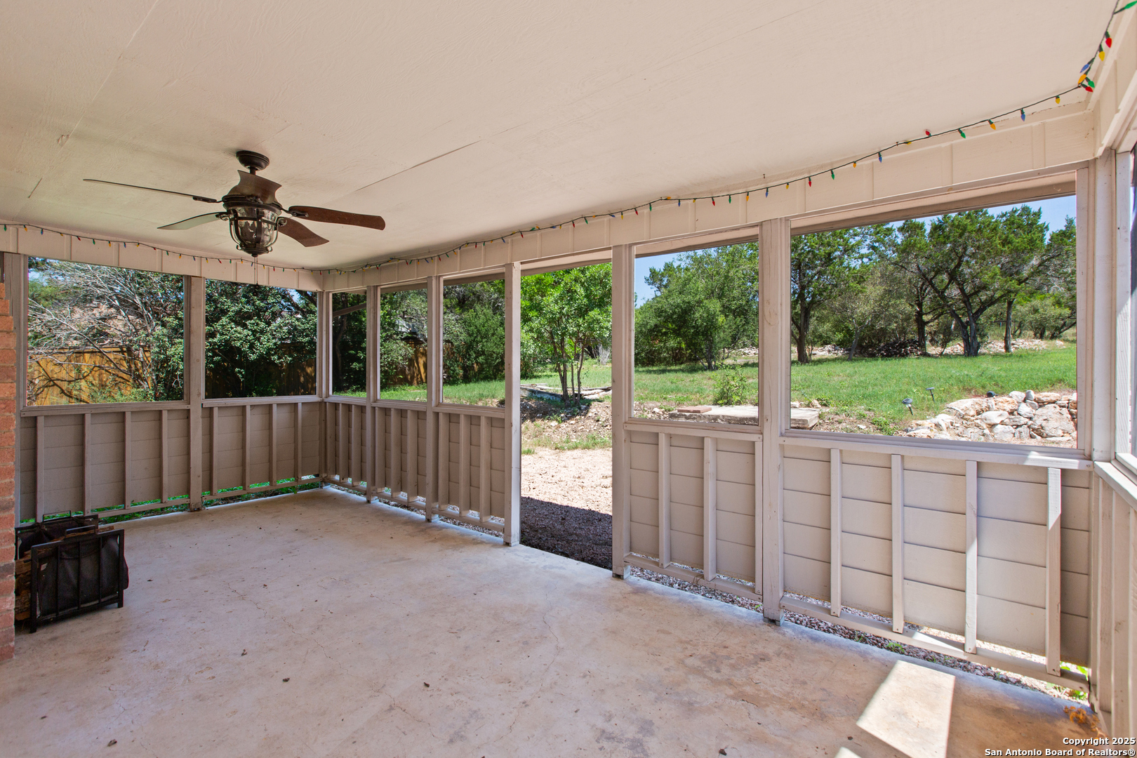 Set on nearly one acre in Geronimo Forest, this charming ranch-style home combines space, privacy, and flexibility - with a beautiful lot that backs to Government Canyon. Inside, you'll find two inviting living areas, a dedicated dining room, and a bright kitchen adjoined with a cozy family room featuring a brick floor-to-ceiling fireplace, adding warmth and charm. The expansive primary suite is a peaceful retreat with a sitting area, cedar-shelved walk-in closet, and an updated bath featuring a dual vanity, garden tub, and separate shower. A well-sized secondary bedroom and bathroom, and a fully converted, air-conditioned garage provide exceptional versatility, where this flex space can serve as a third bedroom, media room, game room, or hobby space. Outdoors, the property truly shines. The screened-in back porch and large covered patio offers the perfect space to relax or entertain, complete with a fire pit and tons of space to put in a pool or create your dream outdoor space. The expansive backyard is ideal for gatherings, gardening, or future additions, and even offers direct access to hiking trails. With no HOA, you can enjoy the freedom to truly make this property your own. All of this in a convenient location near dining, shopping, Lackland AFB, Hwy 211, Loop 1604, and only 5-mins from a new HEB opening this fall. A rare opportunity to enjoy Hill Country living with city conveniences close at hand!
