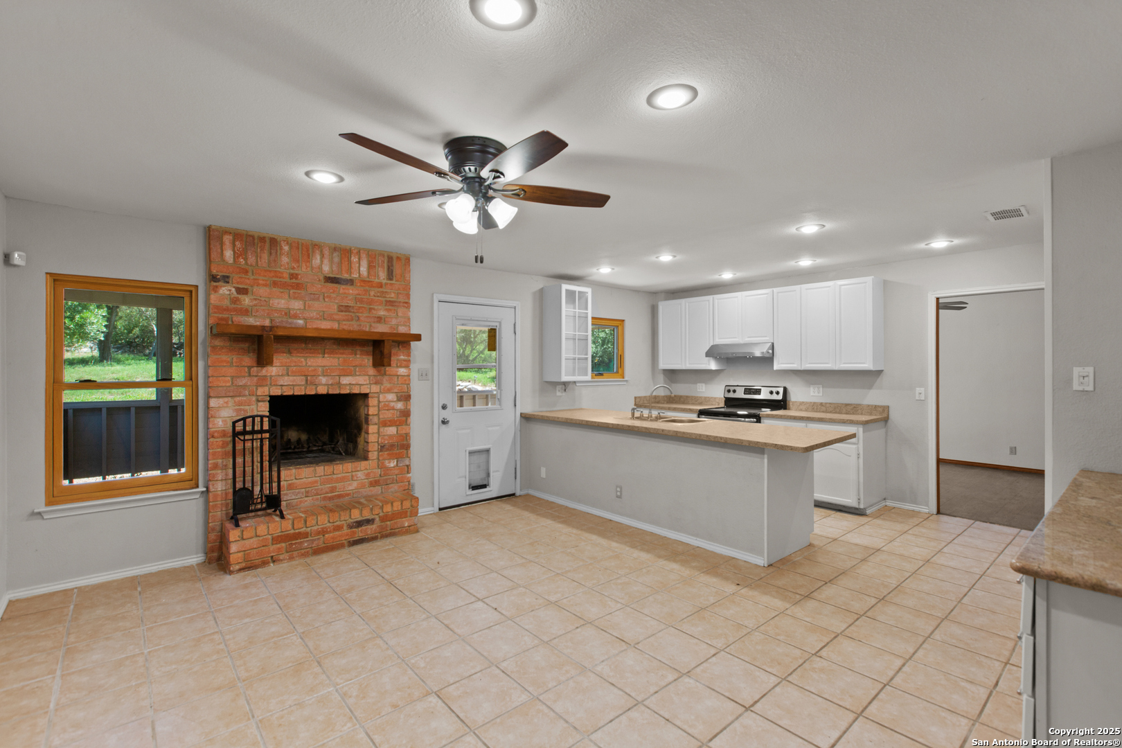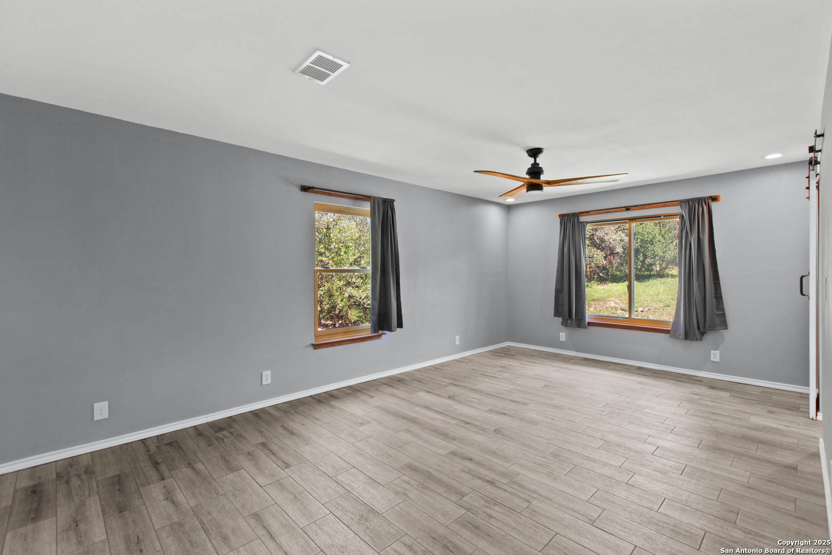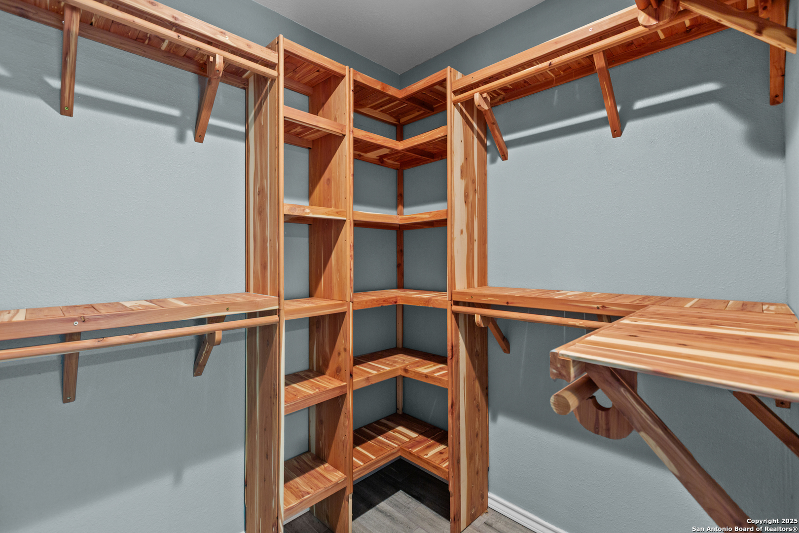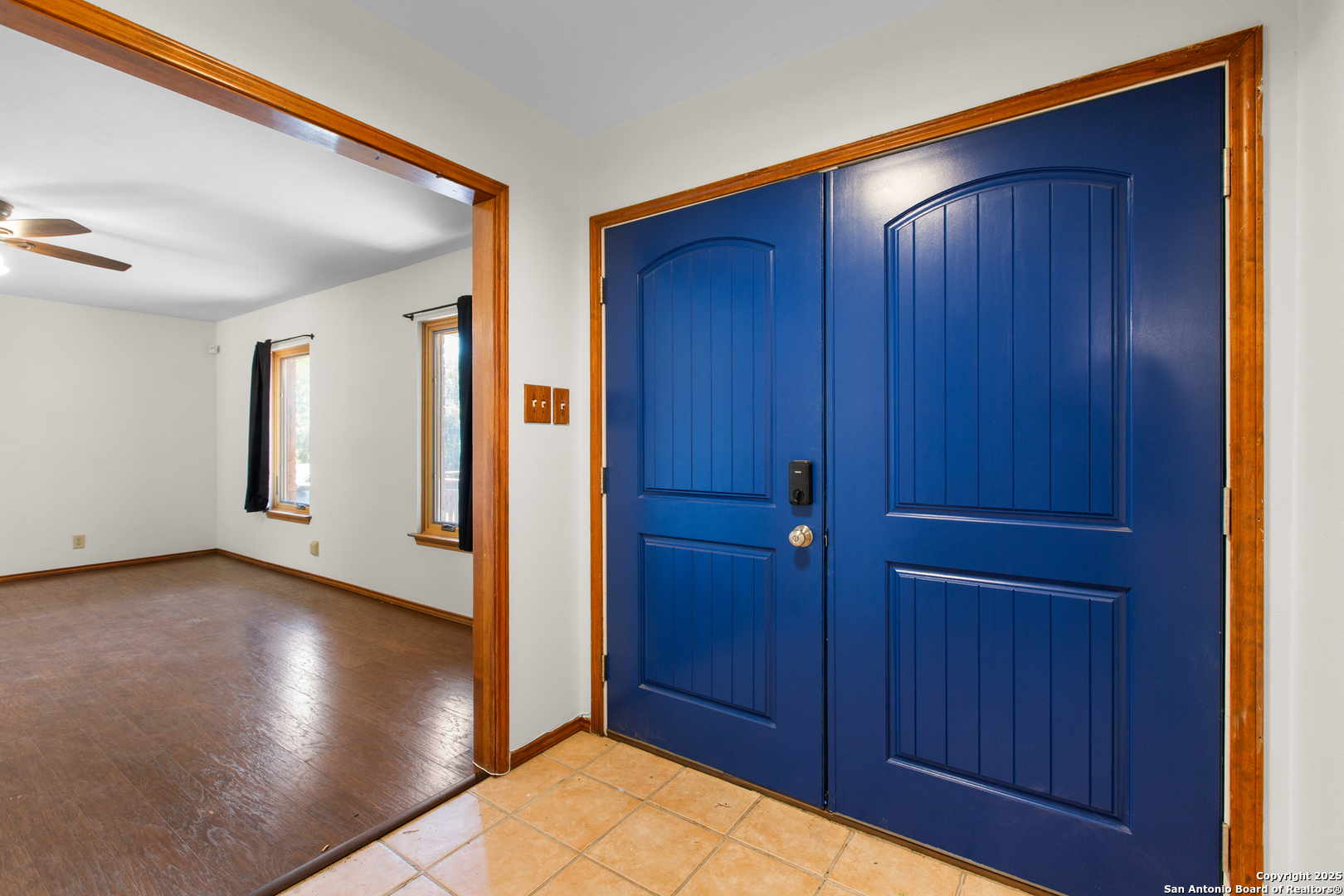 Set on nearly one acre in Geronimo Forest, this charming ranch-style home combines space, privacy, and flexibility - with a beautiful lot that backs to Government Canyon. Inside, you'll find two inviting living areas, a dedicated dining room, and a bright kitchen adjoined with a cozy family room featuring a brick floor-to-ceiling fireplace, adding warmth and charm. The expansive primary suite is a peaceful retreat with a sitting area, cedar-shelved walk-in closet, and an updated bath featuring a dual vanity, garden tub, and separate shower. A well-sized secondary bedroom and bathroom, and a fully converted, air-conditioned garage provide exceptional versatility, where this flex space can serve as a third bedroom, media room, game room, or hobby space. Outdoors, the property truly shines. The screened-in back porch and large covered patio offers the perfect space to relax or entertain, complete with a fire pit and tons of space to put in a pool or create your dream outdoor space. The expansive backyard is ideal for gatherings, gardening, or future additions, and even offers direct access to hiking trails. With no HOA, you can enjoy the freedom to truly make this property your own. All of this in a convenient location near dining, shopping, Lackland AFB, Hwy 211, Loop 1604, and only 5-mins from a new HEB opening this fall. A rare opportunity to enjoy Hill Country living with city conveniences close at hand!