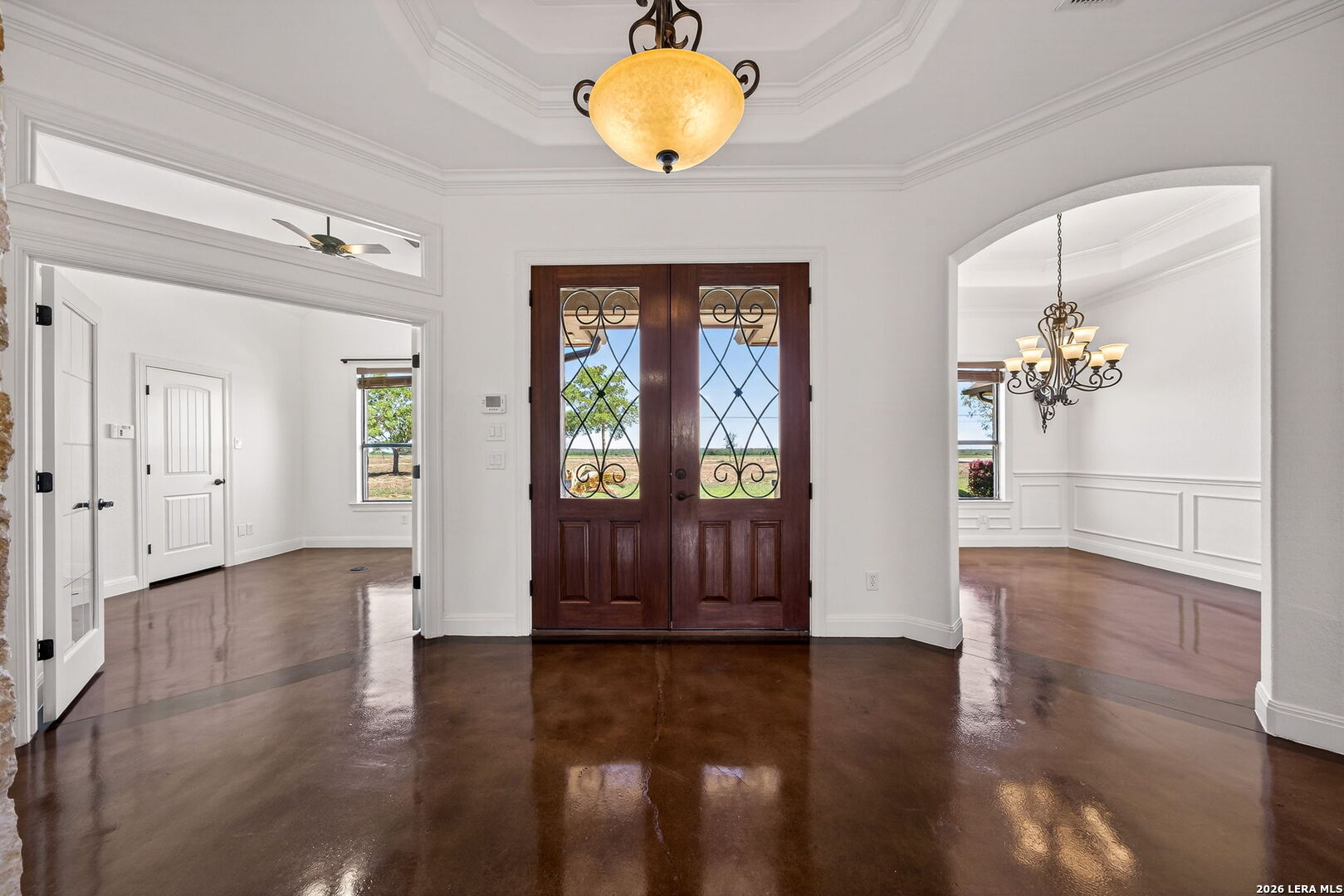 Welcome to this beautiful, deluxe, custom-built home. Nestled on a spacious 1.33-acre lot in Castroville, this property offers privacy, comfort, and exceptional design with no HOA restrictions. From the moment you arrive, you'll appreciate the quality craftsmanship and thoughtful upgrades throughout, including granite countertops, stained concrete flooring, ceramic tile, crown molding, and elegant light fixtures and hardware. The well-designed layout features a private study and a formal dining room, creating the perfect setting for both everyday living and entertaining. The expansive primary suite is a true retreat, complete with a dedicated exercise room and a luxurious, spa-like bath featuring a soaking tub, walk-through shower, and an oversized walk-in closet with custom built-ins. Upstairs, enjoy a spacious game room with a media area and half bath-ideal for hosting gatherings or relaxing with family. The generously sized secondary bedrooms are connected by a Jack-and-Jill bathroom, offering both comfort and convenience. Step outside and take advantage of the wide-open space, complete with a privacy fence, sprinkler system, storage shed, and additional parking for your RV or boat. Additional highlights include surround sound throughout and a three-car garage. With 4 bedrooms, 3.5 baths, and a perfect balance of luxury and functionality, this home offers peaceful country-style living just minutes from Castroville.