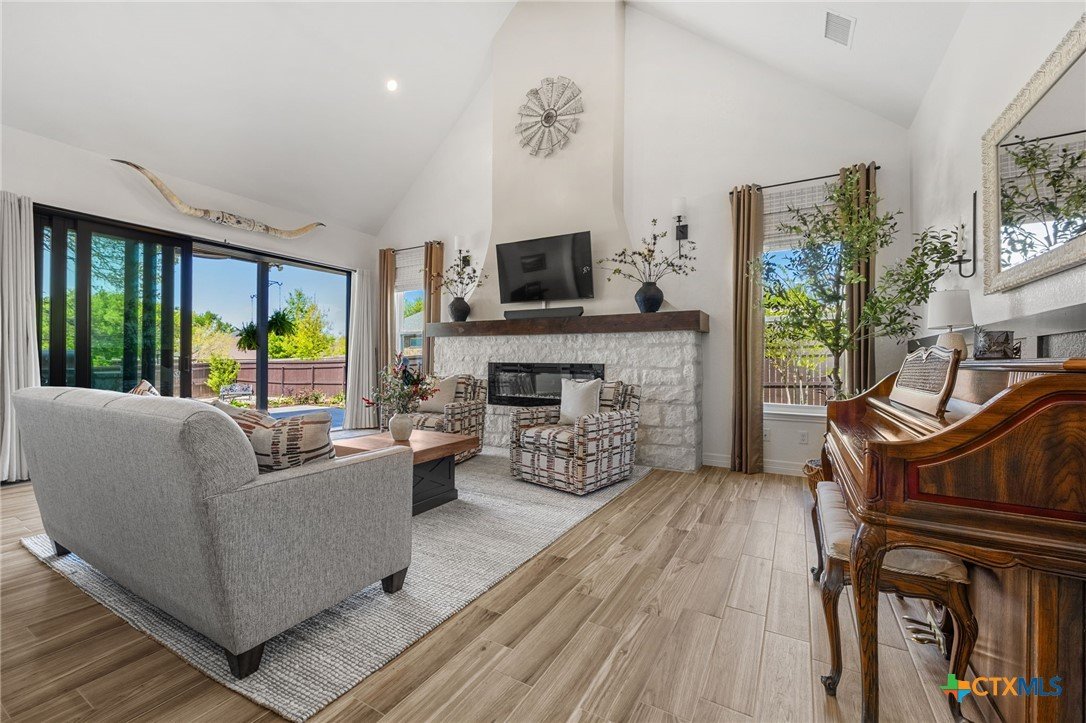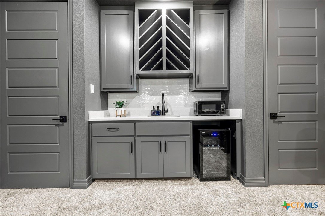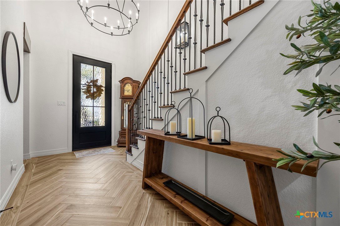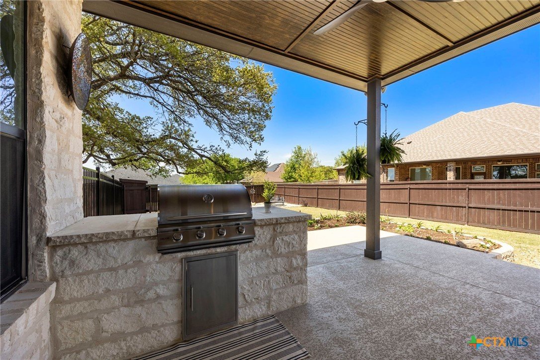 Welcome to elevated living in the highly sought-after Bella Charca community. Situated on a premium corner lot, this stunning 3,171 sq ft home offers the perfect blend of luxury, space, and designer finishes—truly better than new with over $27,000 in professional landscaping already complete. Step inside to experience soaring 9–20 foot ceilings, 8-foot interior doors, and a dramatic 9-foot steel entry door that sets the tone for the level of craftsmanship found throughout. The open-concept design is enhanced by custom touches including board and batten accents, shiplap detailing, and upgraded designer lighting that creates a warm yet sophisticated atmosphere. The chef’s kitchen features quartz countertops, ample workspace, and a seamless flow into the main living and dining areas—ideal for both everyday living and entertaining. A dedicated media room with a wet bar offers the perfect space for movie nights or hosting guests in style. One of the home’s standout features is the expansive 4-panel sliding glass door that opens to a covered patio, creating a true indoor-outdoor living experience. The backyard is designed for enjoyment, complete with a built-in grill and beautifully landscaped surroundings-perfect for entertaining or relaxing evenings at home. Designed for year-round comfort and energy efficiency, the home also features closed-cell insulation, helping maintain interior temperatures while enhancing durability and reducing energy costs. The exterior is equally impressive, featuring a side-entry garage for enhanced curb appeal and a premium corner lot that provides both space and presence. Located in the gated Bella Charca community, this home stands out as a rare opportunity to own a truly upgraded, move-in ready property that combines modern design with timeless elegance. Schedule your private showing today and experience the difference for yourself.