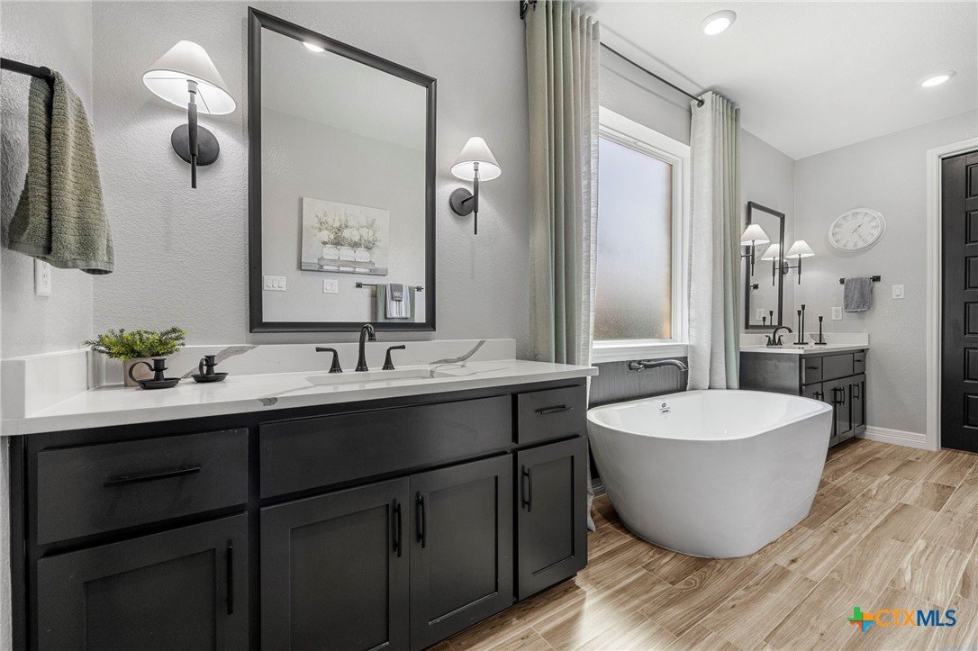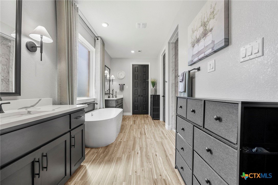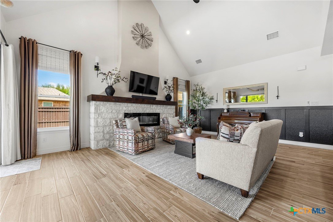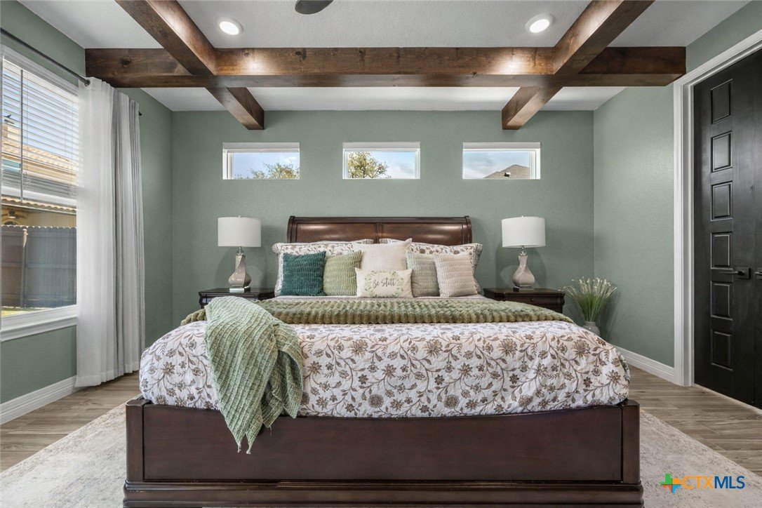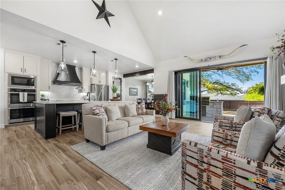 Welcome to elevated living in the highly sought-after Bella Charca community. Situated on a premium corner lot, this stunning 3,171 sq ft home offers the perfect blend of luxury, space, and designer finishes—truly better than new with over $27,000 in professional landscaping already complete. Step inside to experience soaring 9–20 foot ceilings, 8-foot interior doors, and a dramatic 9-foot steel entry door that sets the tone for the level of craftsmanship found throughout. The open-concept design is enhanced by custom touches including board and batten accents, shiplap detailing, and upgraded designer lighting that creates a warm yet sophisticated atmosphere. The chef’s kitchen features quartz countertops, ample workspace, and a seamless flow into the main living and dining areas—ideal for both everyday living and entertaining. A dedicated media room with a wet bar offers the perfect space for movie nights or hosting guests in style. One of the home’s standout features is the expansive 4-panel sliding glass door that opens to a covered patio, creating a true indoor-outdoor living experience. The backyard is designed for enjoyment, complete with a built-in grill and beautifully landscaped surroundings-perfect for entertaining or relaxing evenings at home. Designed for year-round comfort and energy efficiency, the home also features closed-cell insulation, helping maintain interior temperatures while enhancing durability and reducing energy costs. The exterior is equally impressive, featuring a side-entry garage for enhanced curb appeal and a premium corner lot that provides both space and presence. Located in the gated Bella Charca community, this home stands out as a rare opportunity to own a truly upgraded, move-in ready property that combines modern design with timeless elegance. Schedule your private showing today and experience the difference for yourself.