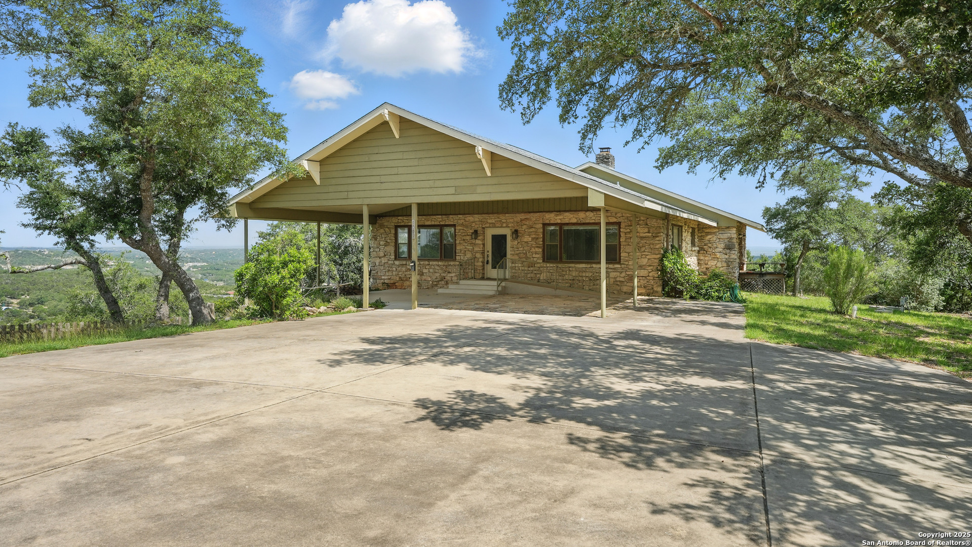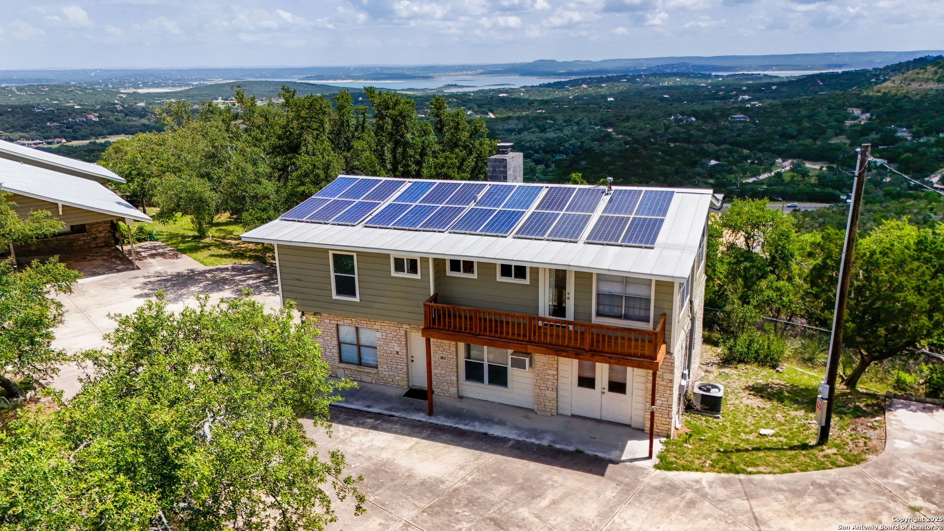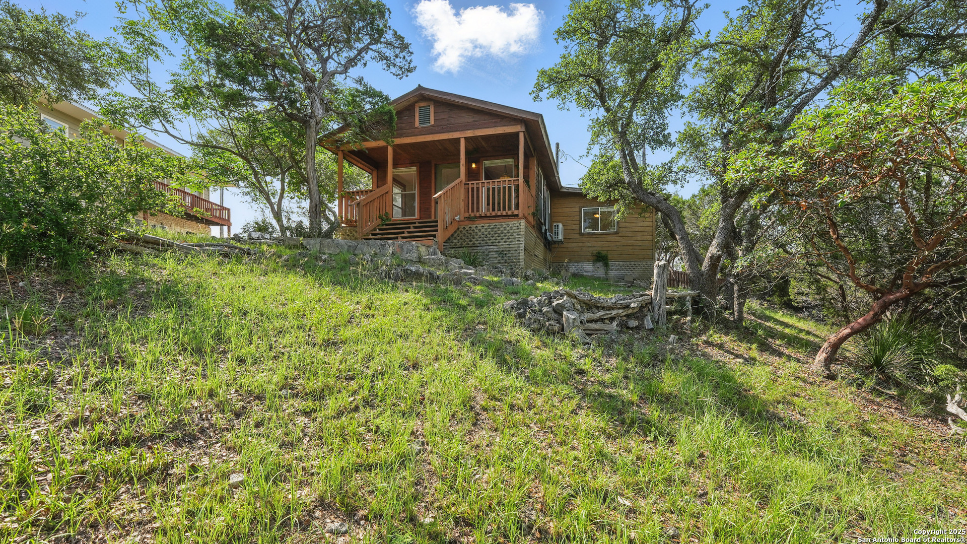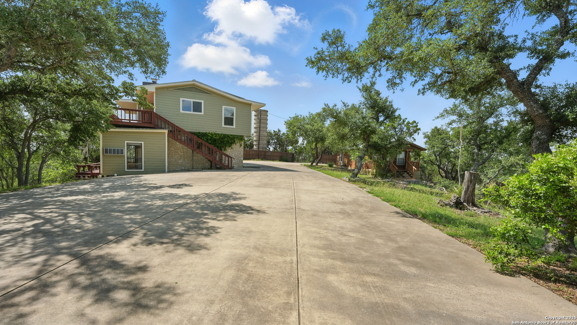 Secluded, private homes with stunning views of Canyon Lake, the hill country, and the city of Startzville. A little over an acre of the property is shared by 3 different residences that sit on a hill top with panoramic views of the southside of Canyon Lake. Located at the end of a private road, you drive in through your private gated entry. The main residence exterior/interior walls are made of solid stone/rock. The floors and ceilings are made of pine. It has 2 large bedrooms with ensuites and walk-in closets, a large kitchen and open living area with a rock fireplace. From anywhere in the house, the panoramic views are endless. With a large cover carport, and 2 separate patios off the living room, you can enjoy the peace of the hill country with views of Canyon Lake. The 2-story home accommodates guests with over 3 beds and 4 full baths and large living room with a rock fire place. The deck along the entire back side of the 2nd story looks out towards Canyon Lake and the hill country with exceptional views. On the lower level is another deck and a small room once used as a sewing room. The workshop is located on the bottom floor with the well, the water softener, solar panels and laundry hookups in a converted garage area. Plenty of storage for all your outdoor essentials. The cabin or casita is 1 bedroom, 1 bath, with a large room for gathering and another area for eating, a small countertop space with a sink and front porch that overlooks the city of Startzville. The area between the homes is concrete slab with plenty of room for lake toys, cars, and whatever you would want it for. All of this would be behind the automatic gate for security and privacy.
