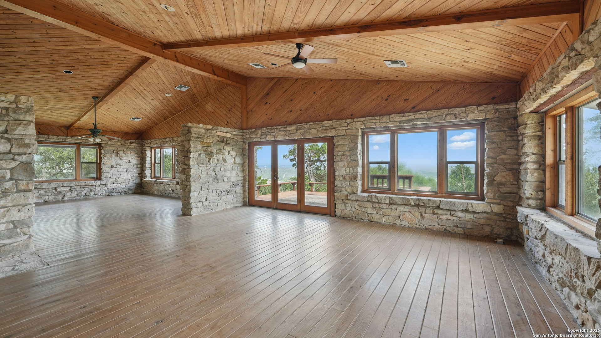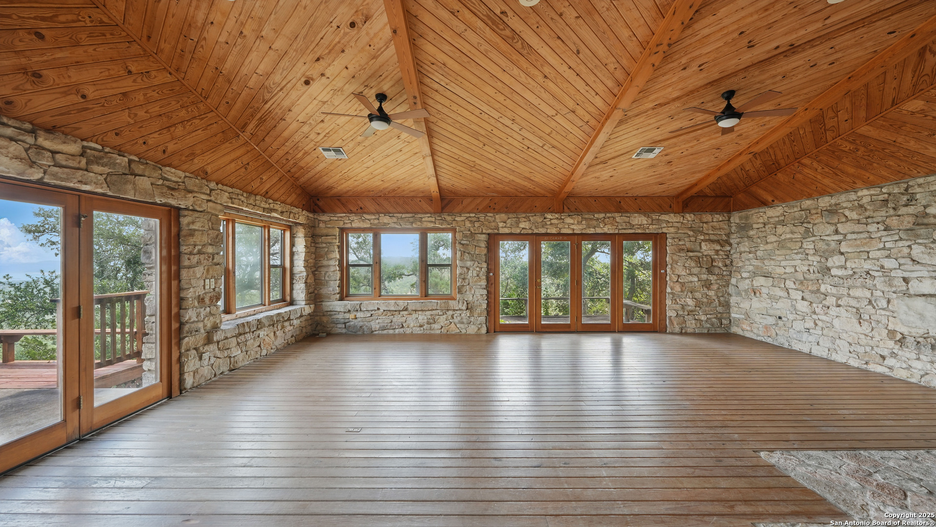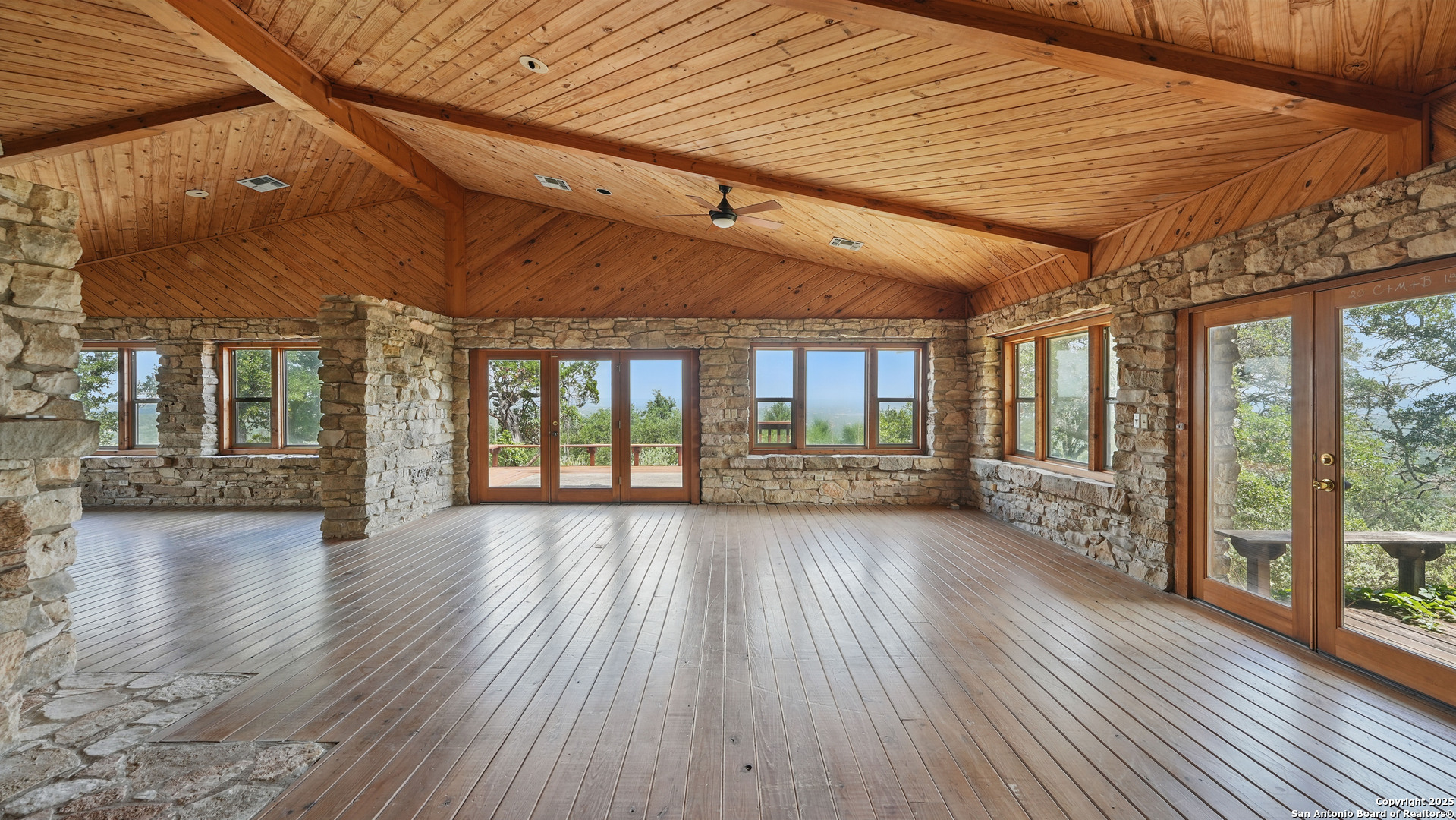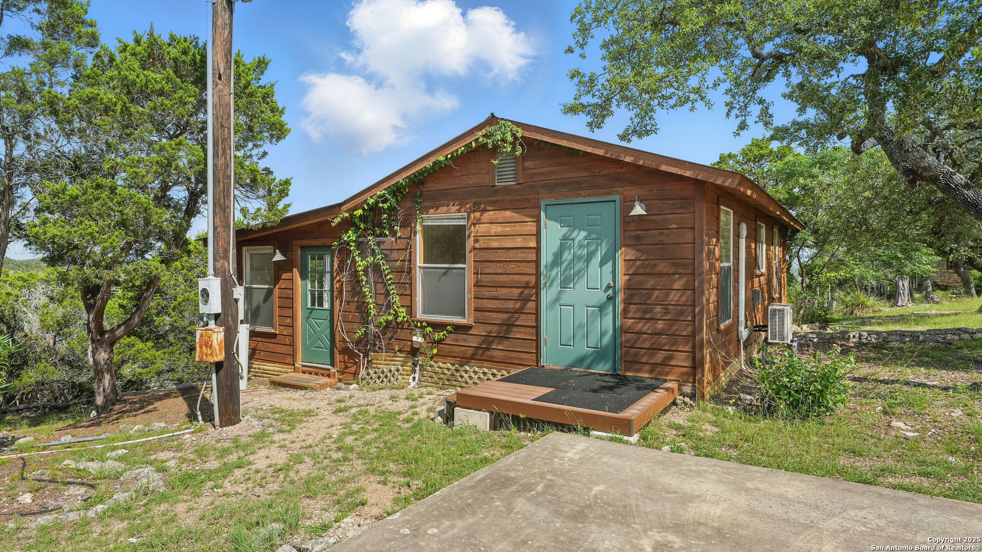 Secluded, private homes with stunning views of Canyon Lake, the hill country, and the city of Startzville. A little over an acre of the property is shared by 3 different residences that sit on a hill top with panoramic views of the southside of Canyon Lake. Located at the end of a private road, you drive in through your private gated entry. The main residence exterior/interior walls are made of solid stone/rock. The floors and ceilings are made of pine. It has 2 large bedrooms with ensuites and walk-in closets, a large kitchen and open living area with a rock fireplace. From anywhere in the house, the panoramic views are endless. With a large cover carport, and 2 separate patios off the living room, you can enjoy the peace of the hill country with views of Canyon Lake. The 2-story home accommodates guests with over 3 beds and 4 full baths and large living room with a rock fire place. The deck along the entire back side of the 2nd story looks out towards Canyon Lake and the hill country with exceptional views. On the lower level is another deck and a small room once used as a sewing room. The workshop is located on the bottom floor with the well, the water softener, solar panels and laundry hookups in a converted garage area. Plenty of storage for all your outdoor essentials. The cabin or casita is 1 bedroom, 1 bath, with a large room for gathering and another area for eating, a small countertop space with a sink and front porch that overlooks the city of Startzville. The area between the homes is concrete slab with plenty of room for lake toys, cars, and whatever you would want it for. All of this would be behind the automatic gate for security and privacy.