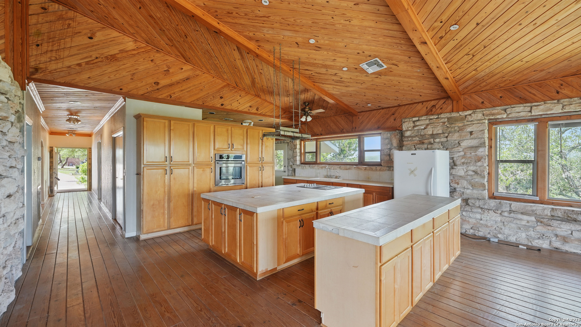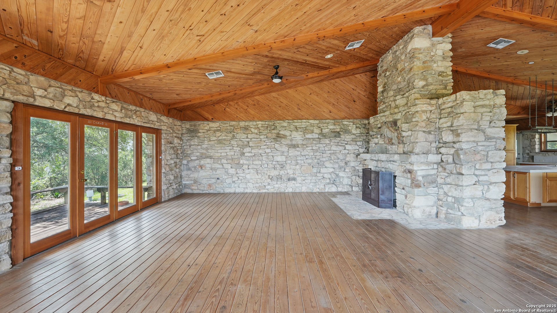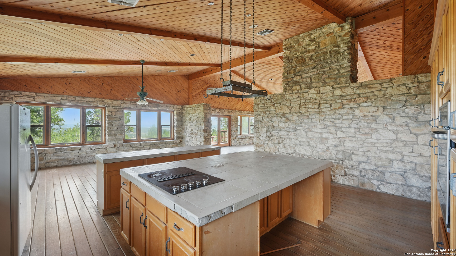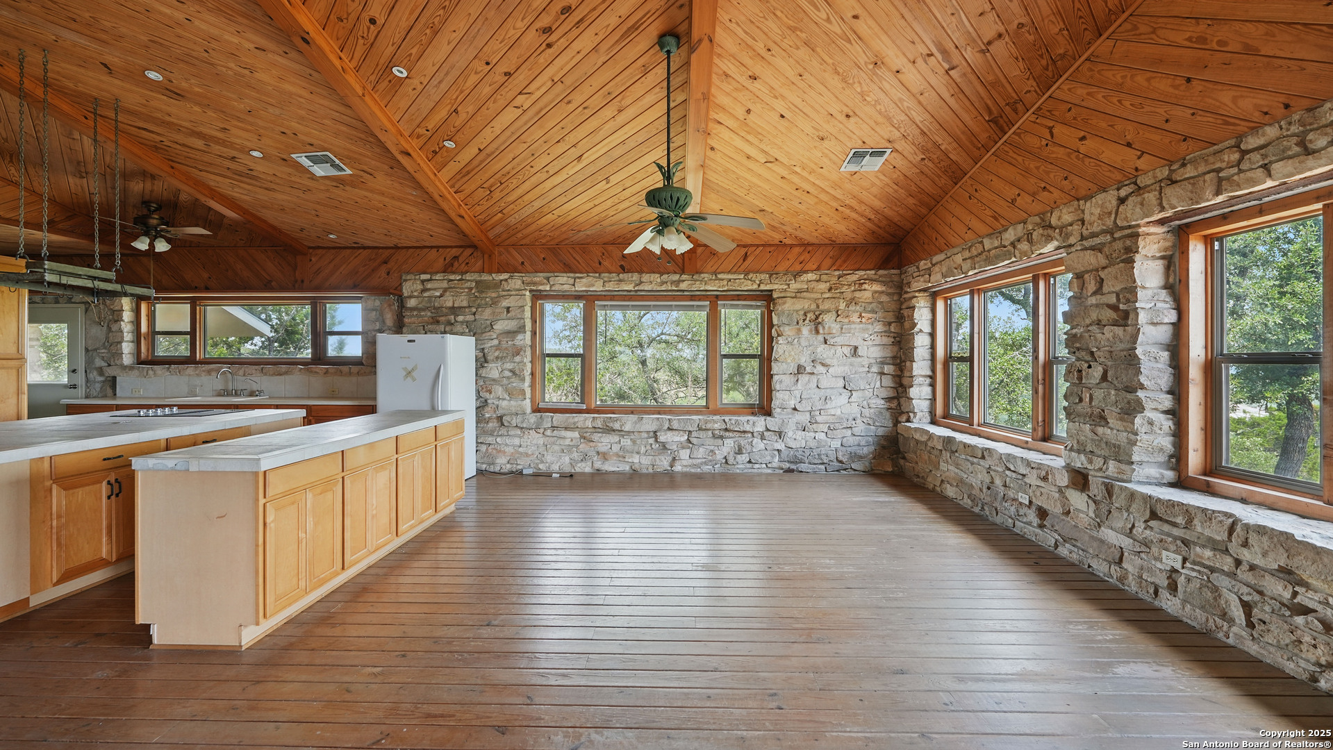 Secluded, private homes with stunning views of Canyon Lake, the hill country, and the city of Startzville. A little over an acre of the property is shared by 3 different residences that sit on a hill top with panoramic views of the southside of Canyon Lake. Located at the end of a private road, you drive in through your private gated entry. The main residence exterior/interior walls are made of solid stone/rock. The floors and ceilings are made of pine. It has 2 large bedrooms with ensuites and walk-in closets, a large kitchen and open living area with a rock fireplace. From anywhere in the house, the panoramic views are endless. With a large cover carport, and 2 separate patios off the living room, you can enjoy the peace of the hill country with views of Canyon Lake. The 2-story home accommodates guests with over 3 beds and 4 full baths and large living room with a rock fire place. The deck along the entire back side of the 2nd story looks out towards Canyon Lake and the hill country with exceptional views. On the lower level is another deck and a small room once used as a sewing room. The workshop is located on the bottom floor with the well, the water softener, solar panels and laundry hookups in a converted garage area. Plenty of storage for all your outdoor essentials. The cabin or casita is 1 bedroom, 1 bath, with a large room for gathering and another area for eating, a small countertop space with a sink and front porch that overlooks the city of Startzville. The area between the homes is concrete slab with plenty of room for lake toys, cars, and whatever you would want it for. All of this would be behind the automatic gate for security and privacy.