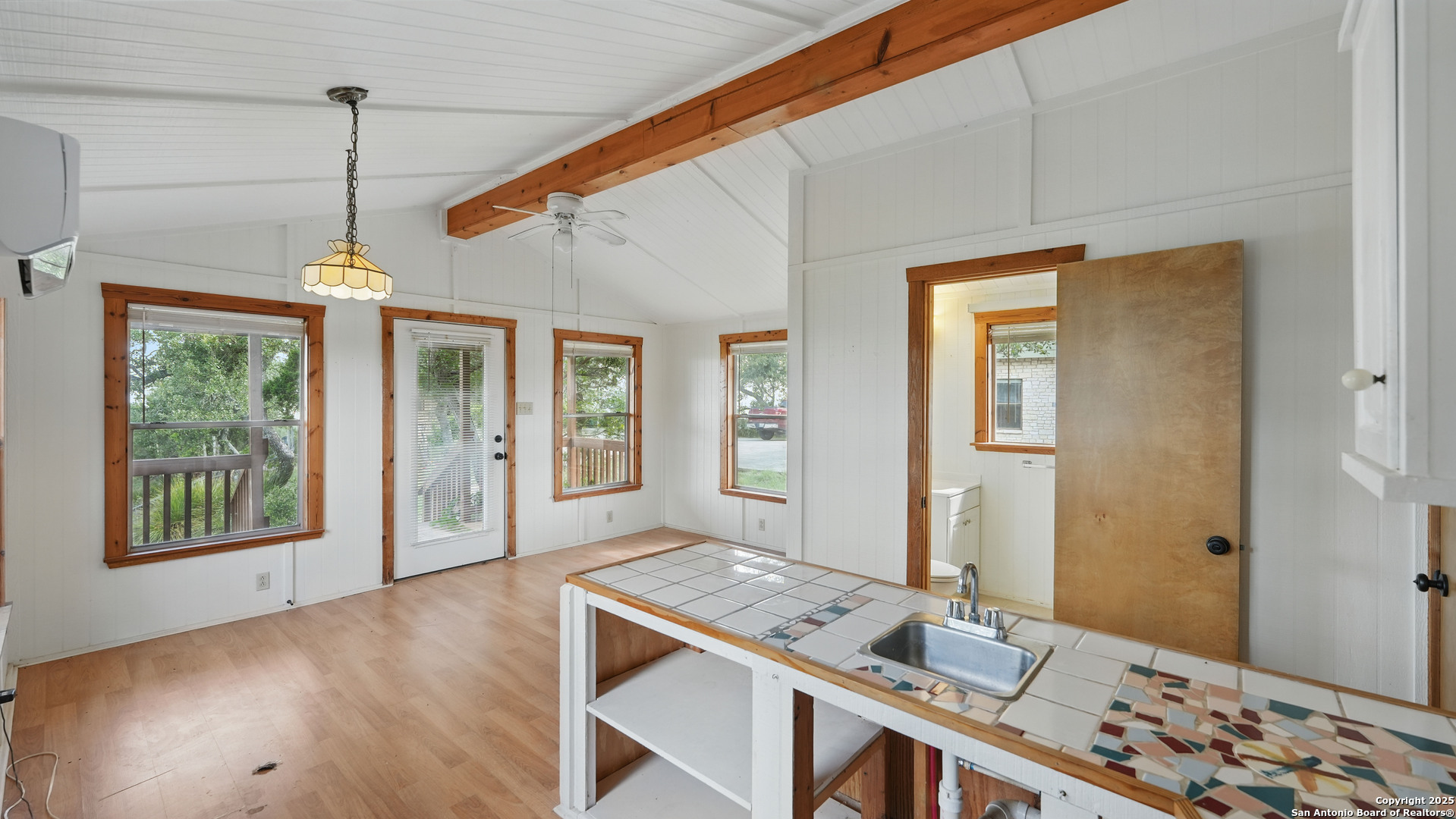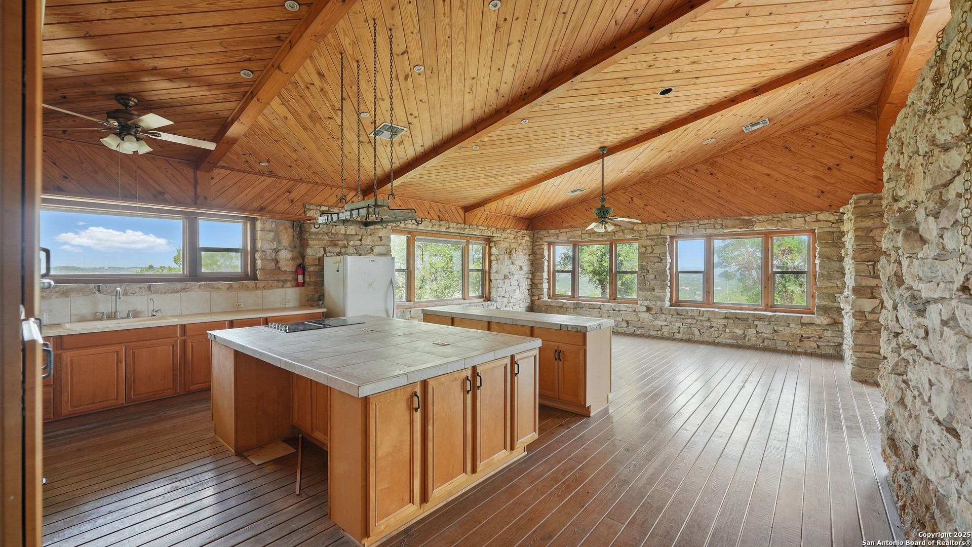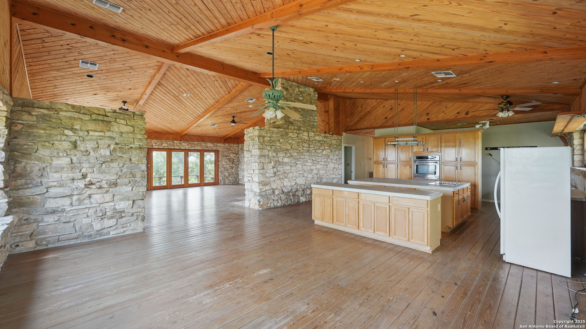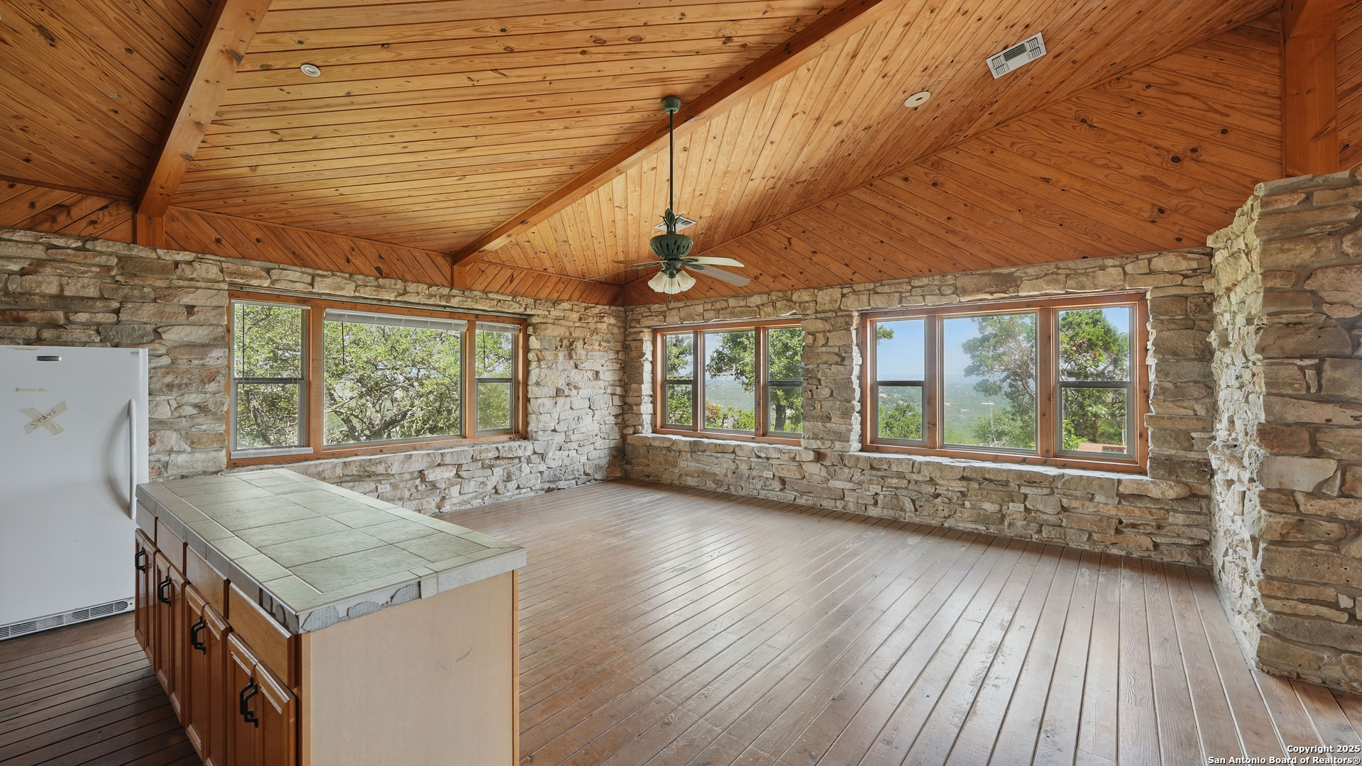 Secluded, private homes with stunning views of Canyon Lake, the hill country, and the city of Startzville. A little over an acre of the property is shared by 3 different residences that sit on a hill top with panoramic views of the southside of Canyon Lake. Located at the end of a private road, you drive in through your private gated entry. The main residence exterior/interior walls are made of solid stone/rock. The floors and ceilings are made of pine. It has 2 large bedrooms with ensuites and walk-in closets, a large kitchen and open living area with a rock fireplace. From anywhere in the house, the panoramic views are endless. With a large cover carport, and 2 separate patios off the living room, you can enjoy the peace of the hill country with views of Canyon Lake. The 2-story home accommodates guests with over 3 beds and 4 full baths and large living room with a rock fire place. The deck along the entire back side of the 2nd story looks out towards Canyon Lake and the hill country with exceptional views. On the lower level is another deck and a small room once used as a sewing room. The workshop is located on the bottom floor with the well, the water softener, solar panels and laundry hookups in a converted garage area. Plenty of storage for all your outdoor essentials. The cabin or casita is 1 bedroom, 1 bath, with a large room for gathering and another area for eating, a small countertop space with a sink and front porch that overlooks the city of Startzville. The area between the homes is concrete slab with plenty of room for lake toys, cars, and whatever you would want it for. All of this would be behind the automatic gate for security and privacy.