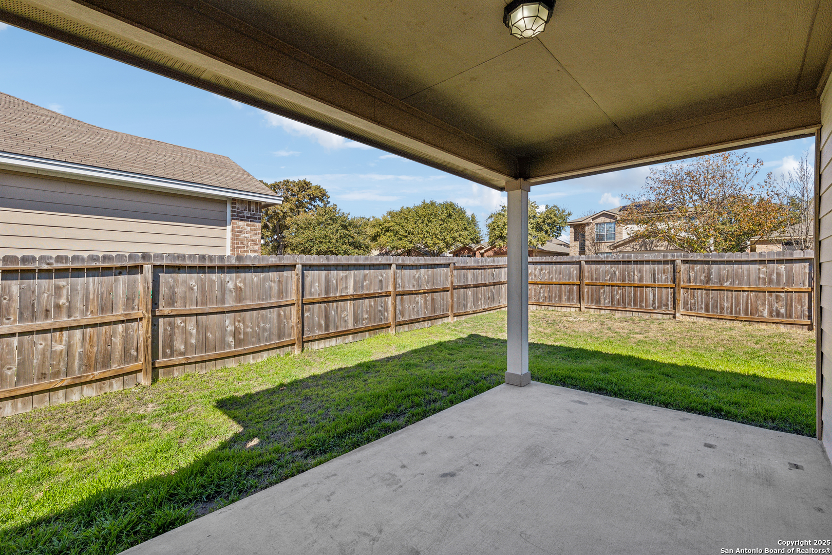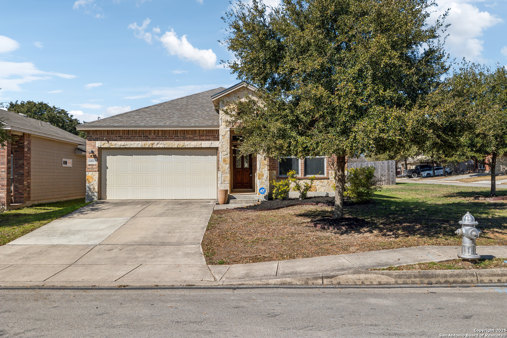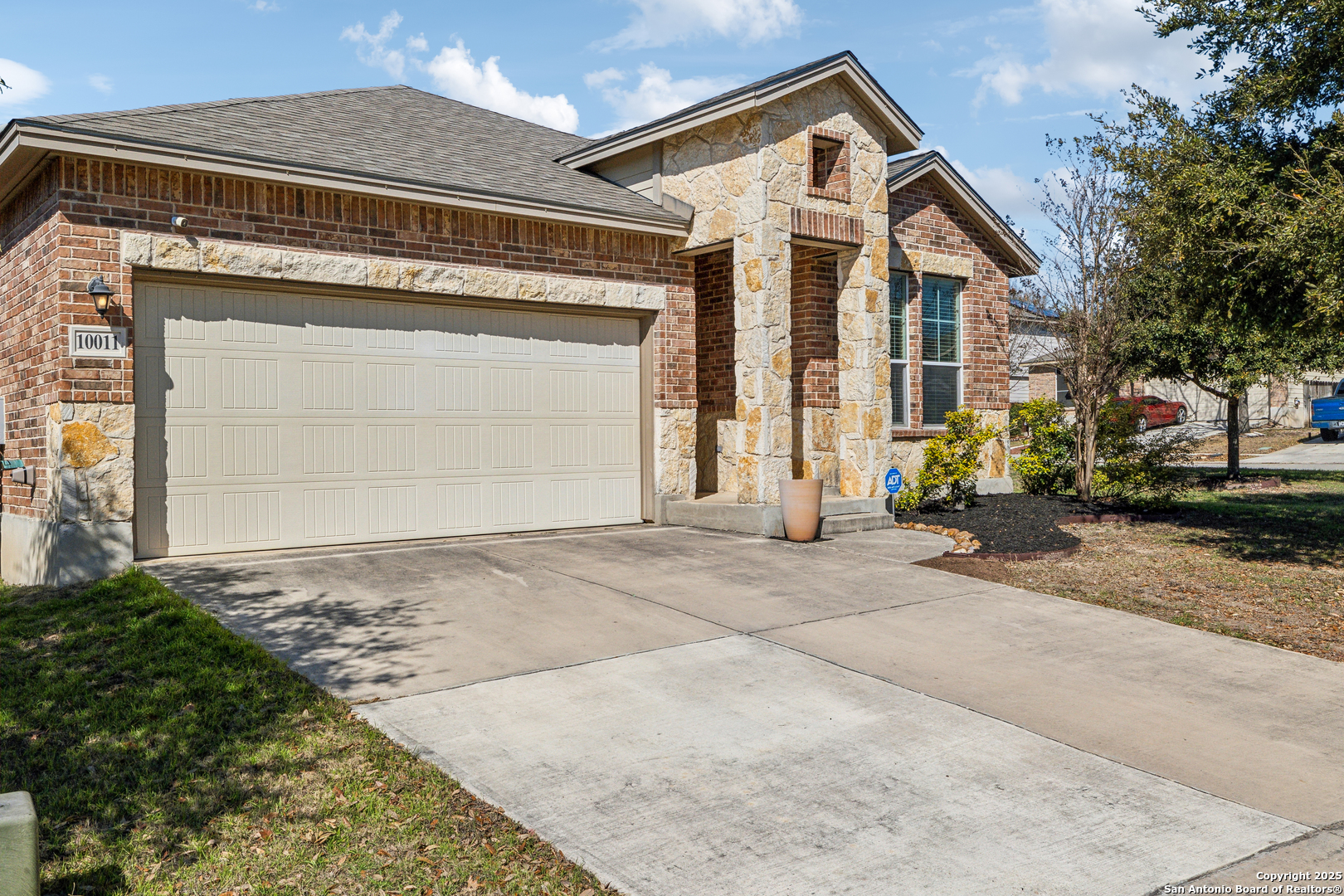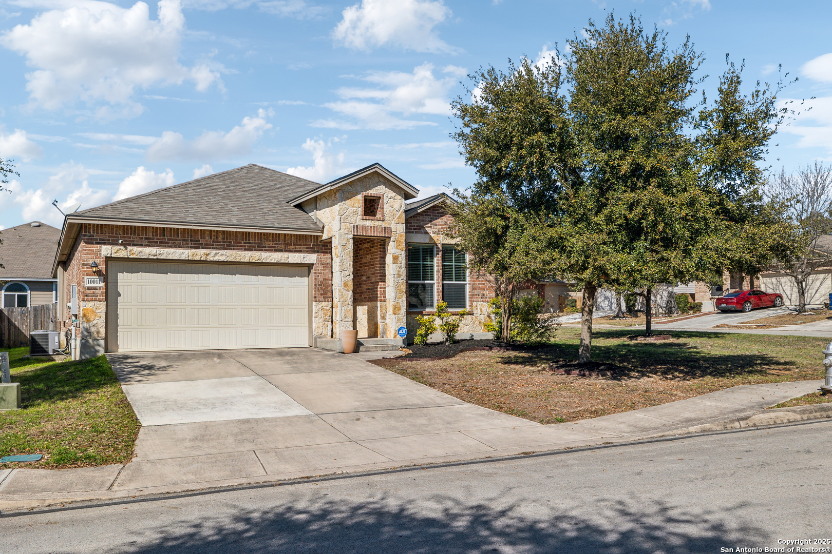 Nestled in the desirable Wildhorse neighborhood, this charming brick home at 10011 Chariot Trail offers a blend of comfort, convenience, and style. Nature enthusiasts will appreciate its proximity to Government Canyon State Natural Area, perfect for hiking and outdoor adventures. Step inside to discover an inviting open floor plan with abundant natural light, creating a warm and airy atmosphere. The HVAC system was replaced in 2024, ensuring year-round comfort. The home features a modern kitchen with granite countertops, stainless steel appliances, and ample cabinet space, seamlessly flowing into the dining and living areas, perfect for entertaining. The stylish wood-look flooring enhances the home's charm and complements the contemporary finishes. The spacious primary suite provides a relaxing retreat with its elegant ensuite bathroom, complete with dual sinks, a garden tub, and a separate walk-in shower. The additional bedrooms are generously sized. A dedicated study, which could also serve as a TV room, adds versatility to the living space. Enjoy outdoor living in the private backyard, featuring a covered patio ideal for morning coffee or evening gatherings. Mature trees add to the home's curb appeal. With its prime location near the neighborhood pool, just a few blocks from Krueger Elementary School, and close to grocery stores, restaurants, and other amenities, this residence is ideal for families seeking a welcoming environment., this residence is ideal for families seeking a welcoming environment. Don't miss this opportunity to experience the best of Wildhorse living!