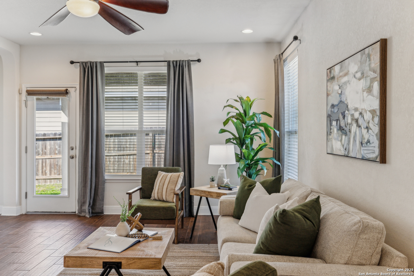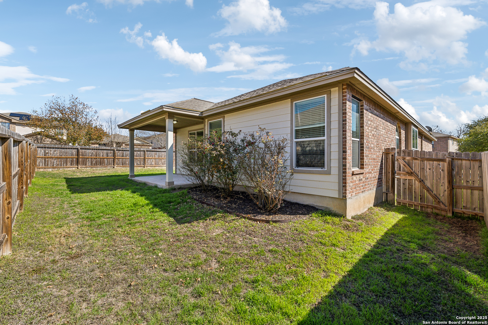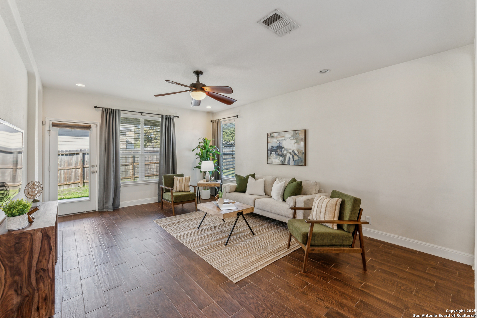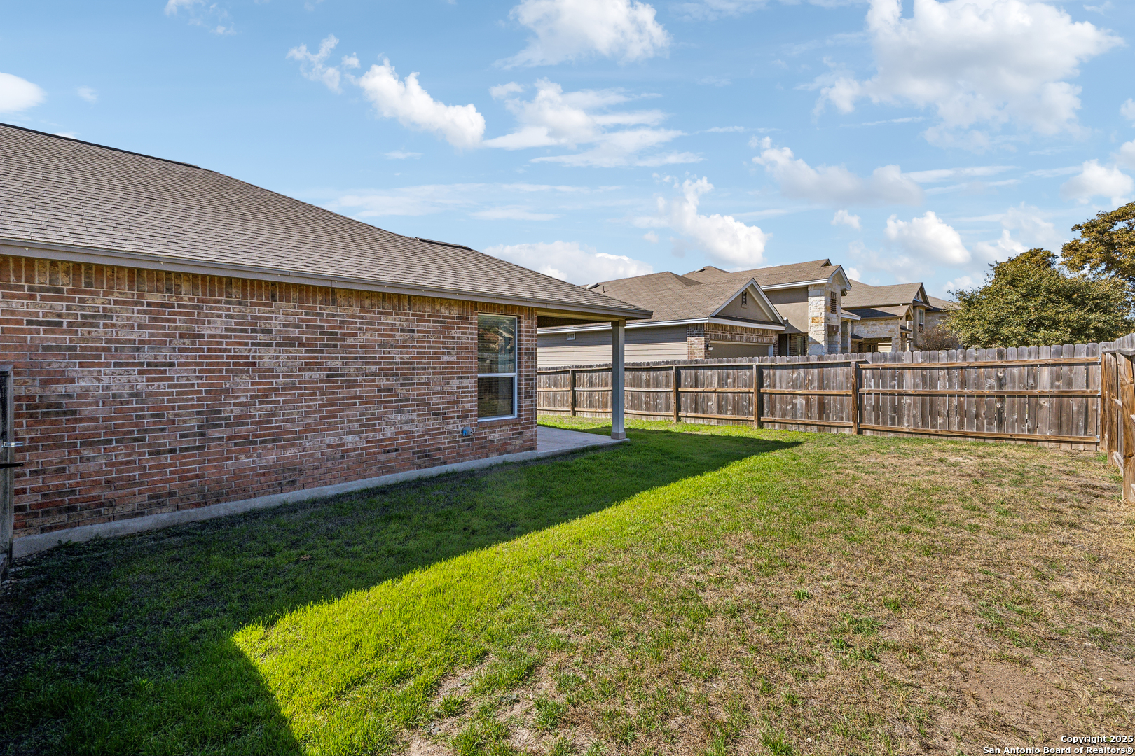 Nestled in the desirable Wildhorse neighborhood, this charming brick home at 10011 Chariot Trail offers a blend of comfort, convenience, and style. Nature enthusiasts will appreciate its proximity to Government Canyon State Natural Area, perfect for hiking and outdoor adventures. Step inside to discover an inviting open floor plan with abundant natural light, creating a warm and airy atmosphere. The HVAC system was replaced in 2024, ensuring year-round comfort. The home features a modern kitchen with granite countertops, stainless steel appliances, and ample cabinet space, seamlessly flowing into the dining and living areas, perfect for entertaining. The stylish wood-look flooring enhances the home's charm and complements the contemporary finishes. The spacious primary suite provides a relaxing retreat with its elegant ensuite bathroom, complete with dual sinks, a garden tub, and a separate walk-in shower. The additional bedrooms are generously sized. A dedicated study, which could also serve as a TV room, adds versatility to the living space. Enjoy outdoor living in the private backyard, featuring a covered patio ideal for morning coffee or evening gatherings. Mature trees add to the home's curb appeal. With its prime location near the neighborhood pool, just a few blocks from Krueger Elementary School, and close to grocery stores, restaurants, and other amenities, this residence is ideal for families seeking a welcoming environment., this residence is ideal for families seeking a welcoming environment. Don't miss this opportunity to experience the best of Wildhorse living!
