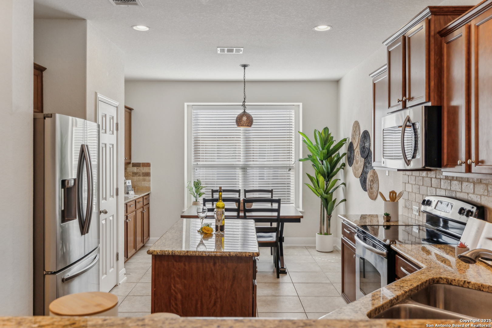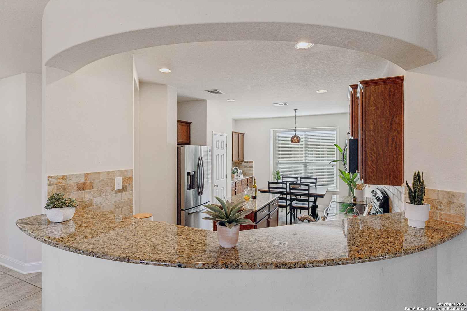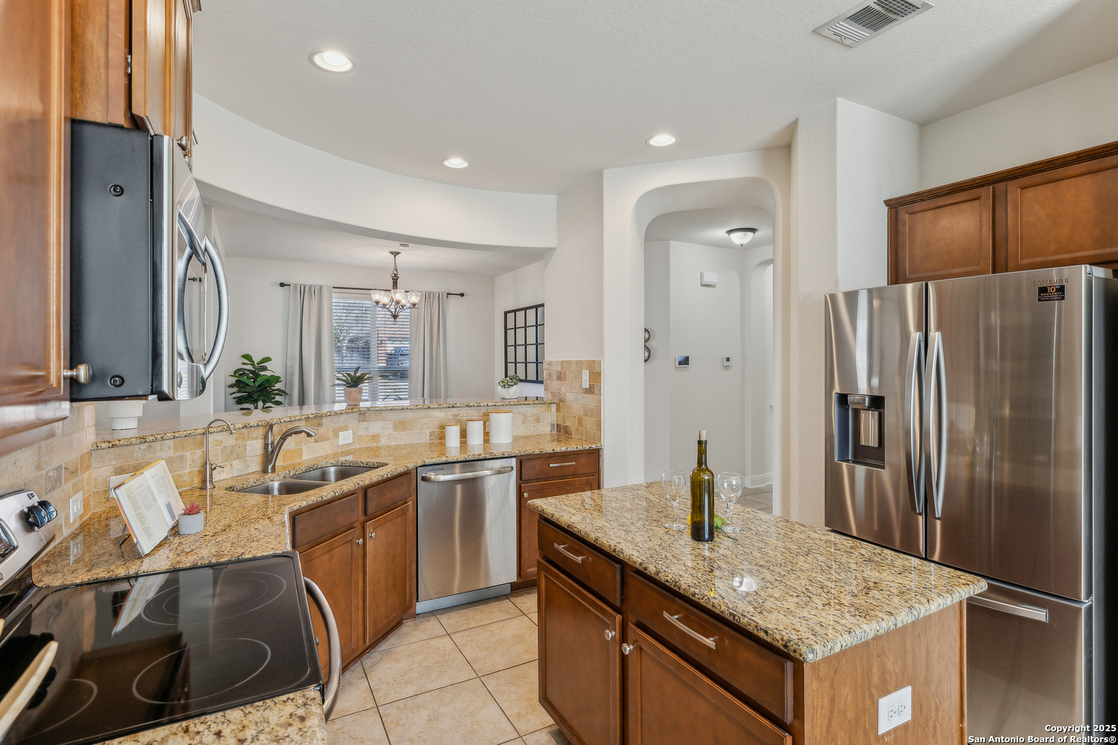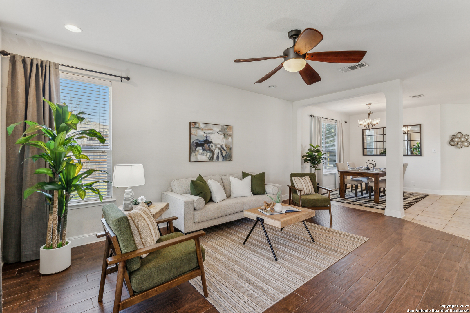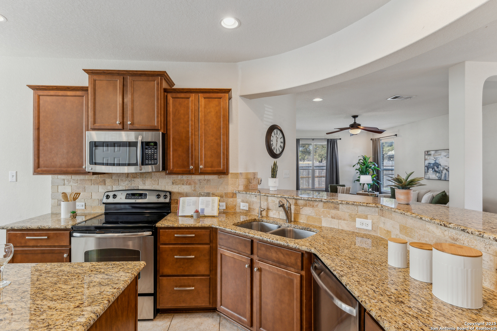 Nestled in the desirable Wildhorse neighborhood, this charming brick home at 10011 Chariot Trail offers a blend of comfort, convenience, and style. Nature enthusiasts will appreciate its proximity to Government Canyon State Natural Area, perfect for hiking and outdoor adventures. Step inside to discover an inviting open floor plan with abundant natural light, creating a warm and airy atmosphere. The HVAC system was replaced in 2024, ensuring year-round comfort. The home features a modern kitchen with granite countertops, stainless steel appliances, and ample cabinet space, seamlessly flowing into the dining and living areas, perfect for entertaining. The stylish wood-look flooring enhances the home's charm and complements the contemporary finishes. The spacious primary suite provides a relaxing retreat with its elegant ensuite bathroom, complete with dual sinks, a garden tub, and a separate walk-in shower. The additional bedrooms are generously sized. A dedicated study, which could also serve as a TV room, adds versatility to the living space. Enjoy outdoor living in the private backyard, featuring a covered patio ideal for morning coffee or evening gatherings. Mature trees add to the home's curb appeal. With its prime location near the neighborhood pool, just a few blocks from Krueger Elementary School, and close to grocery stores, restaurants, and other amenities, this residence is ideal for families seeking a welcoming environment., this residence is ideal for families seeking a welcoming environment. Don't miss this opportunity to experience the best of Wildhorse living!