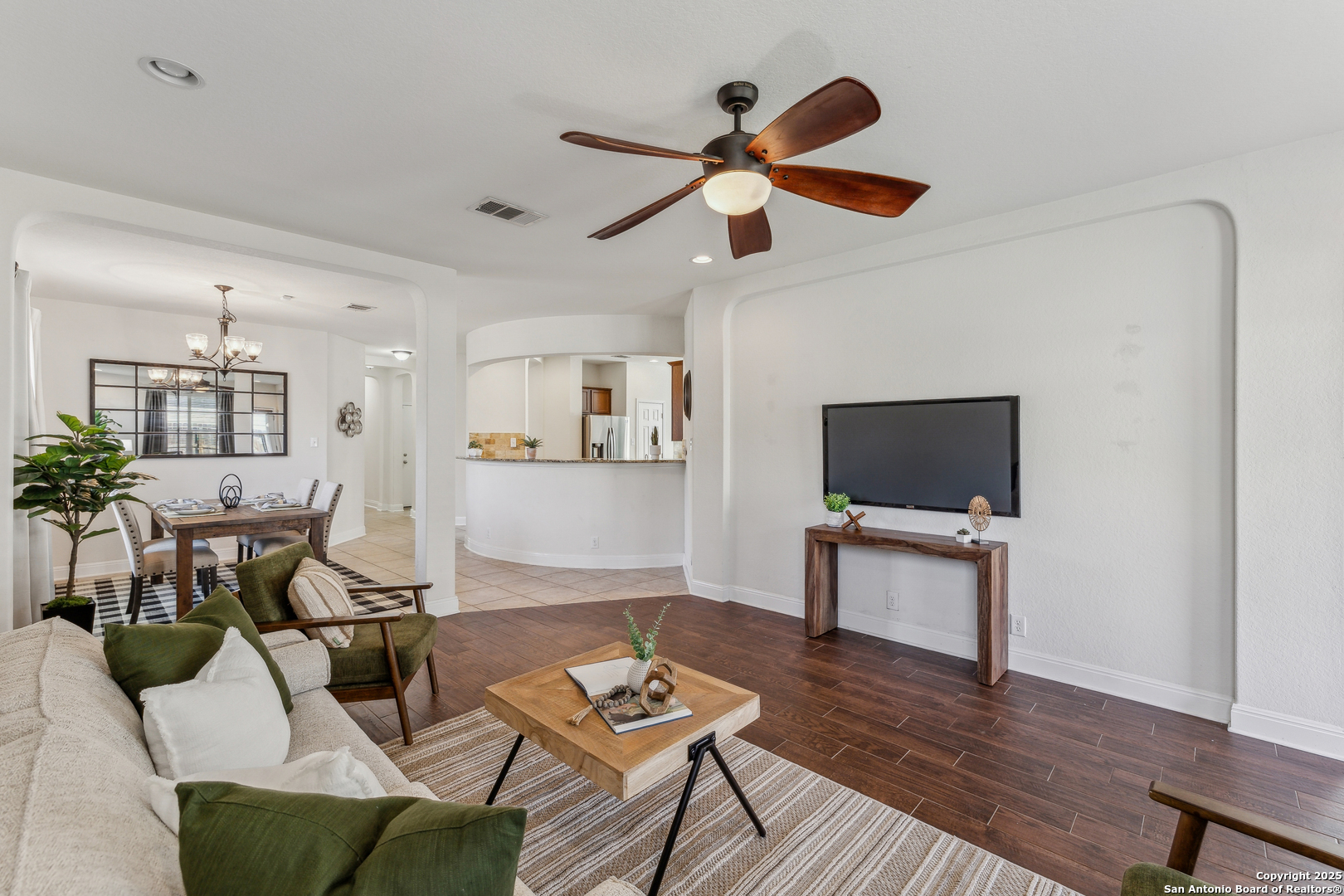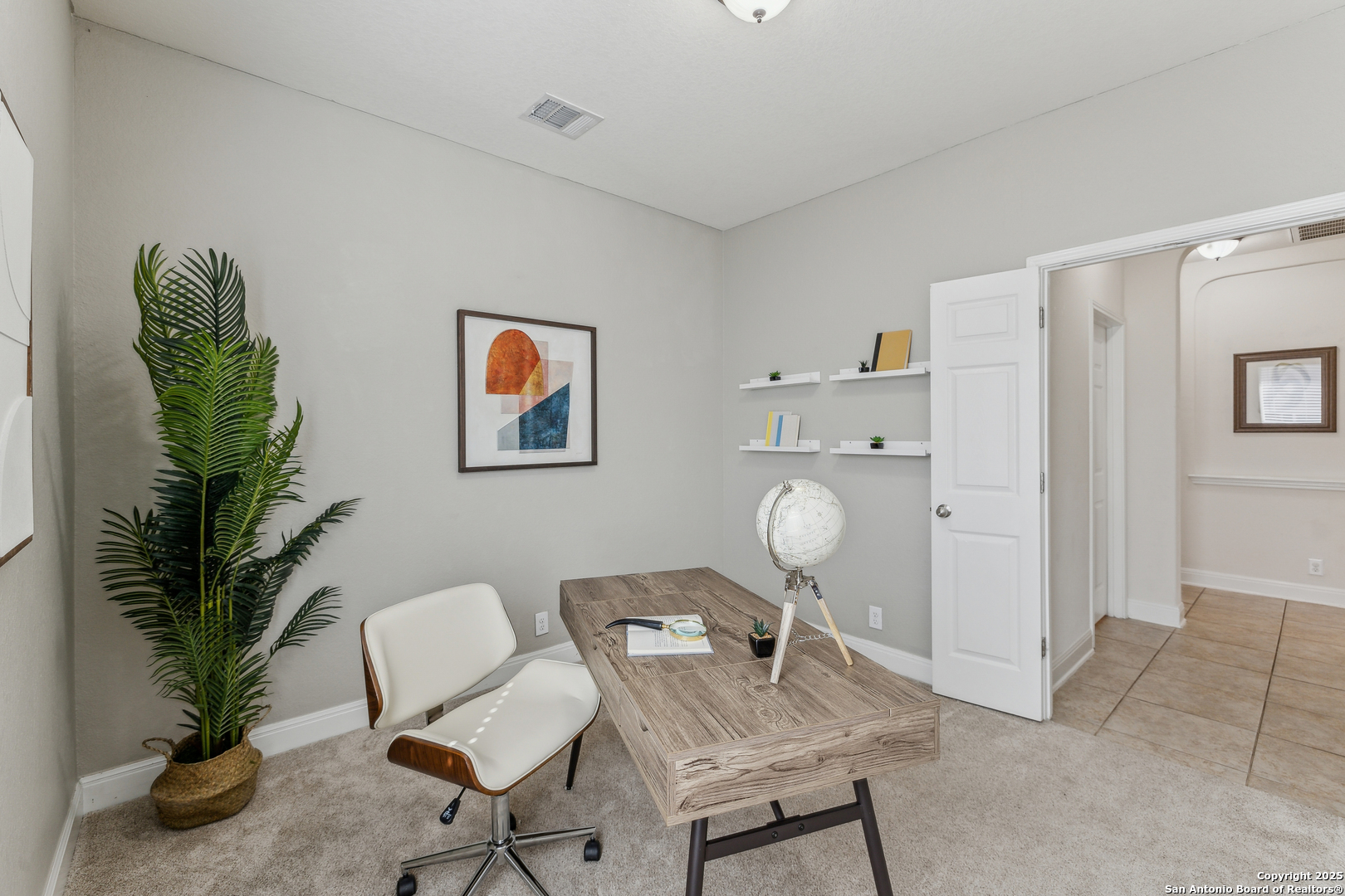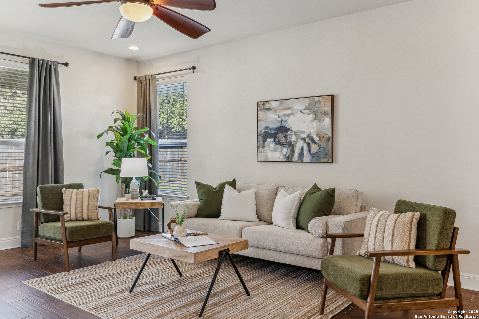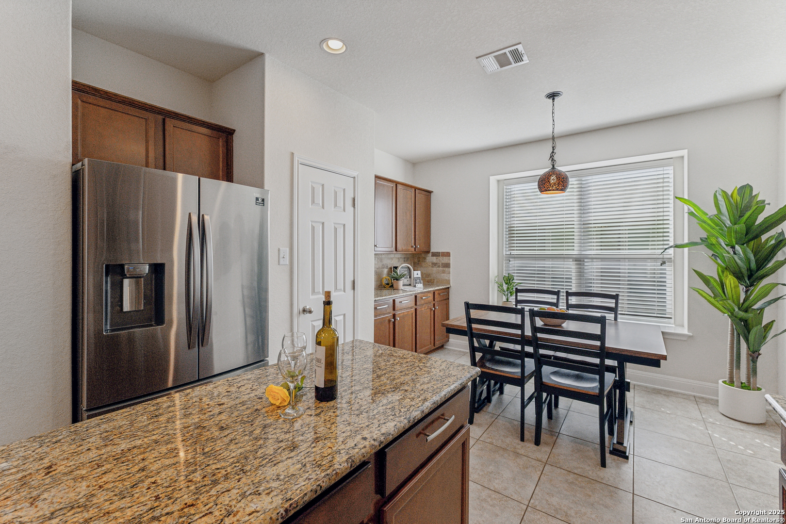 Nestled in the desirable Wildhorse neighborhood, this charming brick home at 10011 Chariot Trail offers a blend of comfort, convenience, and style. Nature enthusiasts will appreciate its proximity to Government Canyon State Natural Area, perfect for hiking and outdoor adventures. Step inside to discover an inviting open floor plan with abundant natural light, creating a warm and airy atmosphere. The HVAC system was replaced in 2024, ensuring year-round comfort. The home features a modern kitchen with granite countertops, stainless steel appliances, and ample cabinet space, seamlessly flowing into the dining and living areas, perfect for entertaining. The stylish wood-look flooring enhances the home's charm and complements the contemporary finishes. The spacious primary suite provides a relaxing retreat with its elegant ensuite bathroom, complete with dual sinks, a garden tub, and a separate walk-in shower. The additional bedrooms are generously sized. A dedicated study, which could also serve as a TV room, adds versatility to the living space. Enjoy outdoor living in the private backyard, featuring a covered patio ideal for morning coffee or evening gatherings. Mature trees add to the home's curb appeal. With its prime location near the neighborhood pool, just a few blocks from Krueger Elementary School, and close to grocery stores, restaurants, and other amenities, this residence is ideal for families seeking a welcoming environment., this residence is ideal for families seeking a welcoming environment. Don't miss this opportunity to experience the best of Wildhorse living!