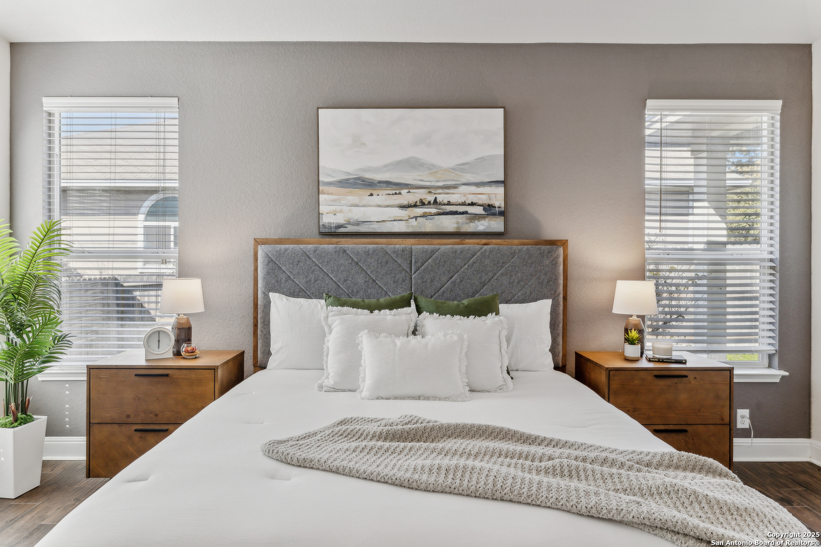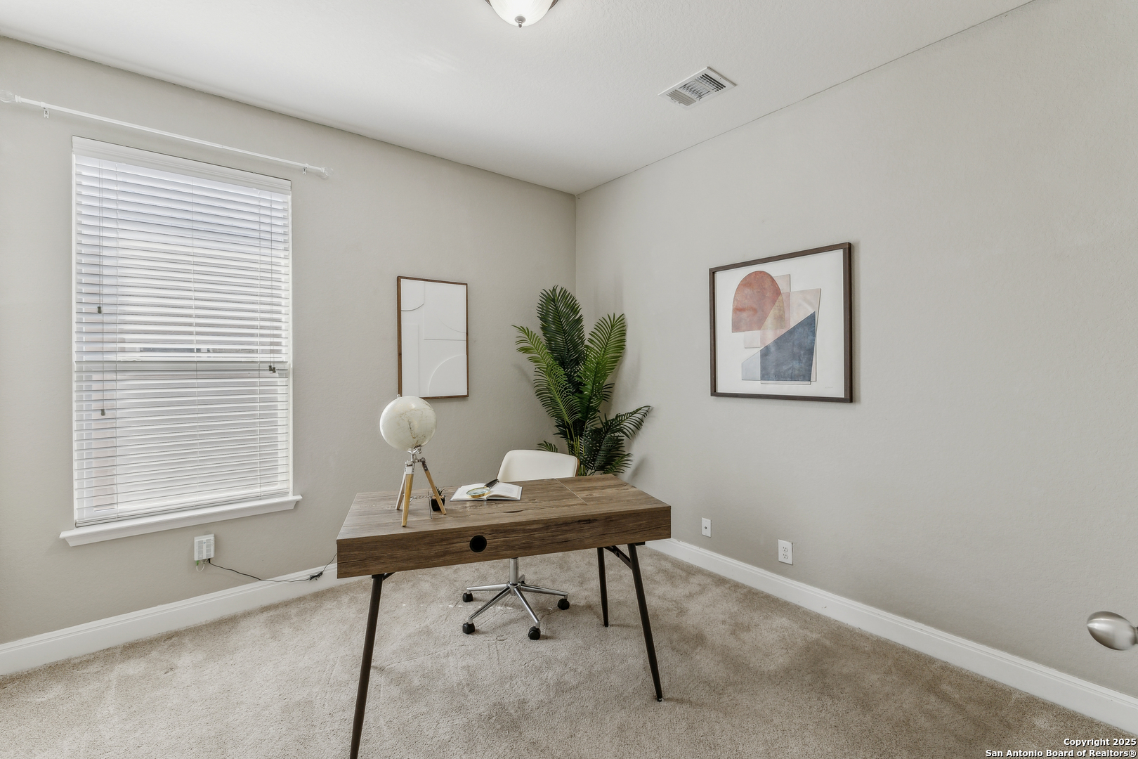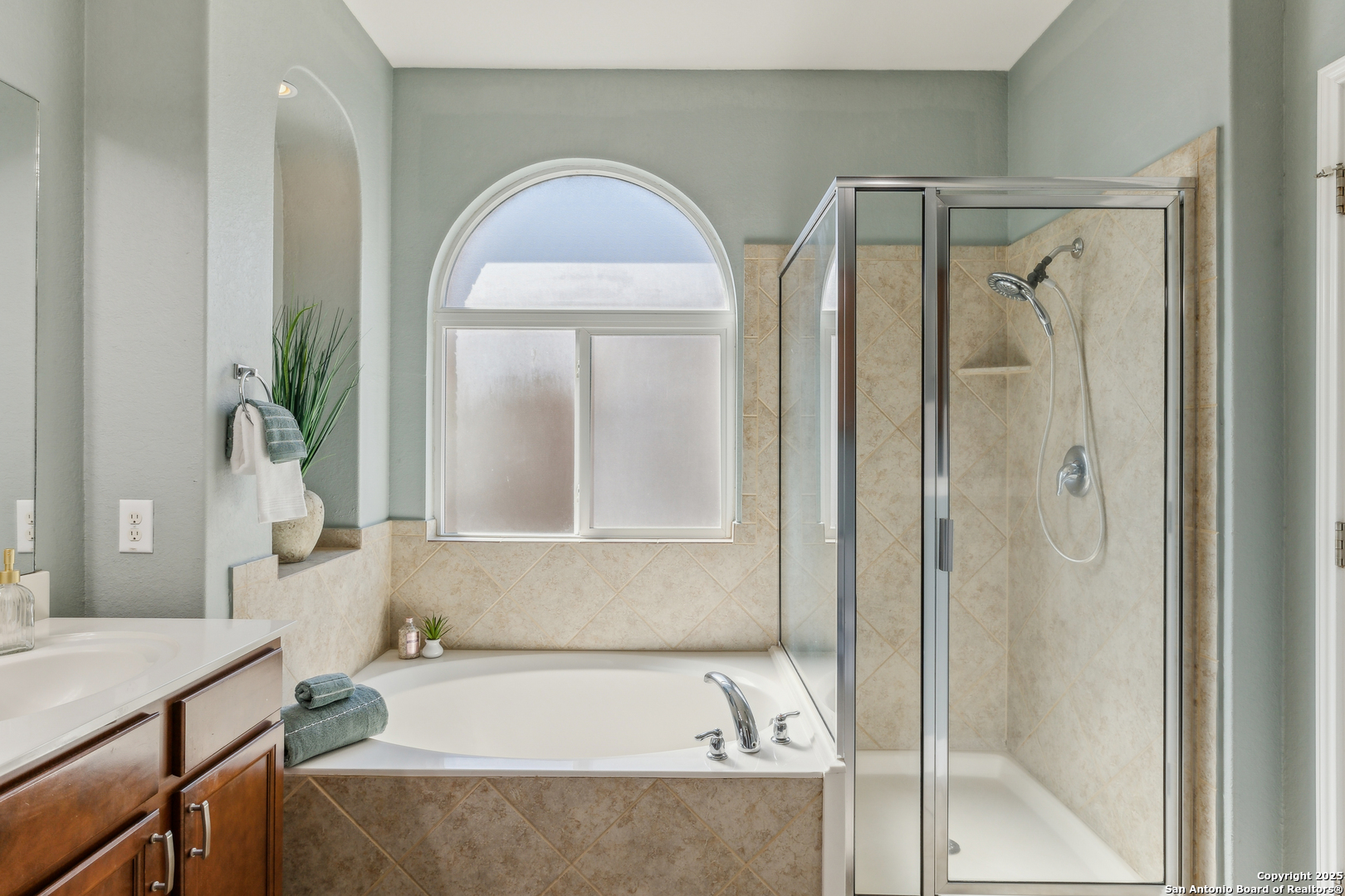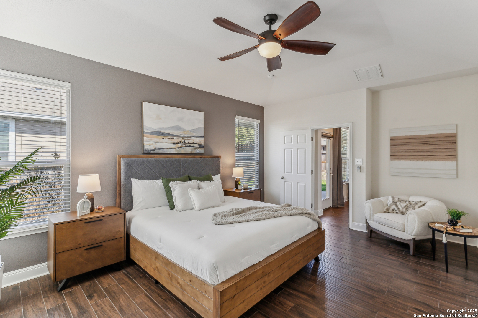 Nestled in the desirable Wildhorse neighborhood, this charming brick home at 10011 Chariot Trail offers a blend of comfort, convenience, and style. Nature enthusiasts will appreciate its proximity to Government Canyon State Natural Area, perfect for hiking and outdoor adventures. Step inside to discover an inviting open floor plan with abundant natural light, creating a warm and airy atmosphere. The HVAC system was replaced in 2024, ensuring year-round comfort. The home features a modern kitchen with granite countertops, stainless steel appliances, and ample cabinet space, seamlessly flowing into the dining and living areas, perfect for entertaining. The stylish wood-look flooring enhances the home's charm and complements the contemporary finishes. The spacious primary suite provides a relaxing retreat with its elegant ensuite bathroom, complete with dual sinks, a garden tub, and a separate walk-in shower. The additional bedrooms are generously sized. A dedicated study, which could also serve as a TV room, adds versatility to the living space. Enjoy outdoor living in the private backyard, featuring a covered patio ideal for morning coffee or evening gatherings. Mature trees add to the home's curb appeal. With its prime location near the neighborhood pool, just a few blocks from Krueger Elementary School, and close to grocery stores, restaurants, and other amenities, this residence is ideal for families seeking a welcoming environment., this residence is ideal for families seeking a welcoming environment. Don't miss this opportunity to experience the best of Wildhorse living!