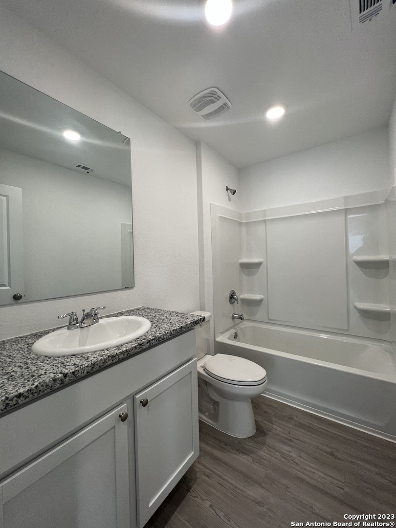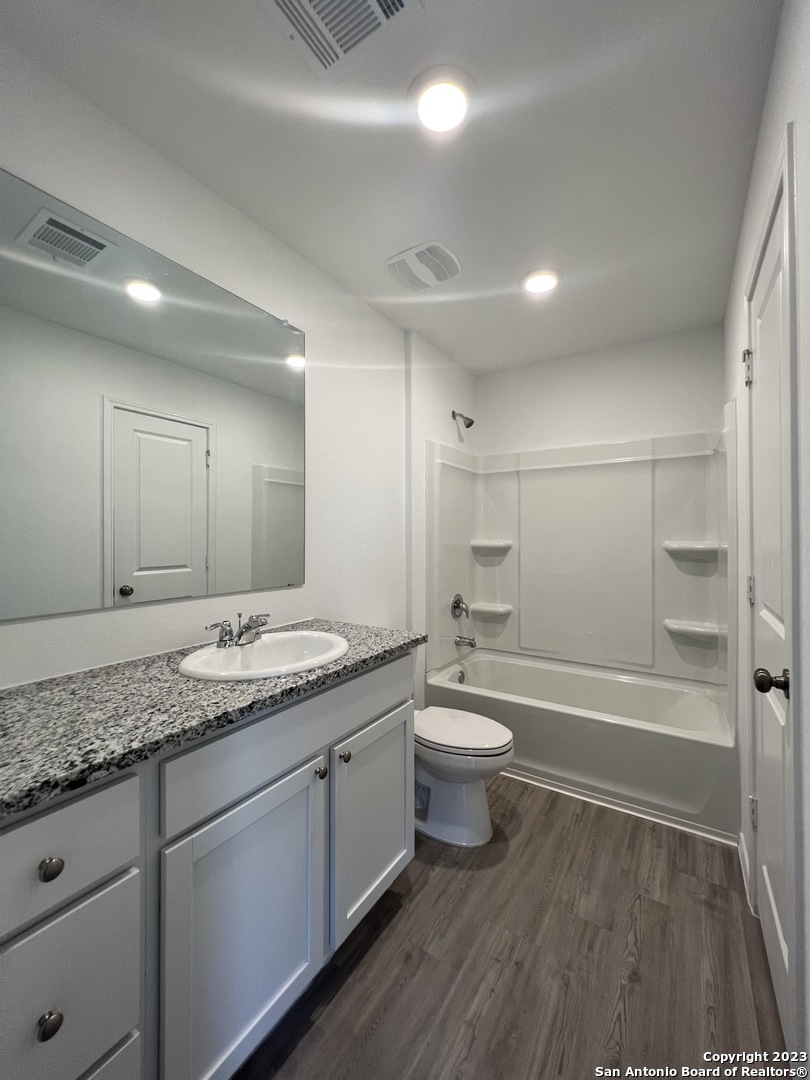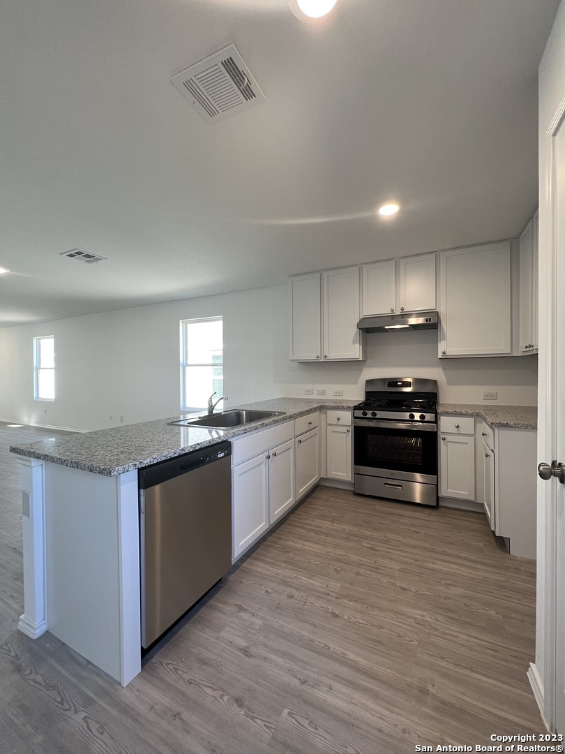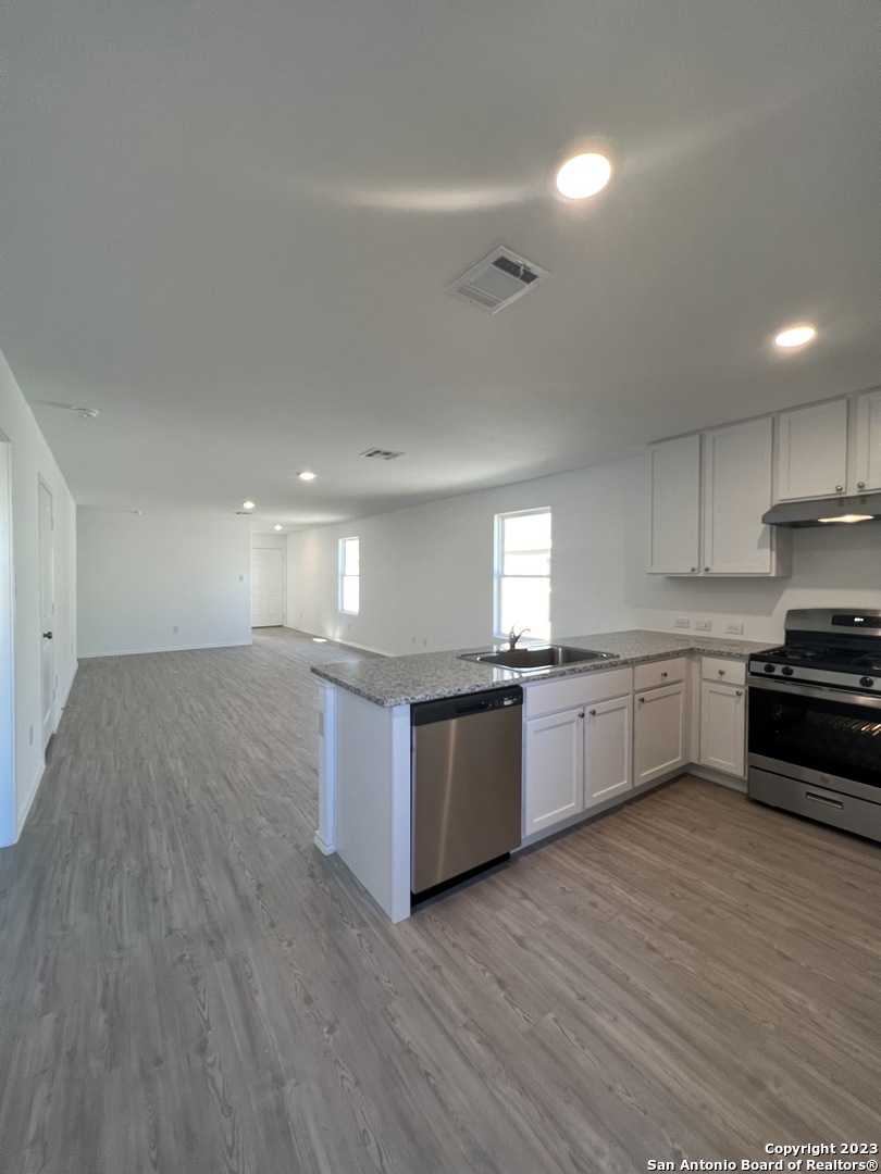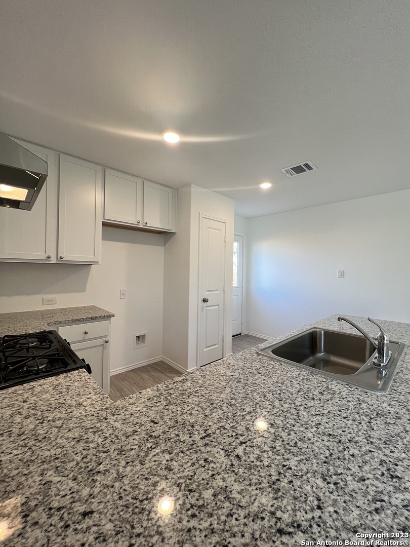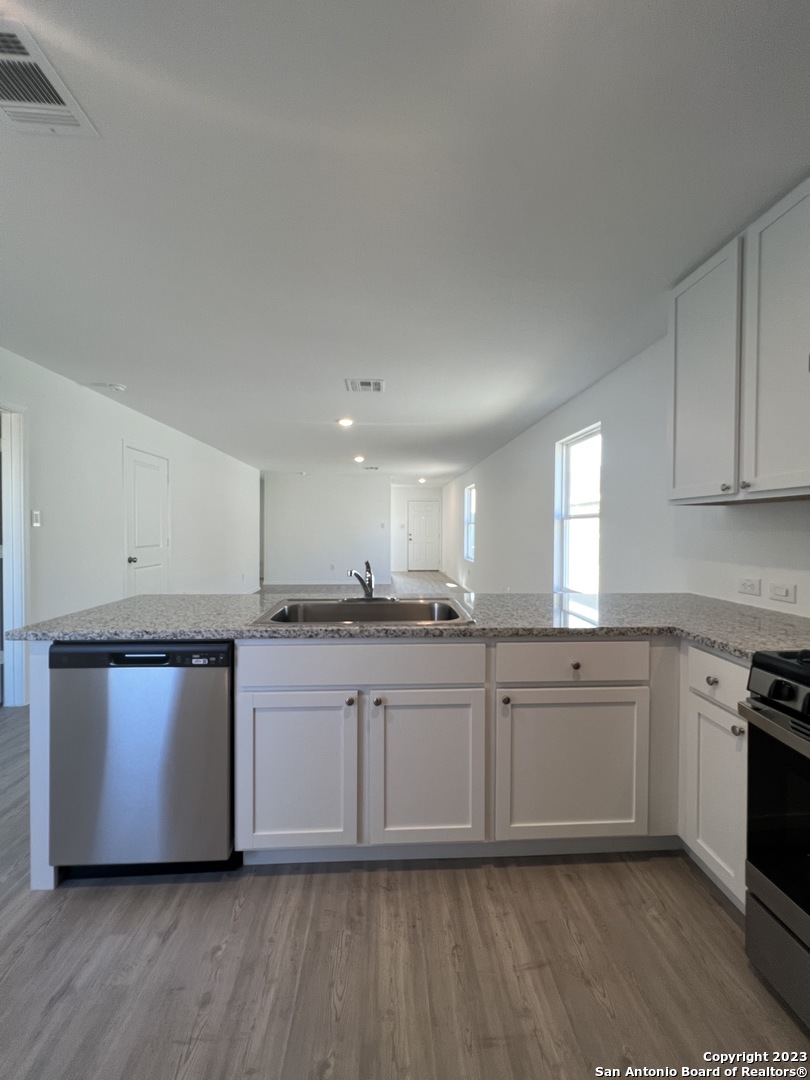 Beautiful single-story home featuring 3 bedrooms, 2 baths, and a 2-car garage with 1,266 sq. ft. of open living space. The modern kitchen boasts granite countertops, brand-new stainless steel appliances, and gas cooking, seamlessly opening to a spacious living and dining area. The primary suite offers a full bath and walk-in closet, with no carpet throughout the home for easy maintenance. Enjoy resort-style amenities including an adult pool, multiple cabanas, a 24-hour fitness center, party room, and lush green spaces. Conveniently located near Loop 1604 and Hwy 211, just minutes from shopping, dining, and entertainment.