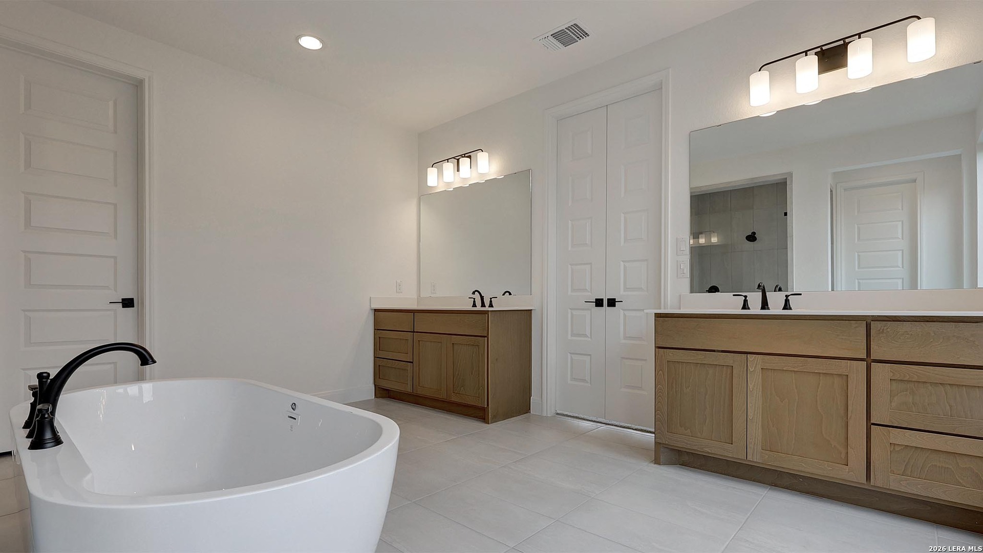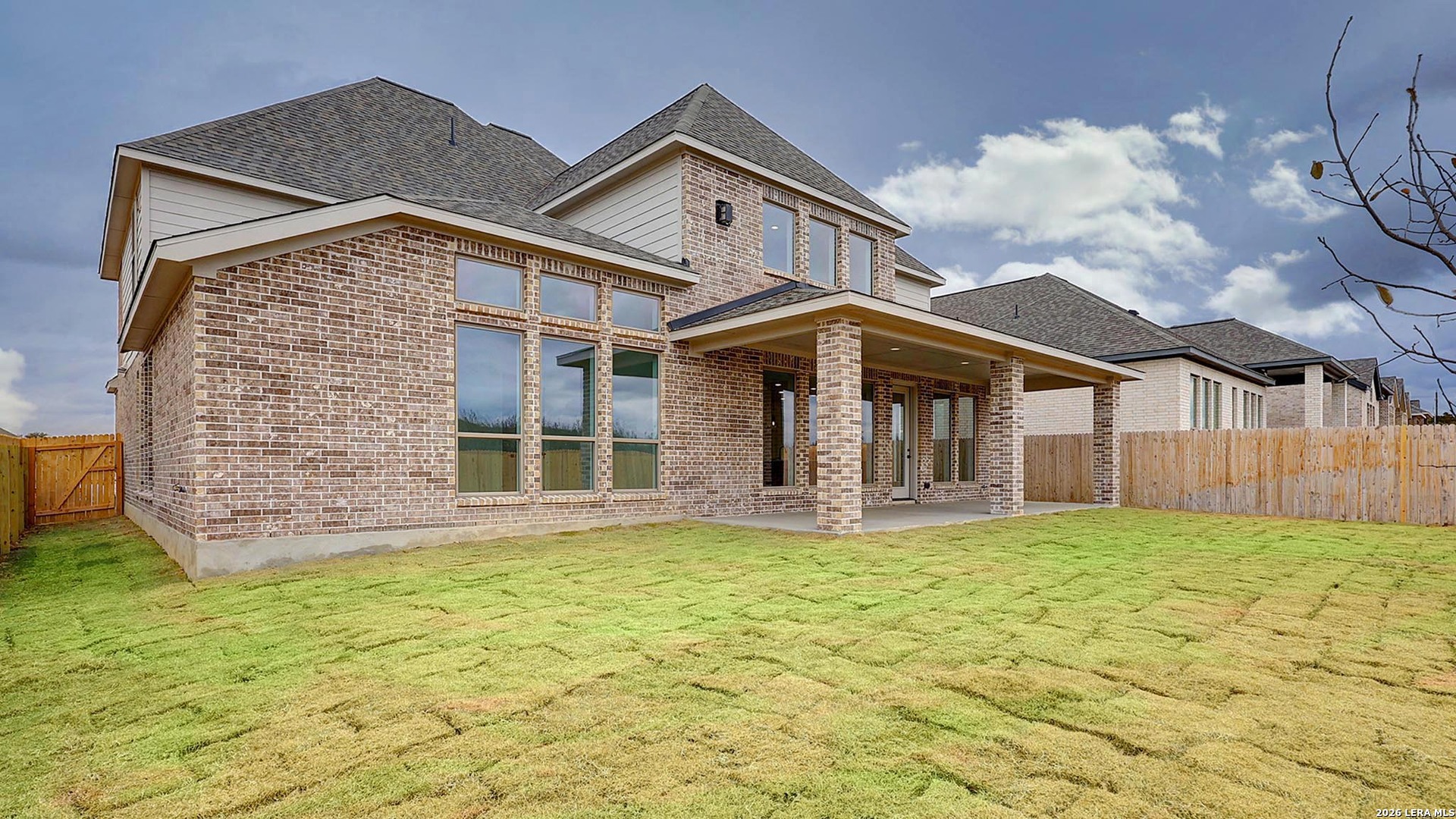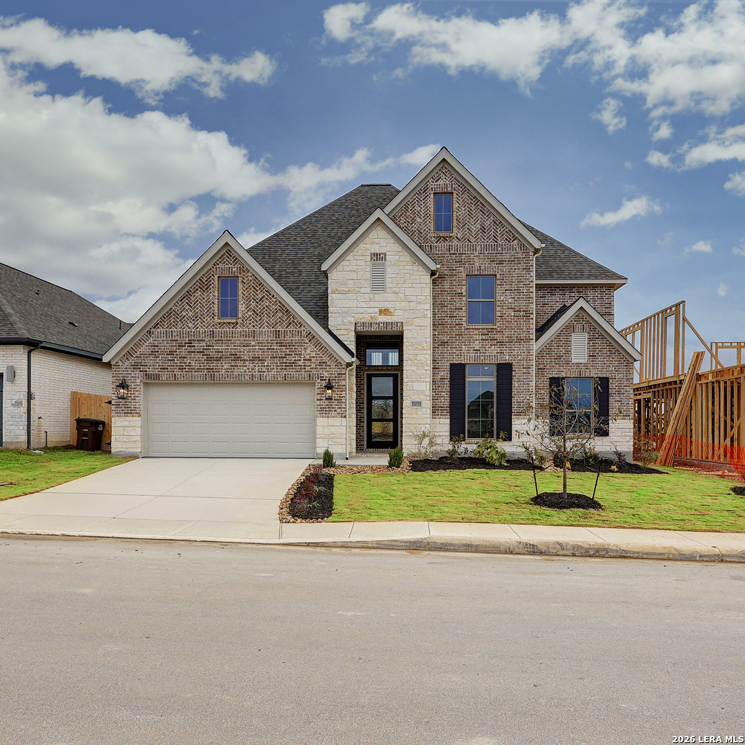 Home office with French doors frame the entry with 19-foot ceiling. Formal dining room flows into the family room and kitchen. Family room hosts a wall of windows, wood mantel fireplace and a 19-foot ceiling. Island kitchen with built-in seating space, 5-burner gas cooktop and a corner walk-in pantry flows into the morning area. Primary bedroom with a wall of windows. Primary bathroom hosts a French door entry, dual vanities, freestanding tub, separate glass enclosed shower and two walk-in closets that offer private access to the utility room. Additional bedroom with walk-in closet on first level. Second level hosts secondary bedrooms, a Hollywood bathroom, game room and a media room with French doors. Extended covered backyard patio, 6-zone sprinkler system, mud room just off the three-car garage.