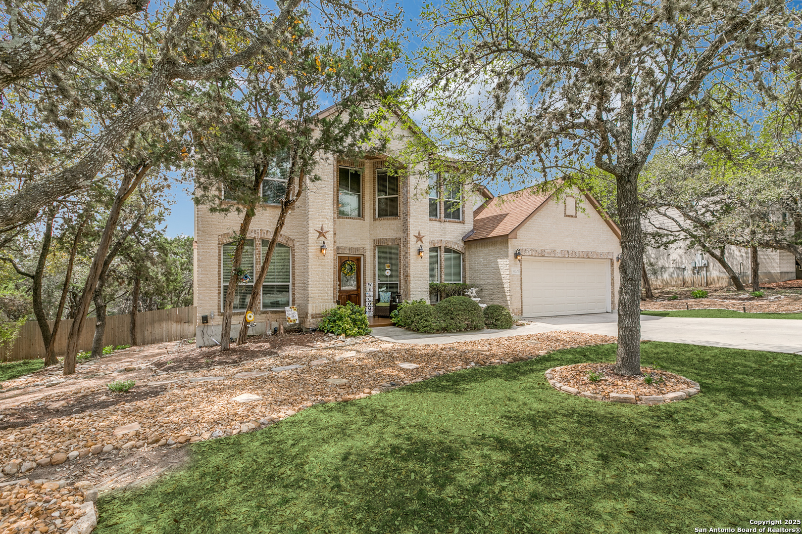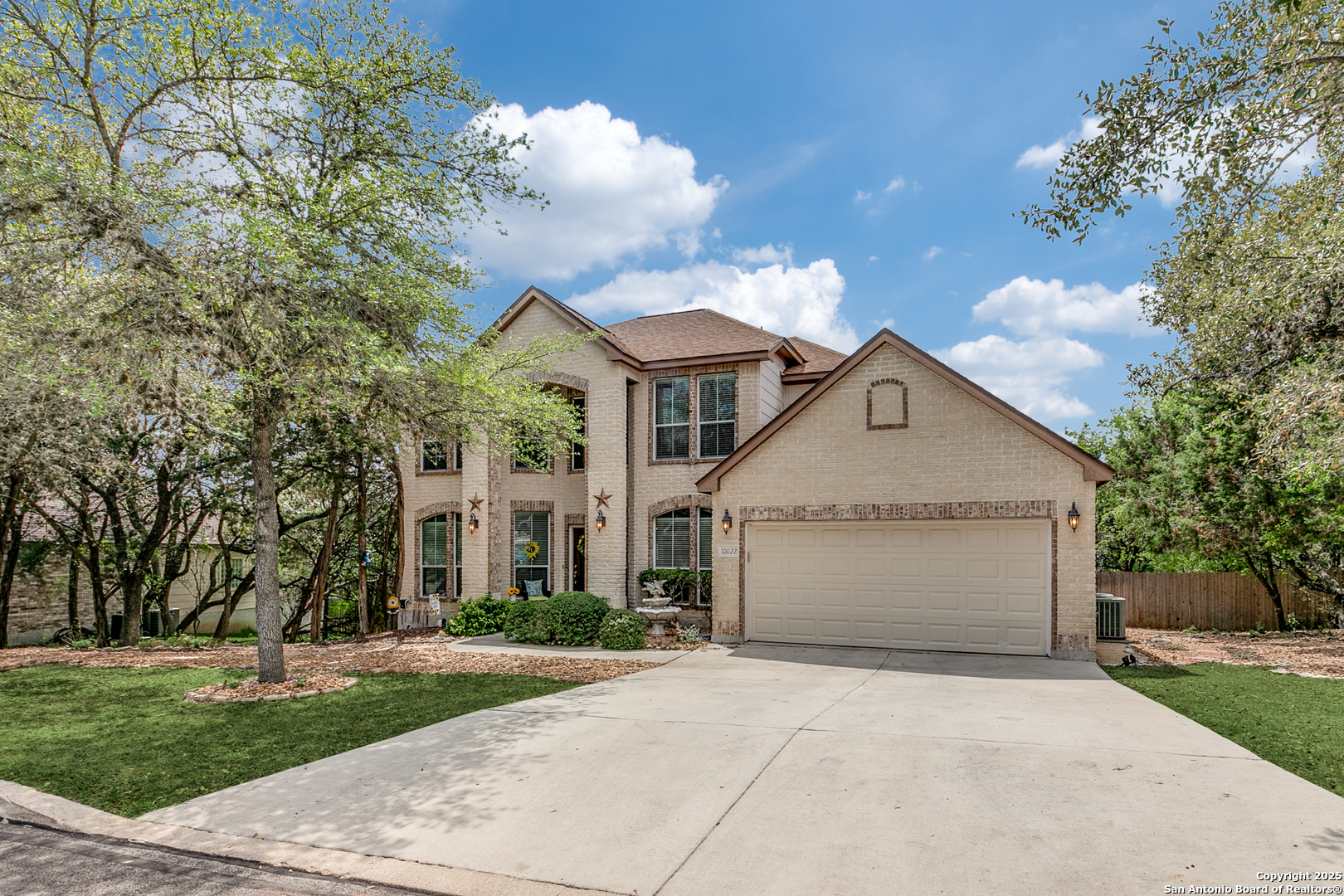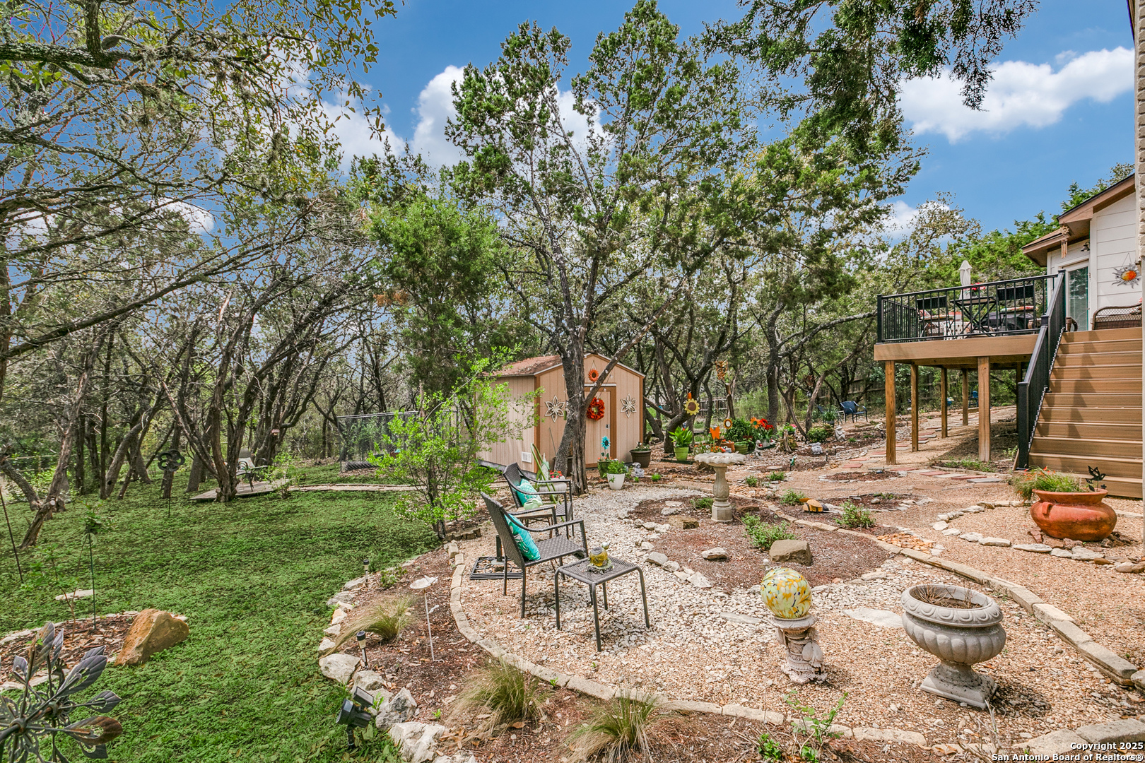 Rare find in popular Parklands community, where heavily wooded oversized lots ranging in size from 1/2 to 1 acre and elegant upscale homes make for the perfect place to come home to. With room for everyone this expansive home's floorplan greets you with an elegant dining room and a well appointed office with built in bookshelves. Plus, perfect for entertaining, the large island kitchen and breakfast room opens to an oversized family room complete with a lovely gas fireplace and hearth. All of this complemented by plenty of windows providing lots of natural light. Spacious primary bedroom with outside access and spa like bath perfect for owners to unwind after a long day. Huge upstairs second living area or game room and generously sized secondary bedrooms, ( two of which have nice built in desks and shelves ), will accommodate all your family and guests. Also, check out the sizeable auxiliary storage closet just off of the secondary bath, well suited for extra storage needs. And, for outdoor enjoyment you can sit amongst the trees on your beautiful elevated deck & staircase, made of long lasting composite materials and metal railing. Overlooking your very own nature preserve like private backyard ready with plenty of space for all your outside activities and fun. Home has a new roof installed January 2024, and Sprinklers, Storage shed and a "She" Shed and a fenced area for pets. Yes, this 3285 s.f. gently lived in one owner home does have so much to offer! Schedule your tour today! Conveniently located minutes from major shopping and entertainment venues and employment centers like USAA, Valero, UTSA, South Texas Medical Center and more.