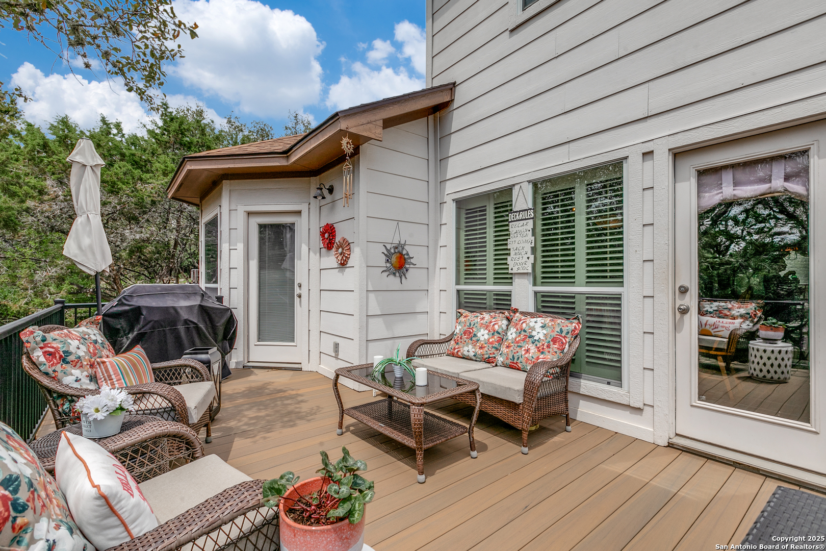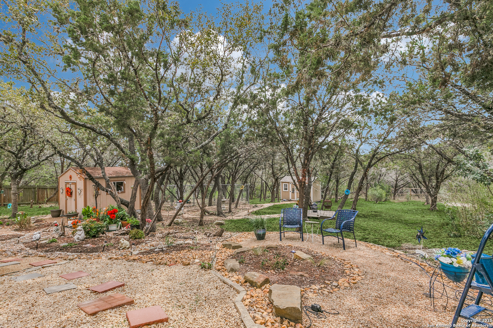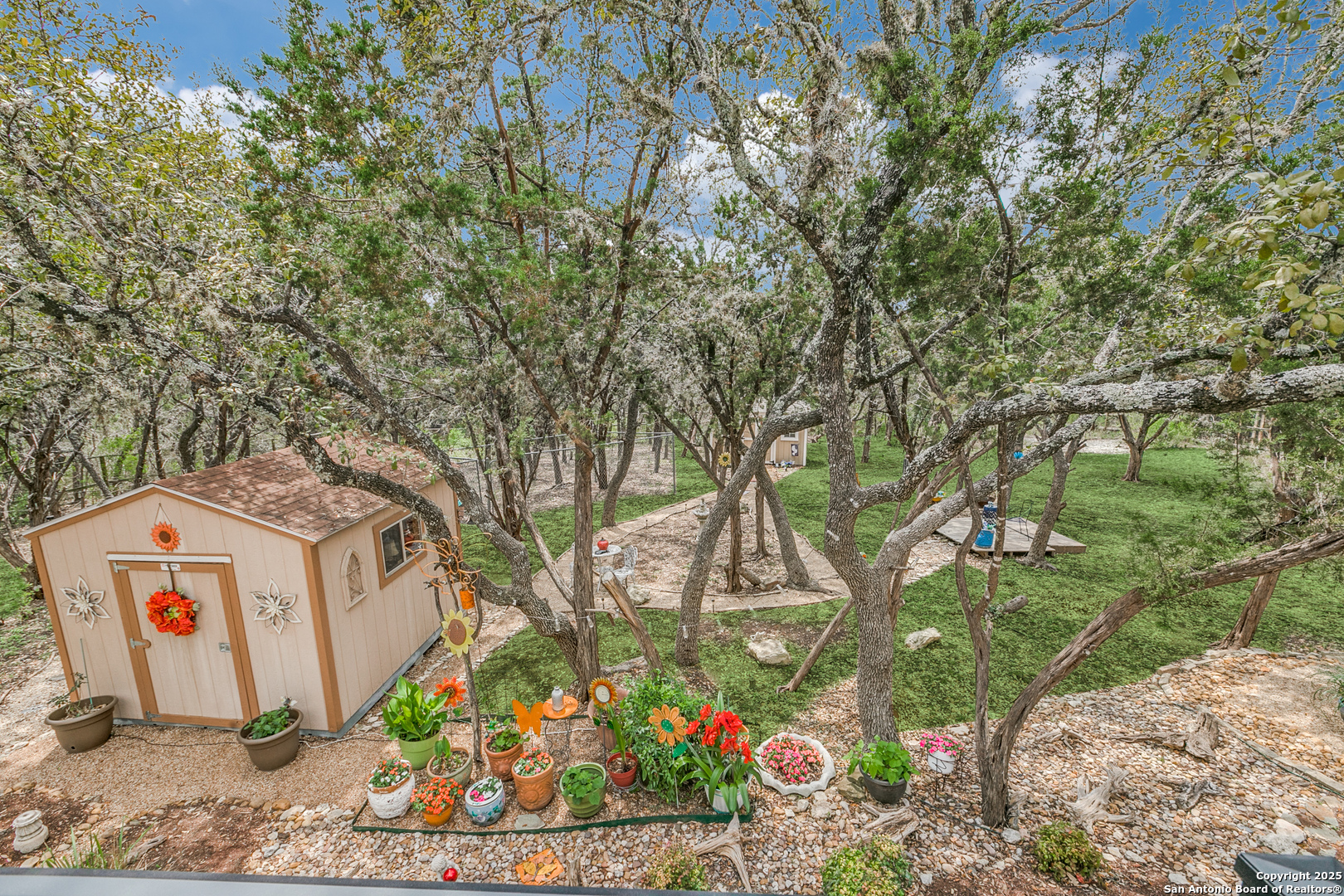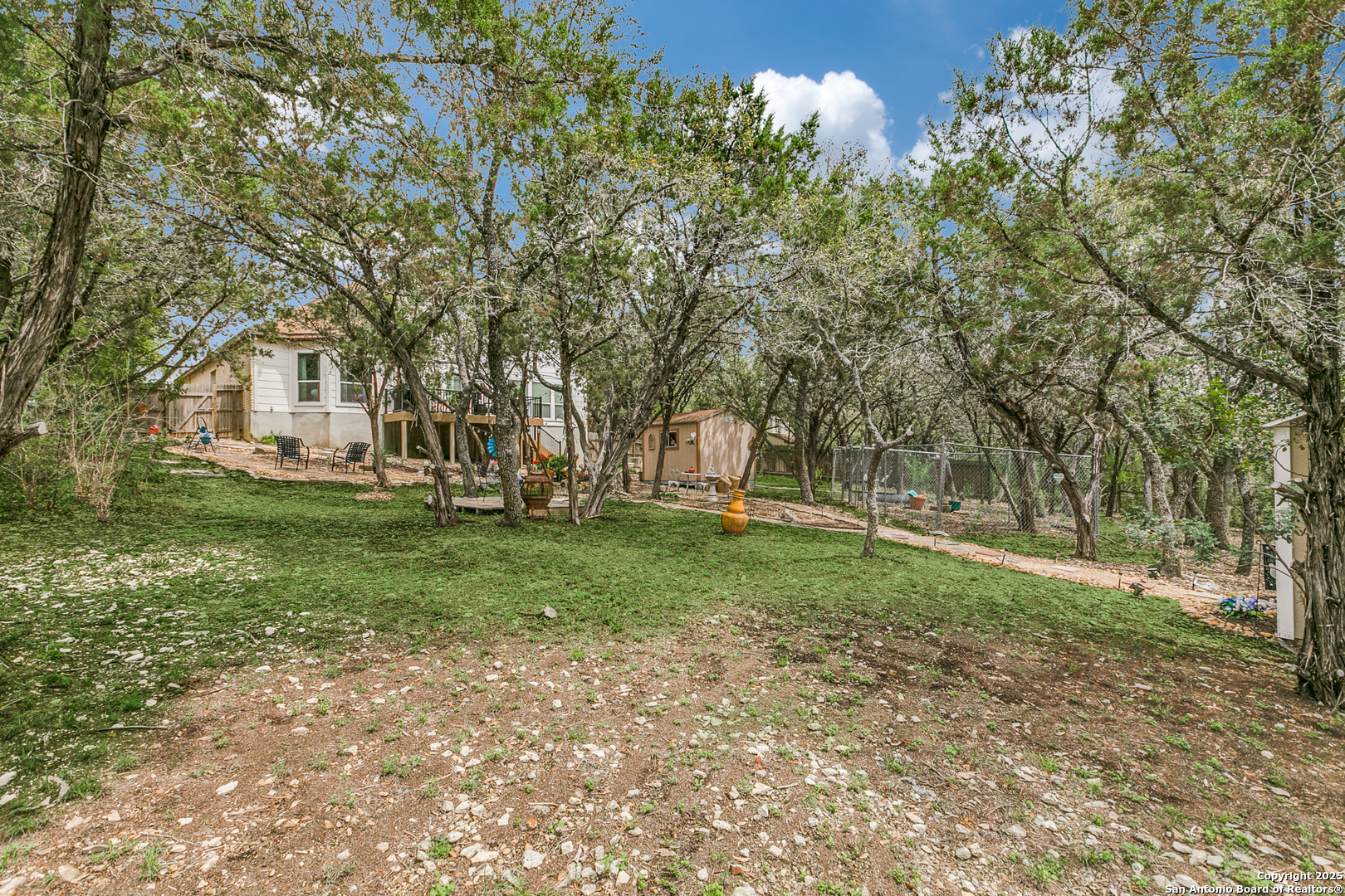 Rare find in popular Parklands community, where heavily wooded oversized lots ranging in size from 1/2 to 1 acre and elegant upscale homes make for the perfect place to come home to. With room for everyone this expansive home's floorplan greets you with an elegant dining room and a well appointed office with built in bookshelves. Plus, perfect for entertaining, the large island kitchen and breakfast room opens to an oversized family room complete with a lovely gas fireplace and hearth. All of this complemented by plenty of windows providing lots of natural light. Spacious primary bedroom with outside access and spa like bath perfect for owners to unwind after a long day. Huge upstairs second living area or game room and generously sized secondary bedrooms, ( two of which have nice built in desks and shelves ), will accommodate all your family and guests. Also, check out the sizeable auxiliary storage closet just off of the secondary bath, well suited for extra storage needs. And, for outdoor enjoyment you can sit amongst the trees on your beautiful elevated deck & staircase, made of long lasting composite materials and metal railing. Overlooking your very own nature preserve like private backyard ready with plenty of space for all your outside activities and fun. Home has a new roof installed January 2024, and Sprinklers, Storage shed and a "She" Shed and a fenced area for pets. Yes, this 3285 s.f. gently lived in one owner home does have so much to offer! Schedule your tour today! Conveniently located minutes from major shopping and entertainment venues and employment centers like USAA, Valero, UTSA, South Texas Medical Center and more.