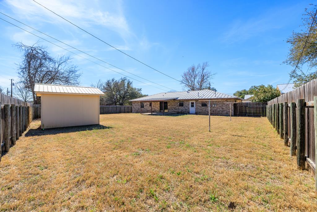 This well maintained ranch-style brick home, built in 1986, is now available in the desirable Cross Mountain Acres neighborhood of northwest Fredericksburg. Offering 3 bedrooms, 2 bathrooms, and 1,453 square feet of comfortable living space, this traditional home features a durable standing-seam metal roof and great curb appeal. Situated on a generous .26-acre lot, the property includes a spacious, private backyard with a privacy fence and storage shed—perfect for relaxing, entertaining, gardening, or play. Inside, the welcoming living room features built-in cabinets and bookshelves, creating both charm and functionality. The dining area sits conveniently just off the kitchen, which offers tile flooring, Formica countertops, an electric range and oven, and a dishwasher. Adjacent to the kitchen is a nicely sized utility/laundry room with washer and dryer hookups and a gas water heater. Down the hallway, you'll find two comfortable guest bedrooms with a shared bath, while the primary bedroom and private bath are tucked at the end for added privacy. An attached two-car garage has additional space for storage or a workshop area. This attractive brick home in Cross Mountain Acres is competitively priced below the current county appraised value—an excellent opportunity in a sought-after Fredericksburg location.