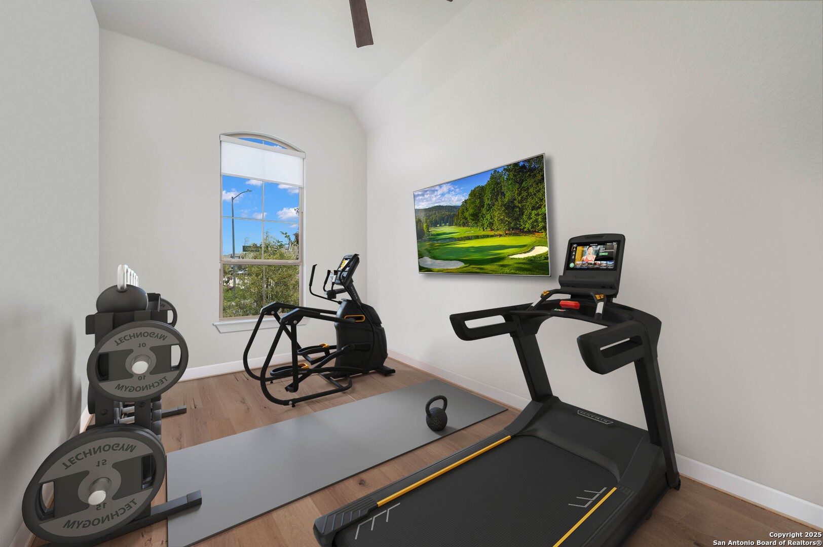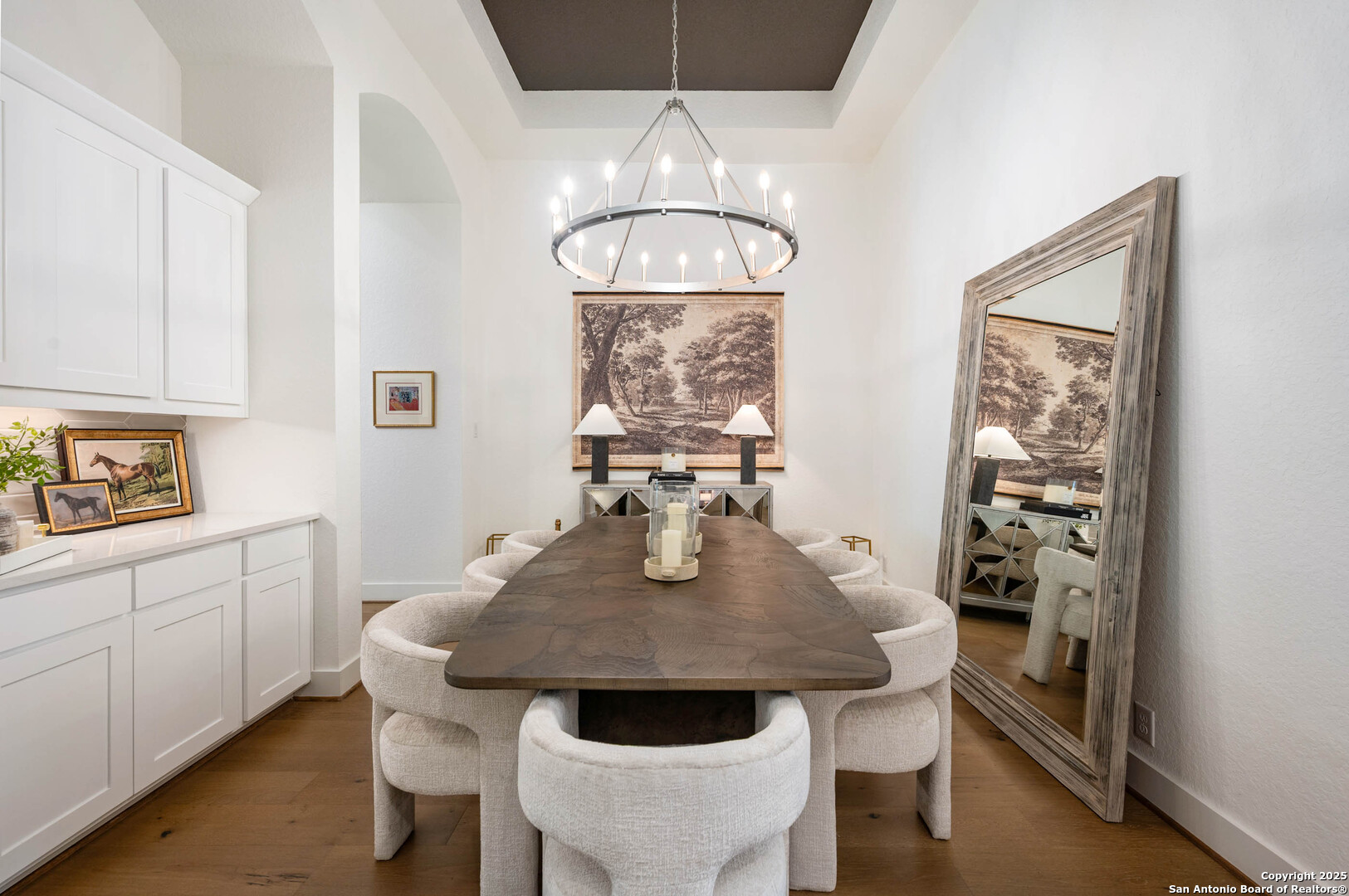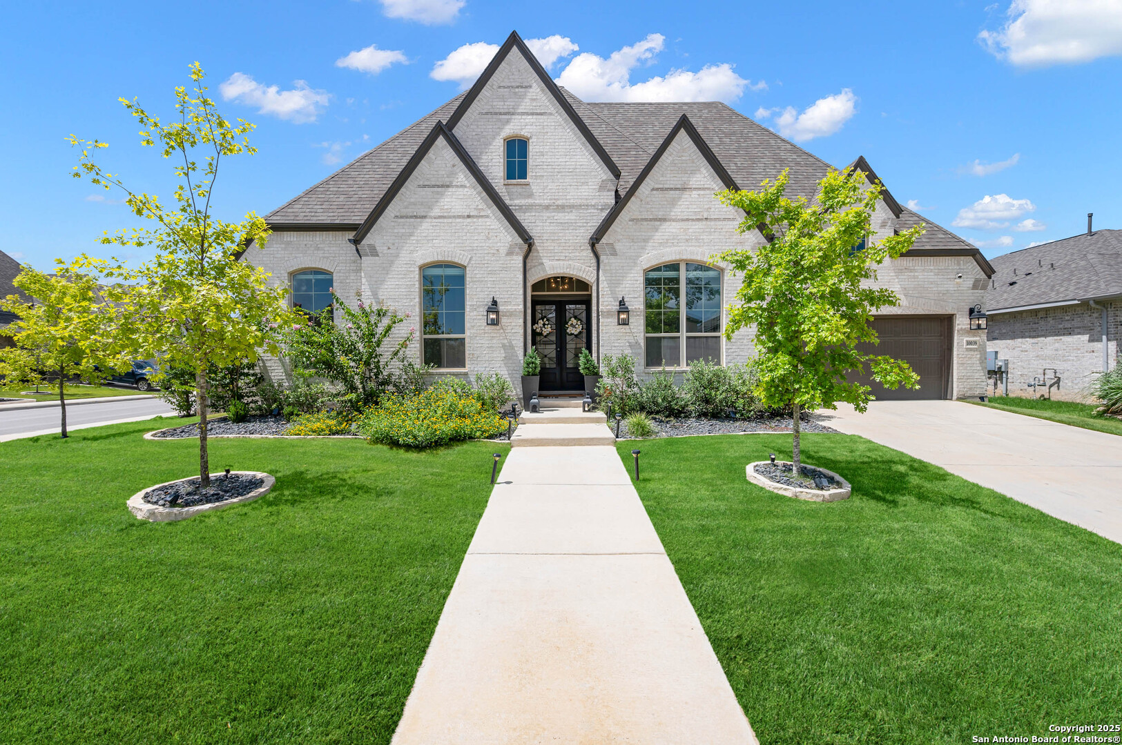 Built by Highland Homes and completed in 2023, this beautiful single-story brick home offers nearly 3,700 square feet of thoughtfully designed living space on a spacious corner lot. Featuring 4 bedrooms, 3 full bathrooms, and a half bath, this home blends style, functionality, and modern convenience. Inside, you'll find soaring ceilings, an open-concept layout, and an abundance of natural light streaming through oversized windows, all equipped with newly installed motorized shades. The chef's kitchen anchors the home with generous countertop space, a large center island, and flows seamlessly into the living and dining areas perfect for both everyday living and entertaining. The dining and breakfast rooms feature under-cabinet lighting, adding a warm and sophisticated touch. Designed for versatility, this home includes a dedicated home office, a spacious game/playroom, a media room for movie nights, and a flex space ideal for a gym or secondary study. The luxurious primary suite is a true retreat with its own sitting area, perfect for relaxing. The ensuite bathroom leads to a fully finished, custom-built walk-in closet offering exceptional organization and storage. Additional highlights include an oversized epoxy-coated tandem garage and a covered patio that provides ample shade and plenty of room to accommodate a future pool. Situated in the gated neighborhood of Balcones Creek, this home offers the perfect combination of space, quality, and thoughtful design.