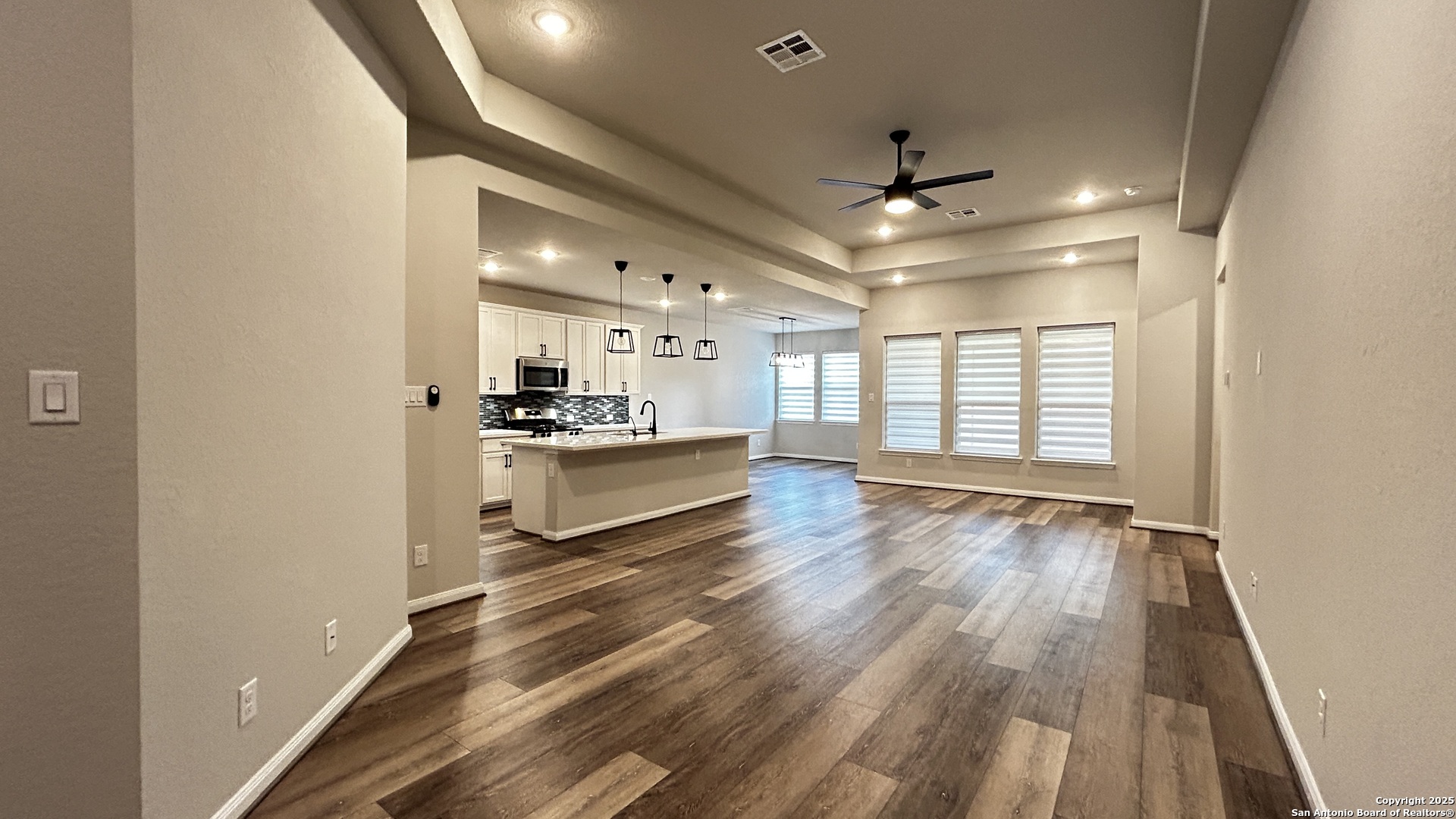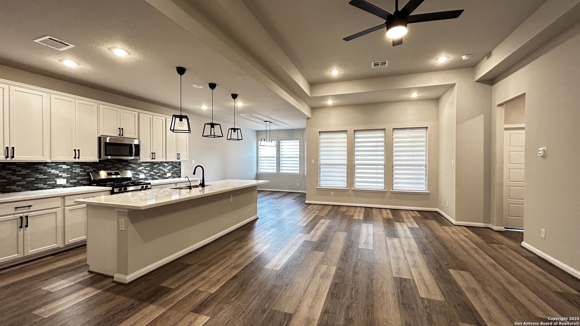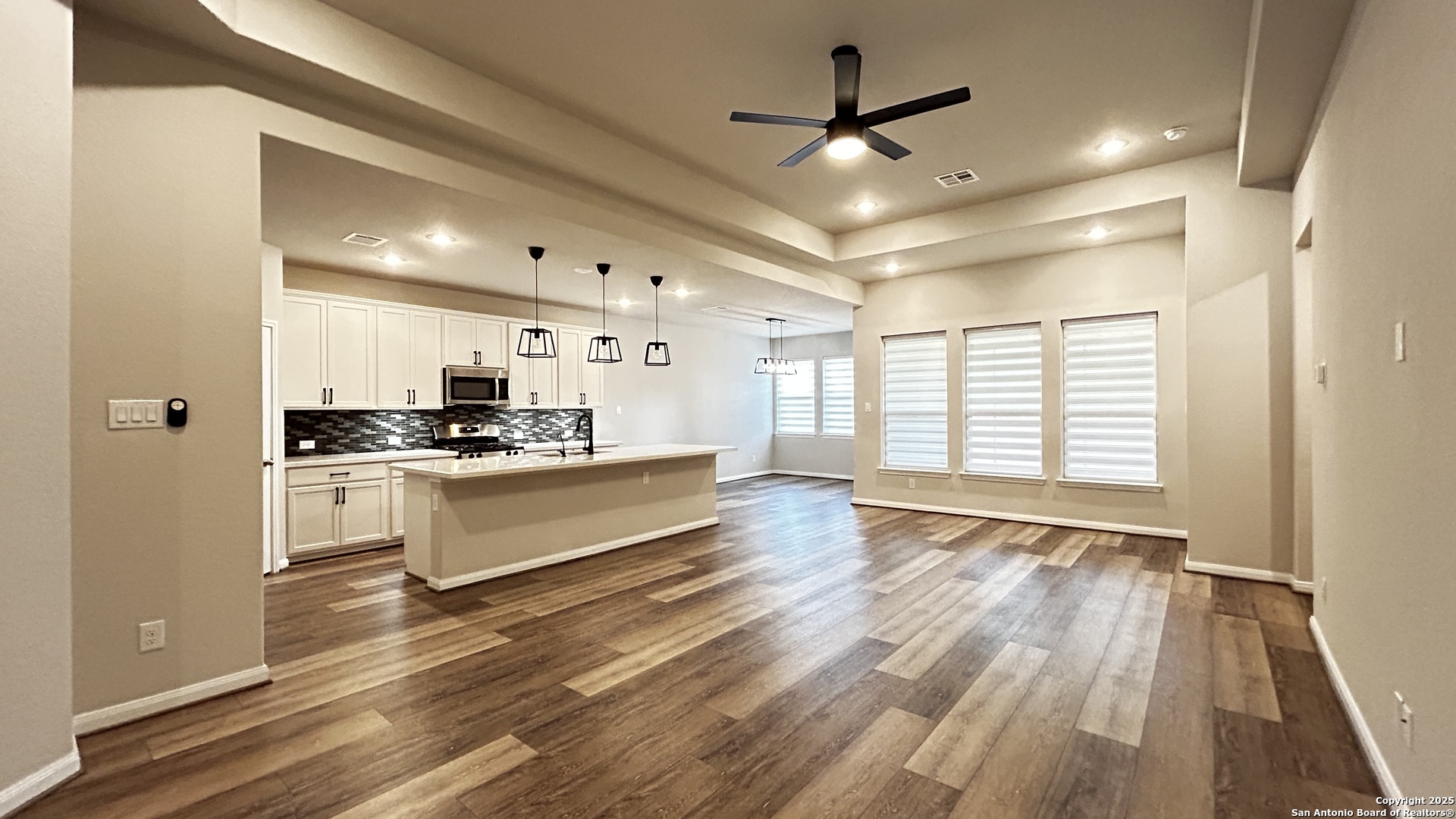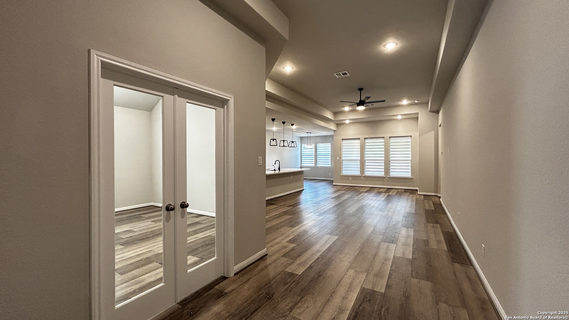 Spectacular Single Story 4 Bed, 2 Bath, 2171 sq ft home right next to a spacious Park. 11 ft Ceilings at the entry. Vinyl Plank floors in the high traffic areas. Carpets only in the bedrooms. Office/Flex Room with French doors. Large Living Room. Kitchen with White Cabinets, Granite counters, Breakfast Bar, and Walk-in Pantry. Appliances include Stainless Fridge, Gas Stove, Microwave, and Dishwasher. Primary Bedroom with Bay Window, high ceilings, ceiling fan, and walk-in closet. Primary Bath with Large walk-in shower, dual sinks. Fenced Yard with Covered, screened-in Patio. 2 Car Garage with Opener, Telsa Charging Station, and Water Softener. City Park next door with Playground, BBQ, Basketball, Soccer Fields, and Jogging Trail.
