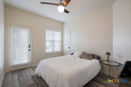 Available for move in July 6, 2026. Spacious first-floor condo for lease featuring 2 bedrooms and 2 full baths, just steps from Texas State University. Enjoy easy walkability to campus, dining, coffee shops, shopping, and local nightlife. This bright and inviting unit offers an open-concept layout with a cozy breakfast area and an expansive living room anchored by a charming fireplace. Durable plank flooring extends throughout the home, complemented by ceiling fans for year-round comfort. Additional highlights include a full-size washer and dryer, generous closet space, and well-appointed, spacious bathrooms. Pets welcome.