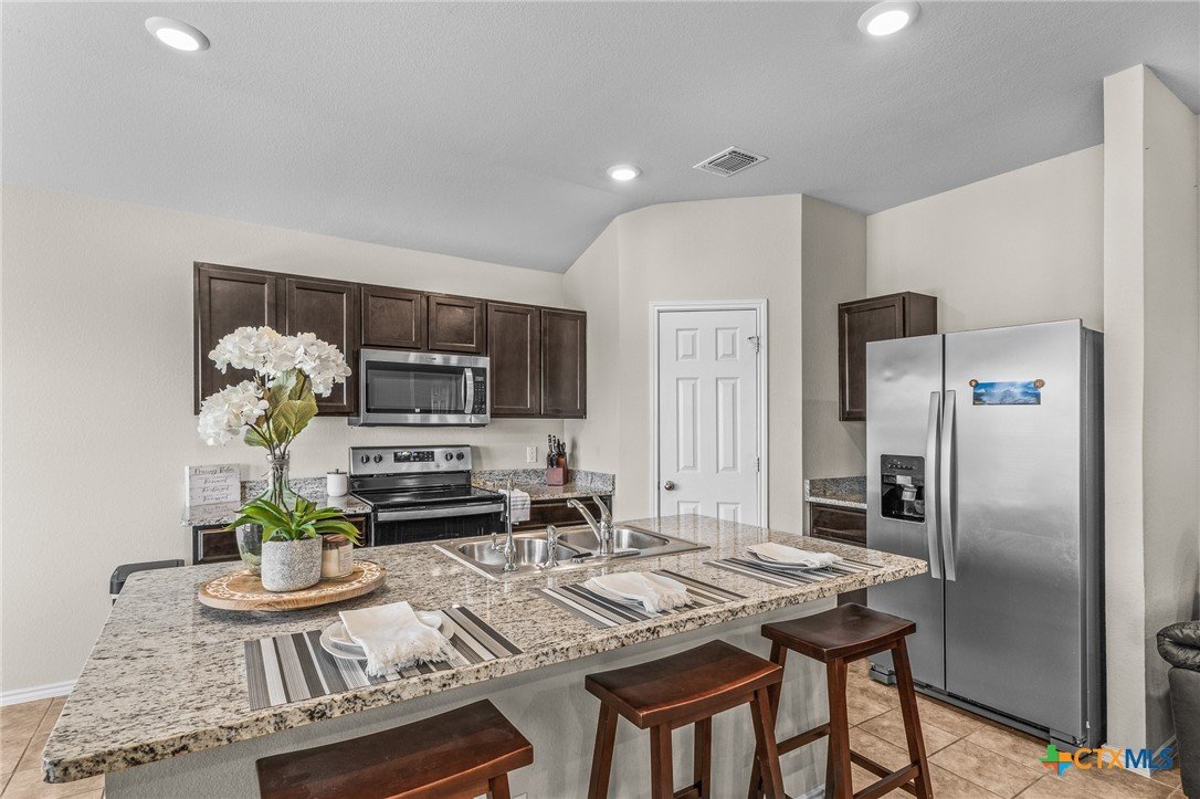 1006 Rosa Parks Dr., Killeen, TX | 3 Bed | 2 Bath | Built 2021 This move-in ready 2021-built home checks all the right boxes without the new construction hassle. The open-concept layout connects the living room and kitchen nicely, making the space feel comfortable and easy to live in. The kitchen includes dark cabinetry, a granite island with bar seating, and stainless steel appliances. The real value here is in what's already taken care of. Solar panels convey fully paid off at closing, keeping your monthly utility costs low from day one. A whole-home water softener is already installed, and the refrigerator, washer, and dryer are all included — no need to budget for appliances. At just 4 years old, you get the peace of mind of a newer home with none of the wait. This one is priced to sell and ready to go.