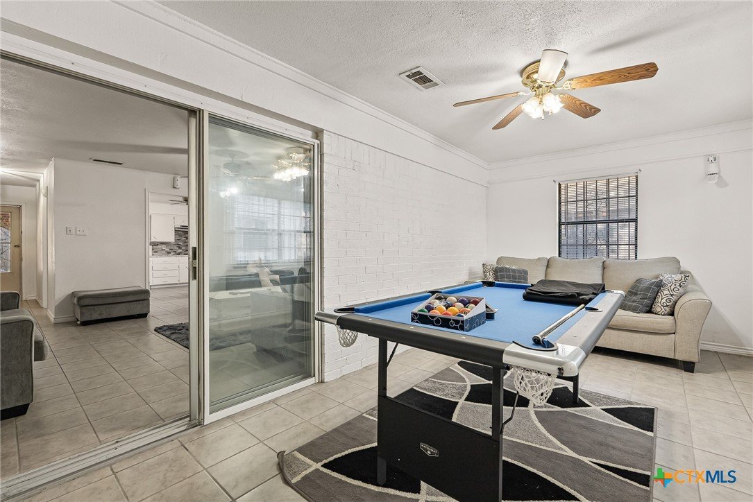Welcome to this charming 3-bedroom, 2-bath home with bonus features; an inviting single-story brick home that combines comfort, functionality, and curb appeal. This home is the perfect balance of space and convenience. Step inside to discover a spacious living room with neutral tones and tile flooring, offering plenty of room for relaxation and entertainment. Sliding glass doors lead to a versatile bonus space—ideal for a game room, home office, or playroom. The eat-in kitchen is bright and functional, complete with ample cabinet storage, tiled backsplash, and space for family dining. The generously sized bedrooms provide comfort and flexibility, while the primary suite includes its own private bath. Outside, enjoy a large fenced backyard with mature trees for shade, a roomy storage shed, and endless possibilities for outdoor activities. Conveniently located near schools, shopping, and major roads, this home is ready for move-in. Don’t miss your chance—schedule a tour today!