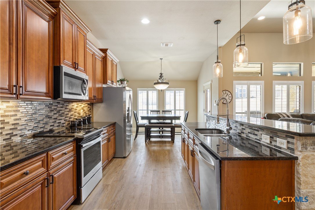 Why build custom when you can buy custom? Skip the stress of construction and move right into this beautifully built home at 1007 Saddle Bluff. Located in the prestigious Mill Creek Golf Community in the charming village of Salado, Texas, this 4-bedroom, 2-bath home offers comfort, space, and quality throughout. You’ll love the updated RidgeCore flooring installed throughout the home (March 2024), with durable surfaces in all main areas and polished concrete in wet spaces. The roof was replaced in November 2024 for added peace of mind. A 3-car garage with built-in cabinets (installed March 2021) provides excellent storage. The open, airy living area is warm and inviting, flowing seamlessly into the kitchen featuring an oversized pantry—perfect for everyday living and entertaining. It has a formal dining and breakfast nook for enjoying great meals. The spacious primary suite is a true retreat, offering room for a California King and additional furniture with ease. The en-suite bath feels like a spa, complete with dual vanities, a soaking tub, and a large walk-in shower. The closet space is exceptional. On the opposite side of the home, you’ll find three generously sized secondary bedrooms and a full bath—ideal for family or guests. Step outside to a large backyard featuring an above-ground pool and storage shed. A zero-turn mower is included with an acceptable offer. The expansive backyard is your palette for outdoor living—a garden, those outdoor gatherings, or simply a peaceful retreat under the covered porch with a gentle hum of the ceiling fan. From the upgraded finishes to the thoughtful layout, this home is full of details you need to see in person. Schedule your appointment today.