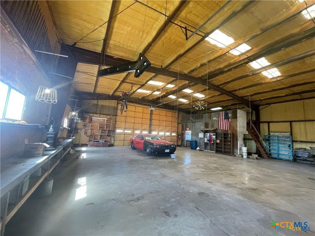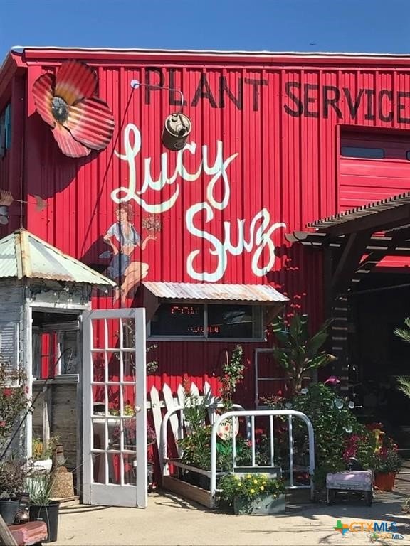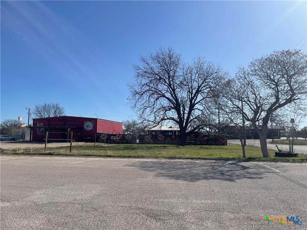 SOLID BUILT 2500 Square Foot steel framed building. FULLY spray foam insulated with skylights and windows allows plenty of daylight during daytime hours. Solar window screens help keep out the heat. 18–20-foot ceiling with three large 14-foot-tall roll-up doors. two on the front and one on the rear of the building, allowing for a full breeze. The water and sewer line have both been updated when the new bathroom was installed. An additional sewer drain line is in place for an additional restroom or kitchen space. The electrical has been updated to 200 Amp service. Two 50-amp RV plugs have been installed on the front of the building along with other weatherproof GFI outlets. The office space is cooled with a window unit and heated with a portable oil heater. The office has a view of the open bay and a convenient pass-through ability. The building was originally heated with a natural gas heater hanging from the ceiling. However, this was disconnected and electric and propane portable heaters. are used. A swamp cooler and fans are used to cool during warmer months. An upgraded exterior security door and emergency exit signs have been installed. Additional storage is available above the office area. Exterior weather GFI outlets have been installed for extension cords or additional lighting. The large grass corner lot provides an opportunity for additional structure and or parking lot. A heritage pecan tree provides shade and is ideal for hanging party lights above picnic tables. This location provides great exposure to Hwy 281 traffic to any type of business. Over the years, this wonderful building has been home to a radiator shop, garden center, antique store, and auto body fabrication.
